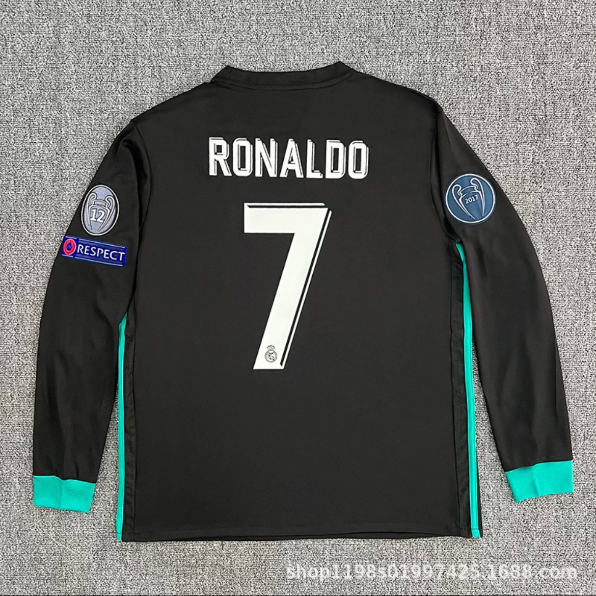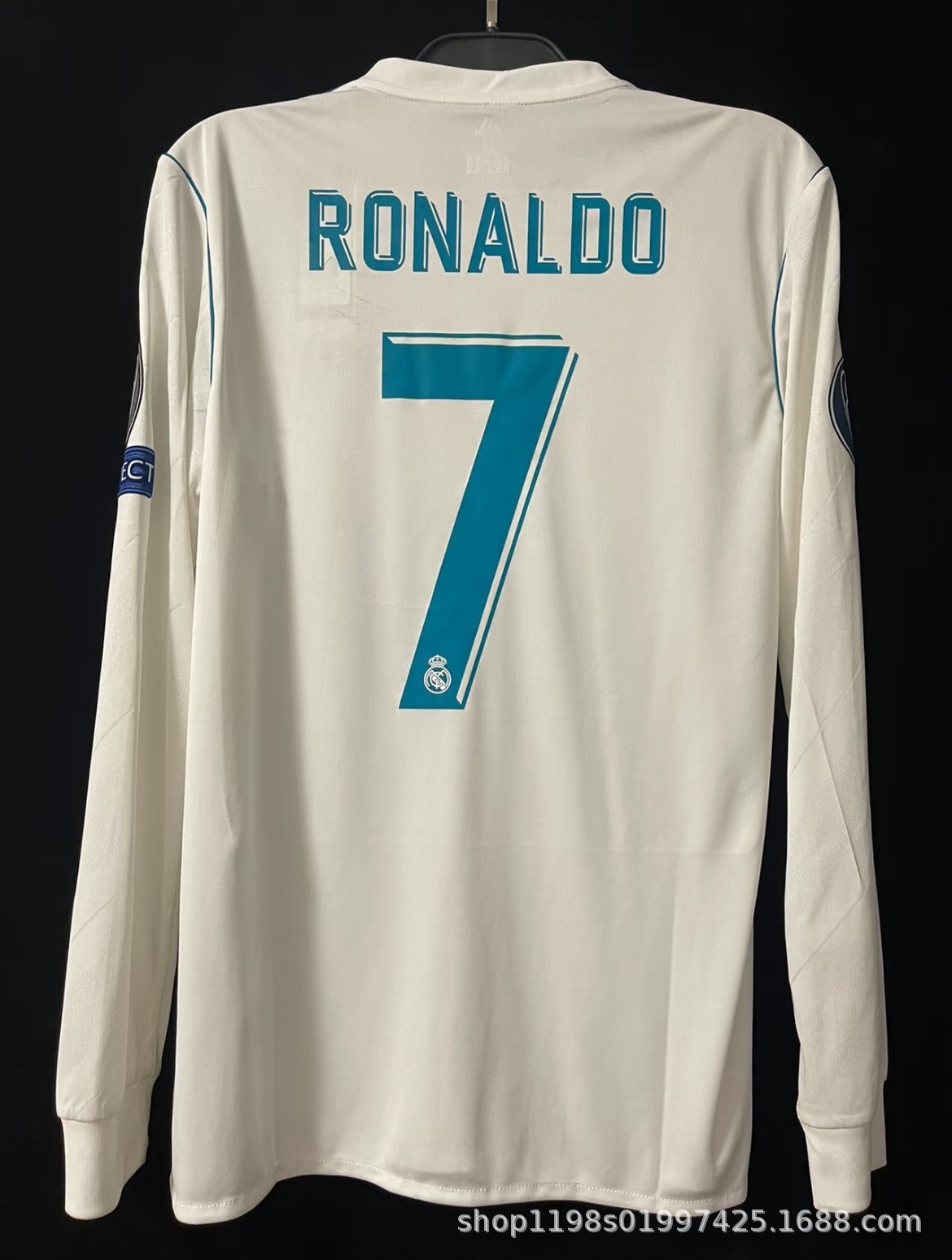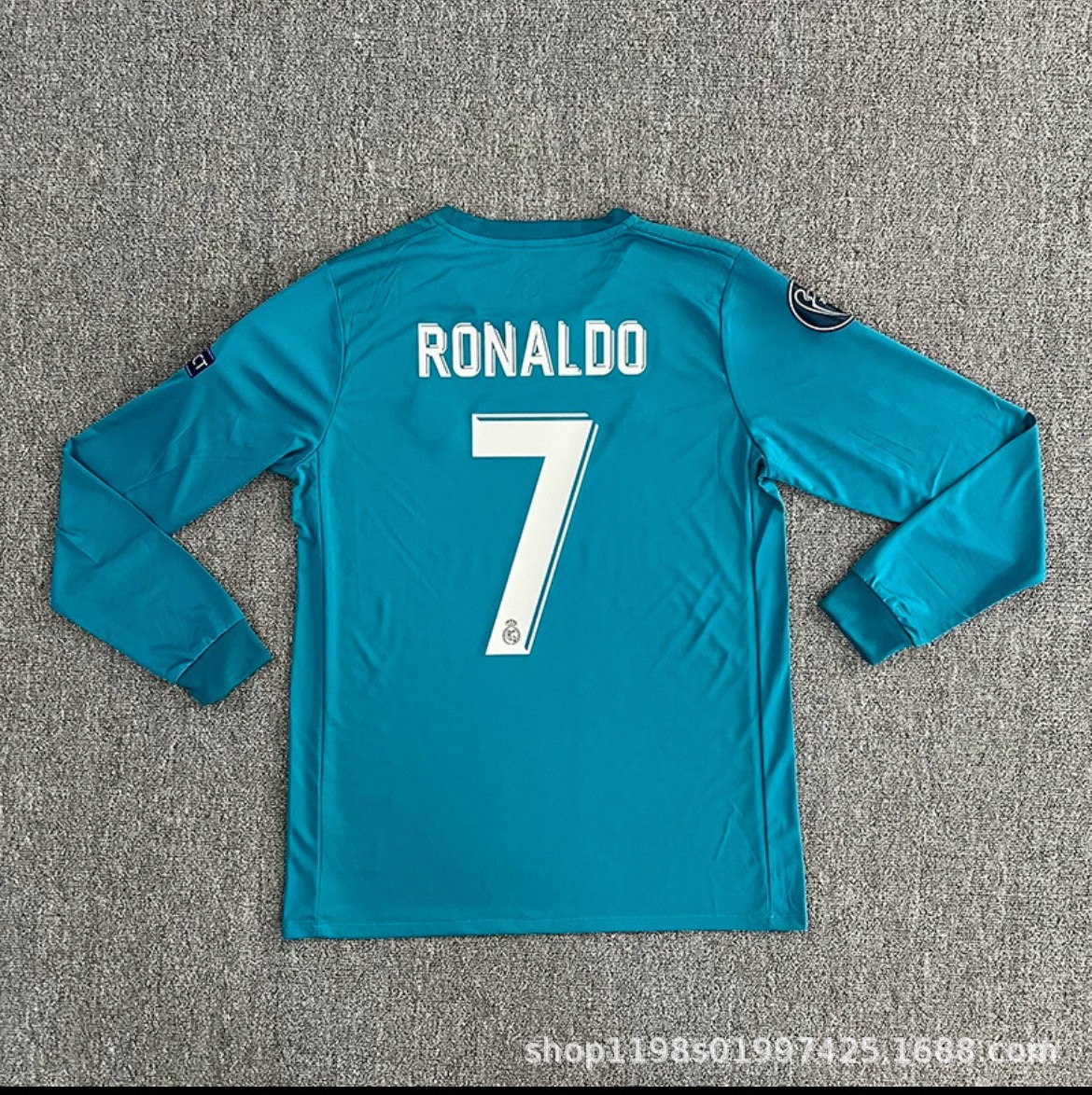 Футбольная форма Реал Мадрид 1718 в стиле ретро, с длинным рукавом, с номерами Роналду №7, Бекхэма и Каки, красная, для трансграничной торговли.
