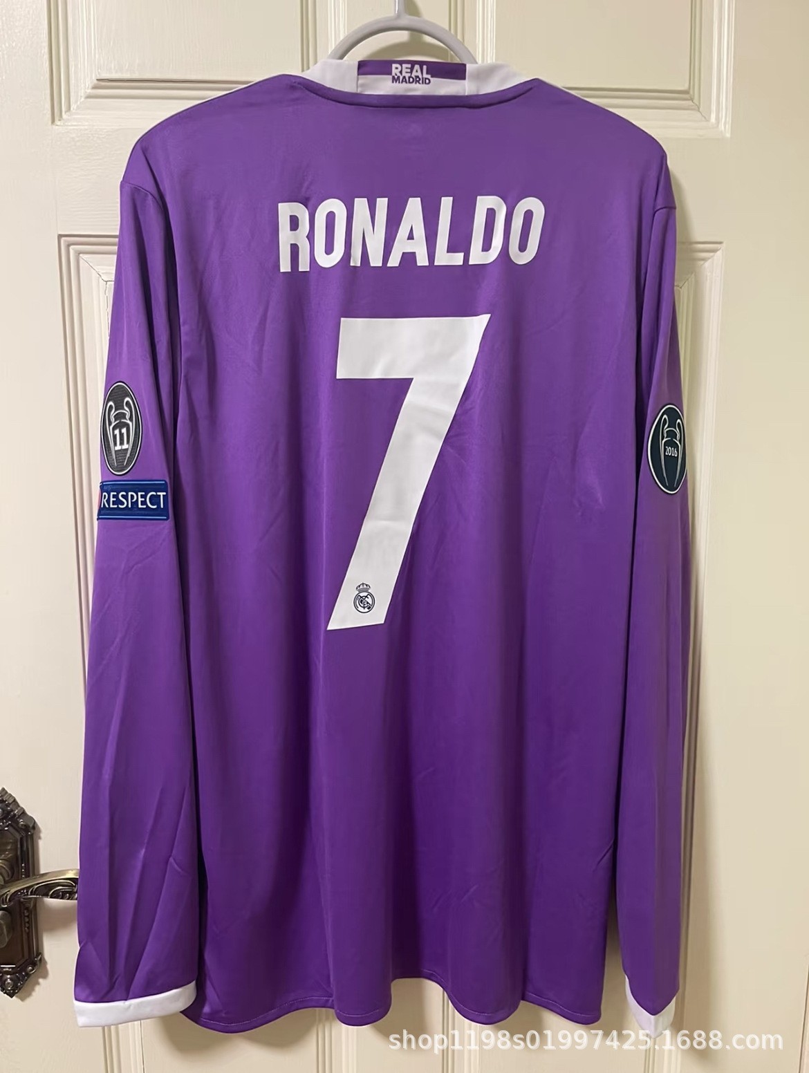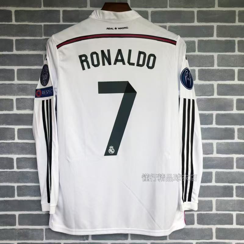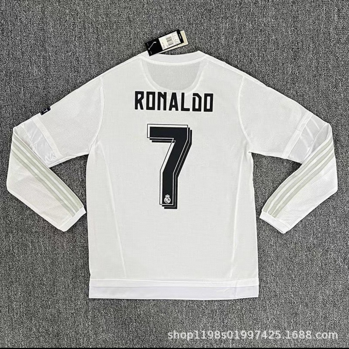 Футбольная форма Реал Мадрид 1718 в стиле ретро, с длинным рукавом, с номерами Роналду №7, Бекхэма и Каки, красная, для трансграничной торговли.