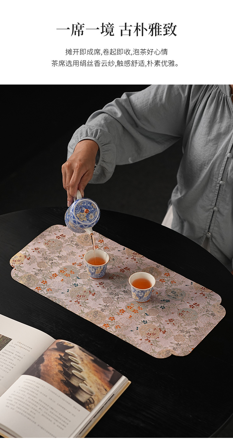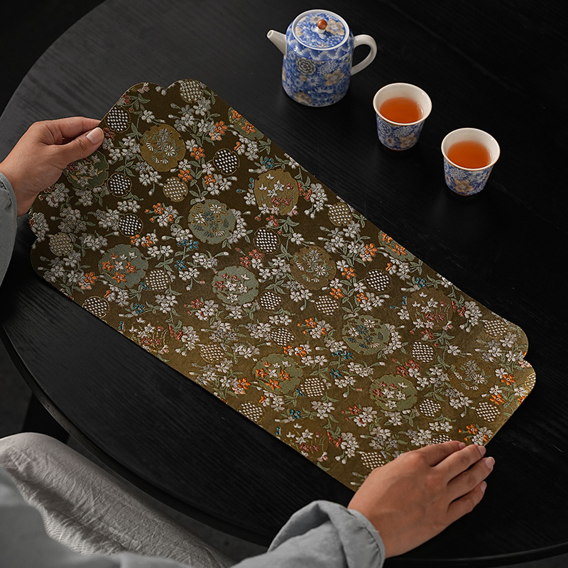 Двухсторонний чайный коврик с вышивкой из парчи дзен сухой коврик водонепроницаемый чайный коврик чайный стол чайный коврик кунг-фу чайный сервиз чайного сервиза