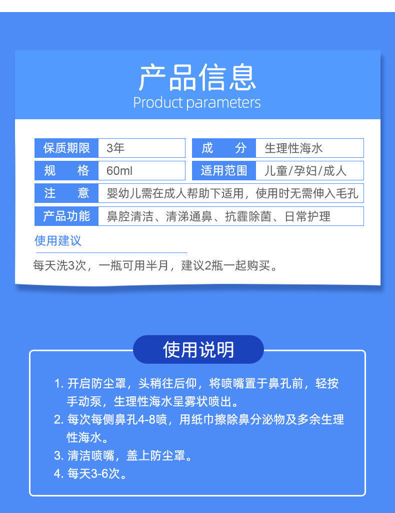 Маленький порошок как назальный опрыскиватель физиологический раствор для детей взрослых морской соли промыватель для носа для детей 40 мл 60 мл