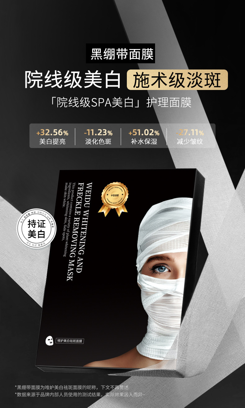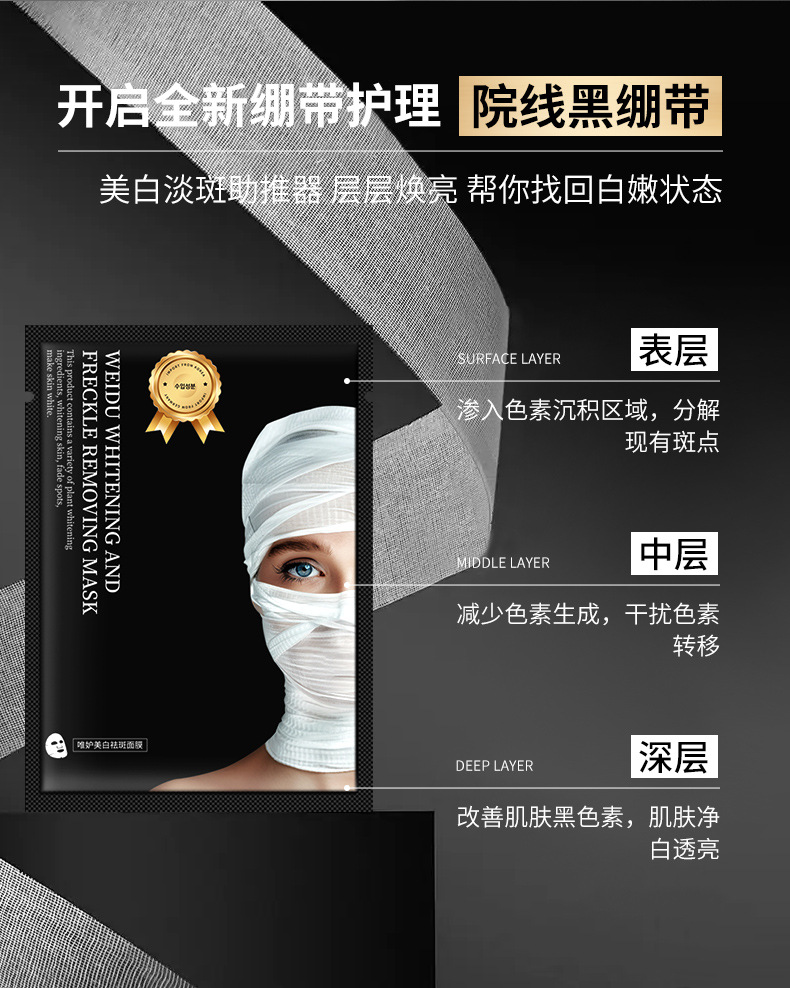 Отбеливающая и противовеснувшая черная повязка-маска/коробка; Отбеливающая и антивеснувная черная повязка-маска/кусок