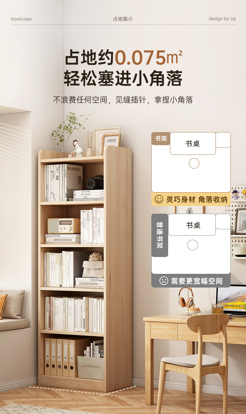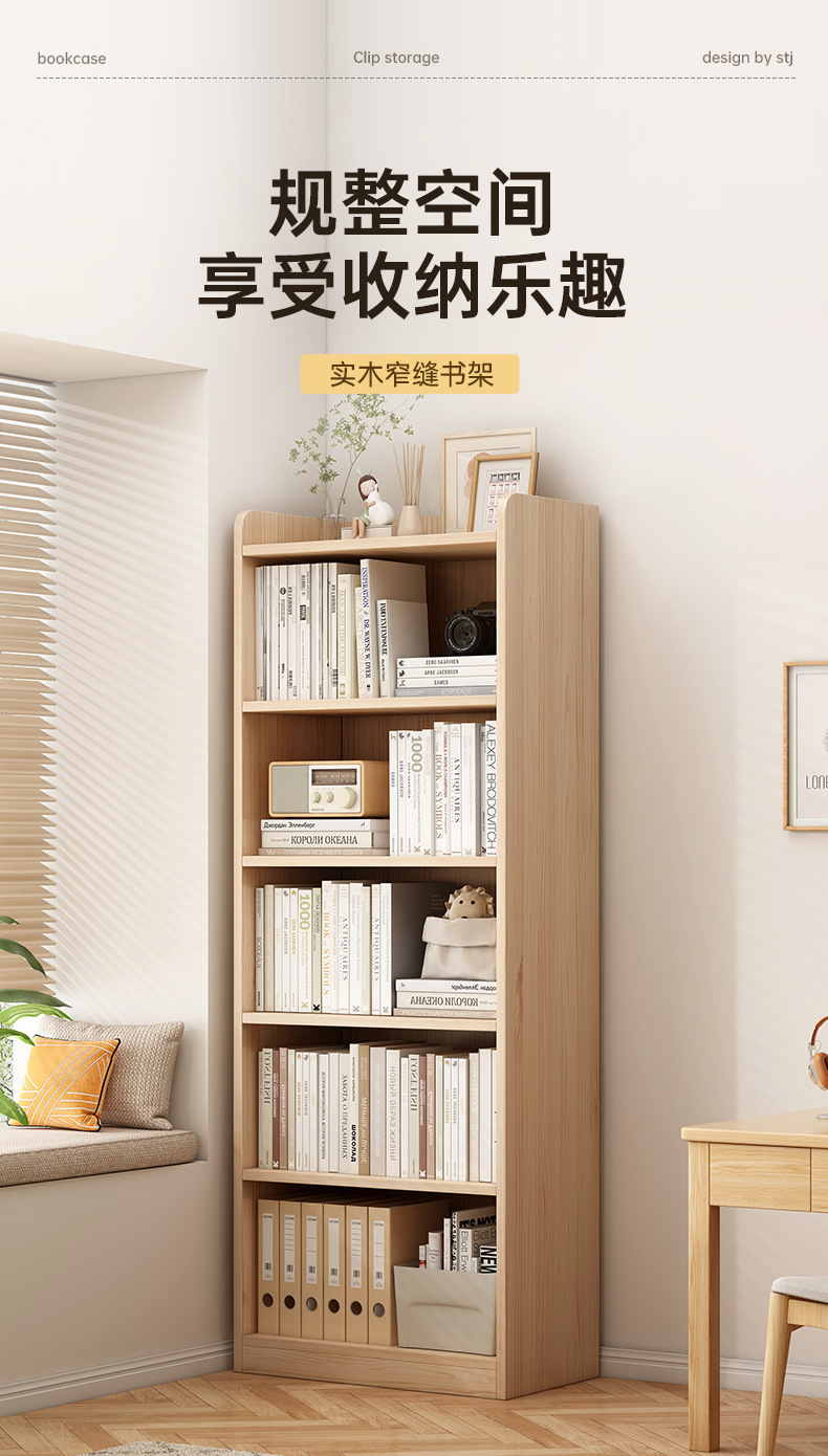 Книжная полка из цельного дерева, напольная стойка для хранения дома, гостиной, стеллаж для хранения, маленький шкаф из сосны, узкий шкаф, детский книжный шкаф