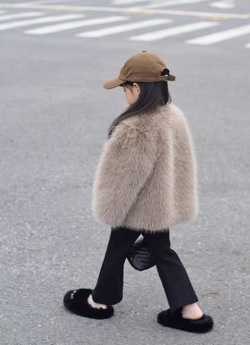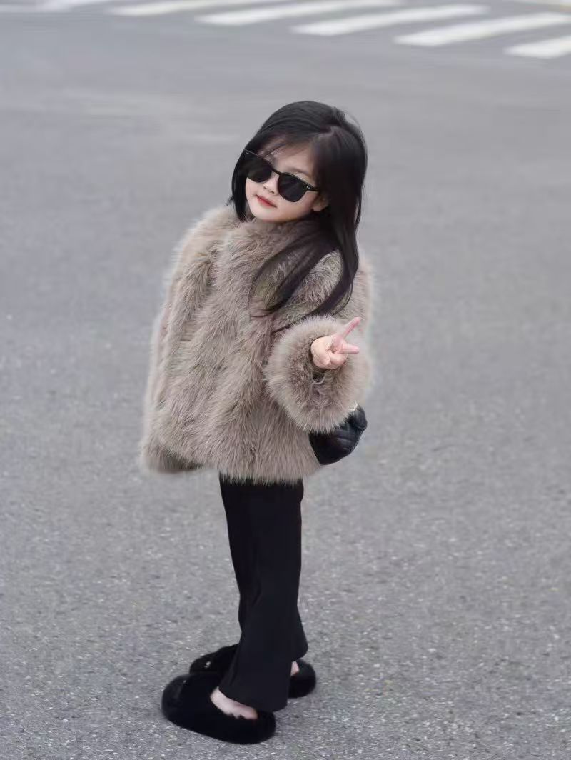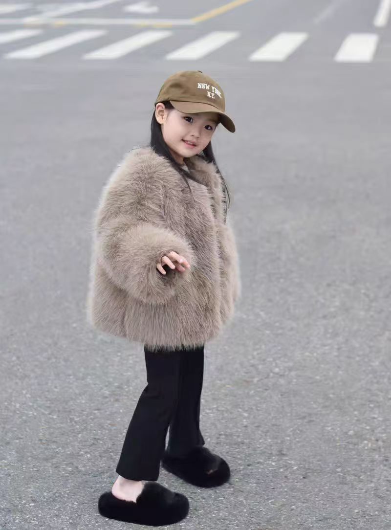 Детская новая верхняя одежда из искусственного меха лисы, осень-зима 2025, корейский стиль, утепленные модные меховые кофты для девочек