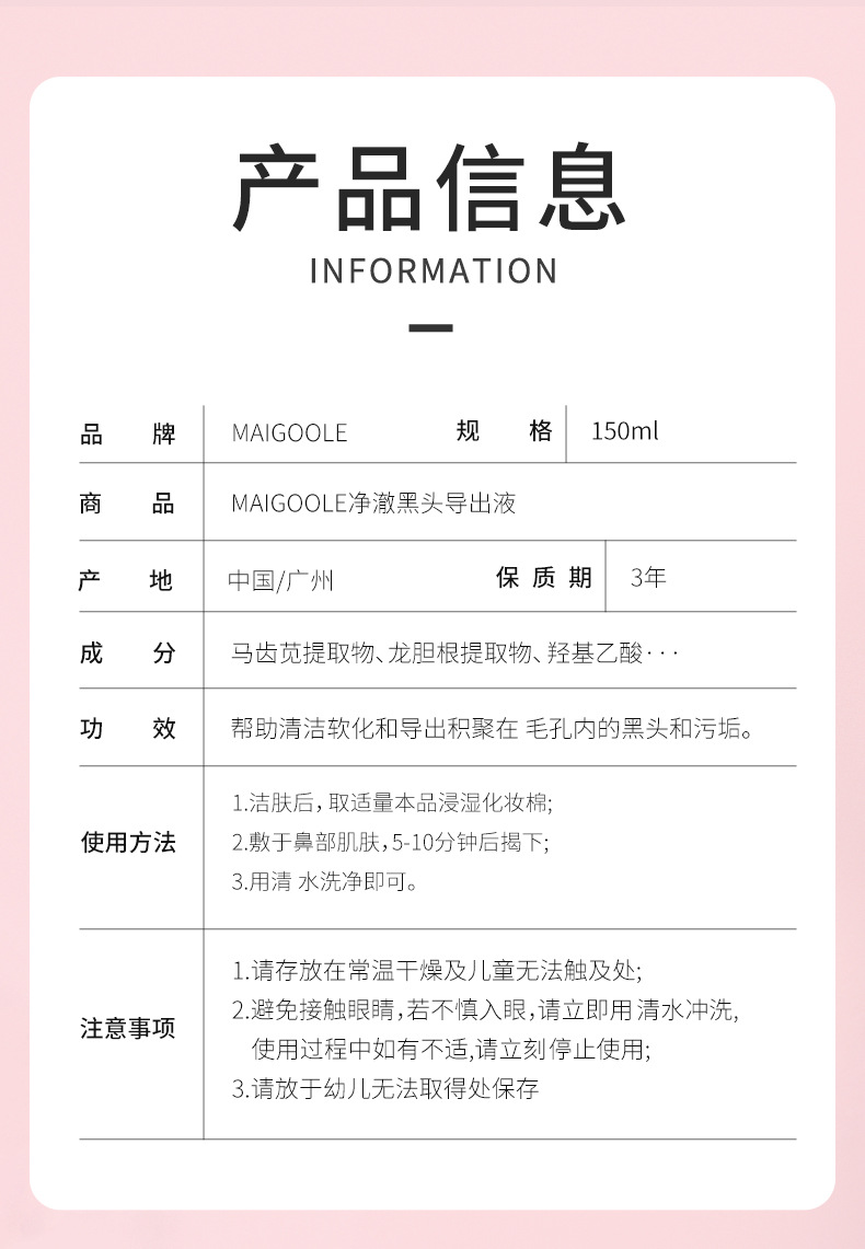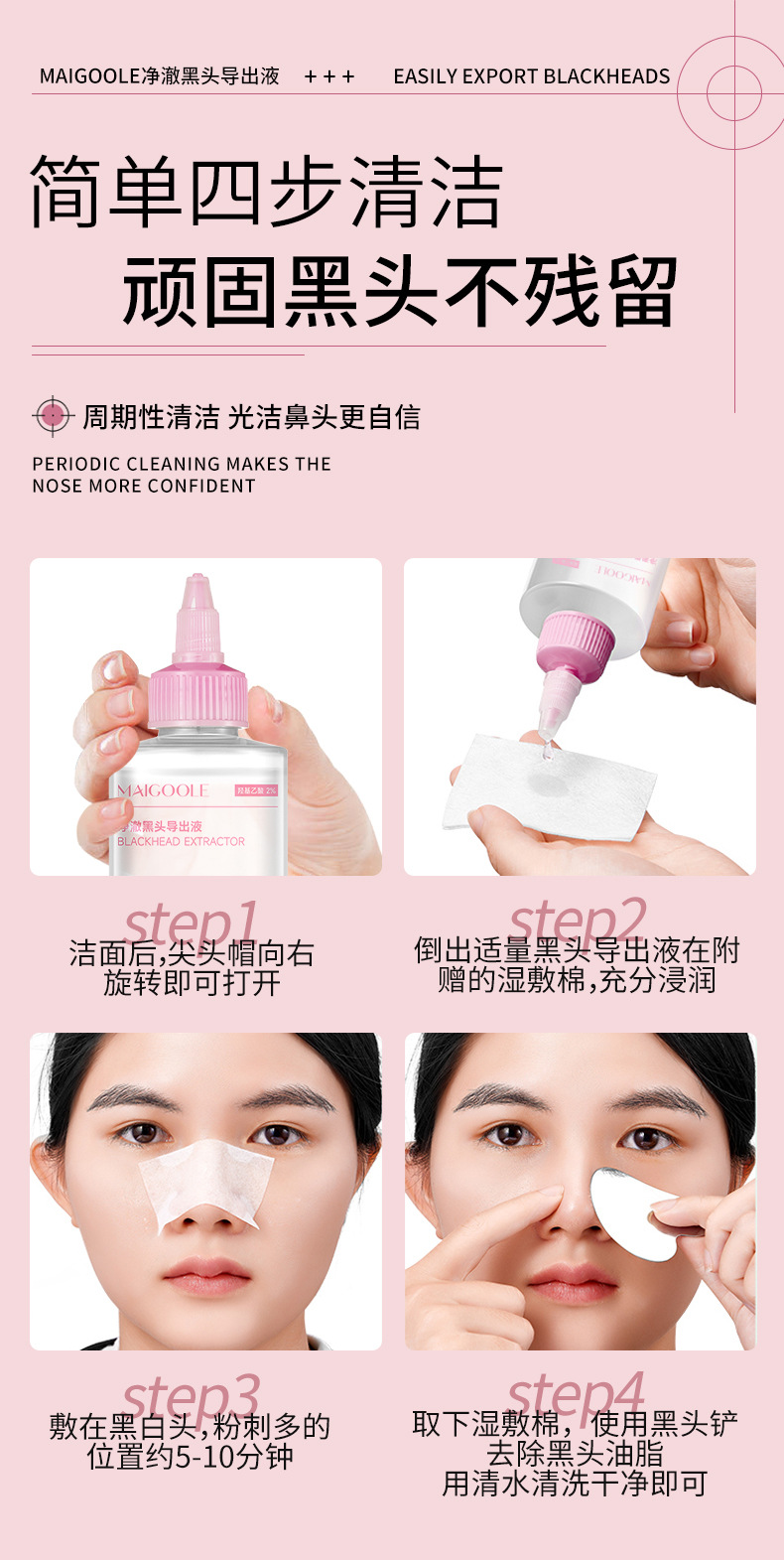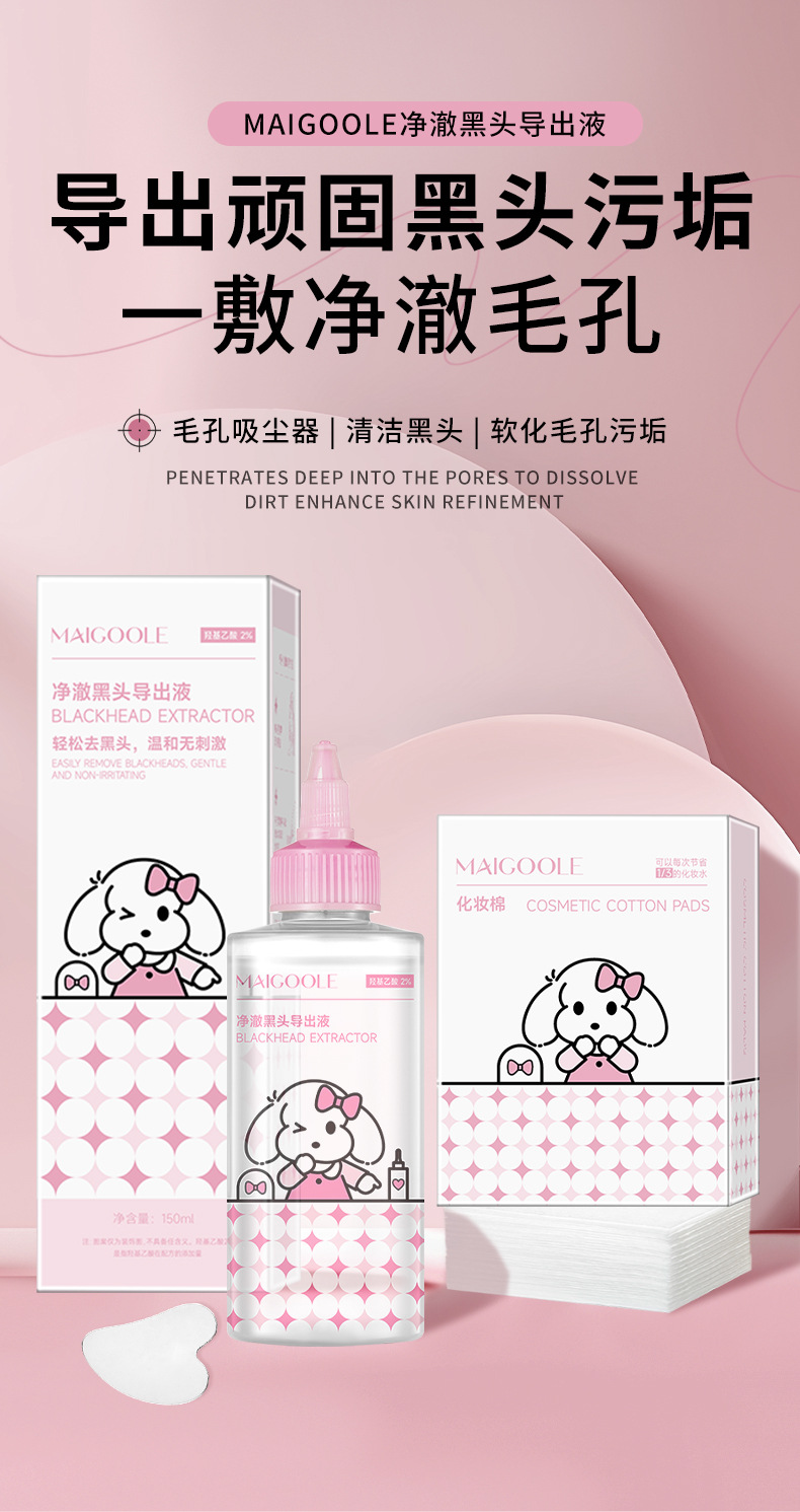 Жидкость для экспорта чистых черных точек Madeline, 150 мл (розовая модель); Косметический хлопок; лопатка от черных точек; Набор из трех предметов для удаления черных точек