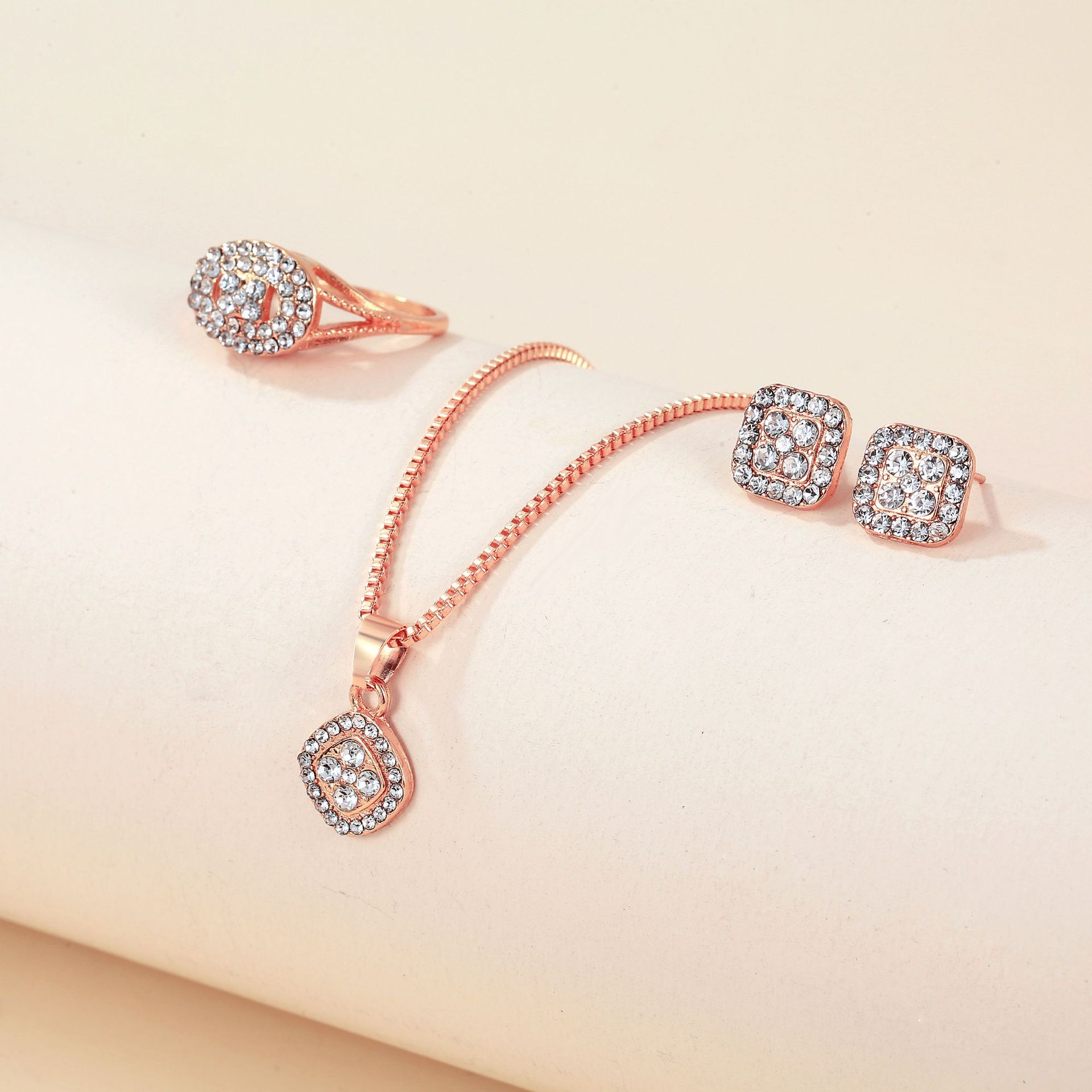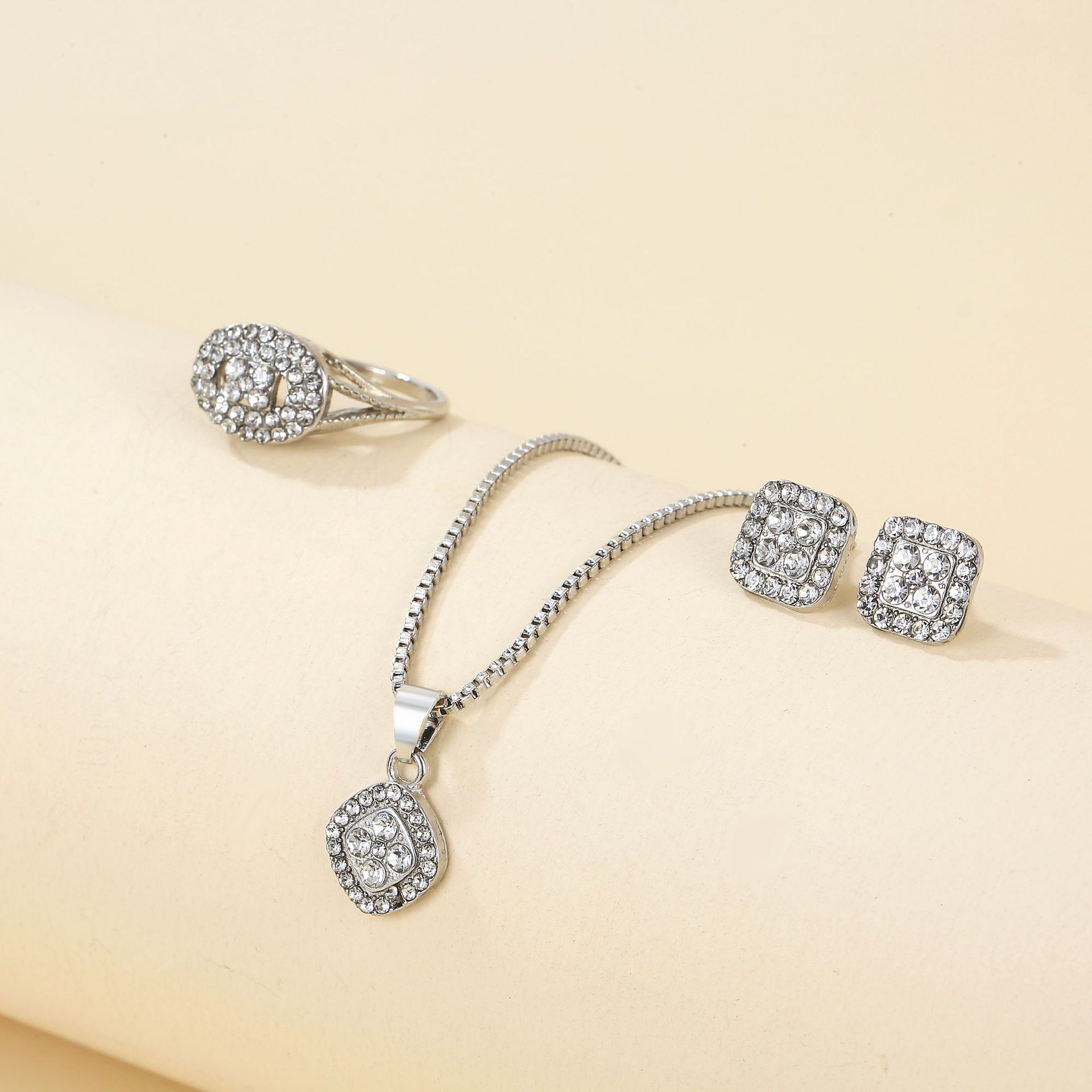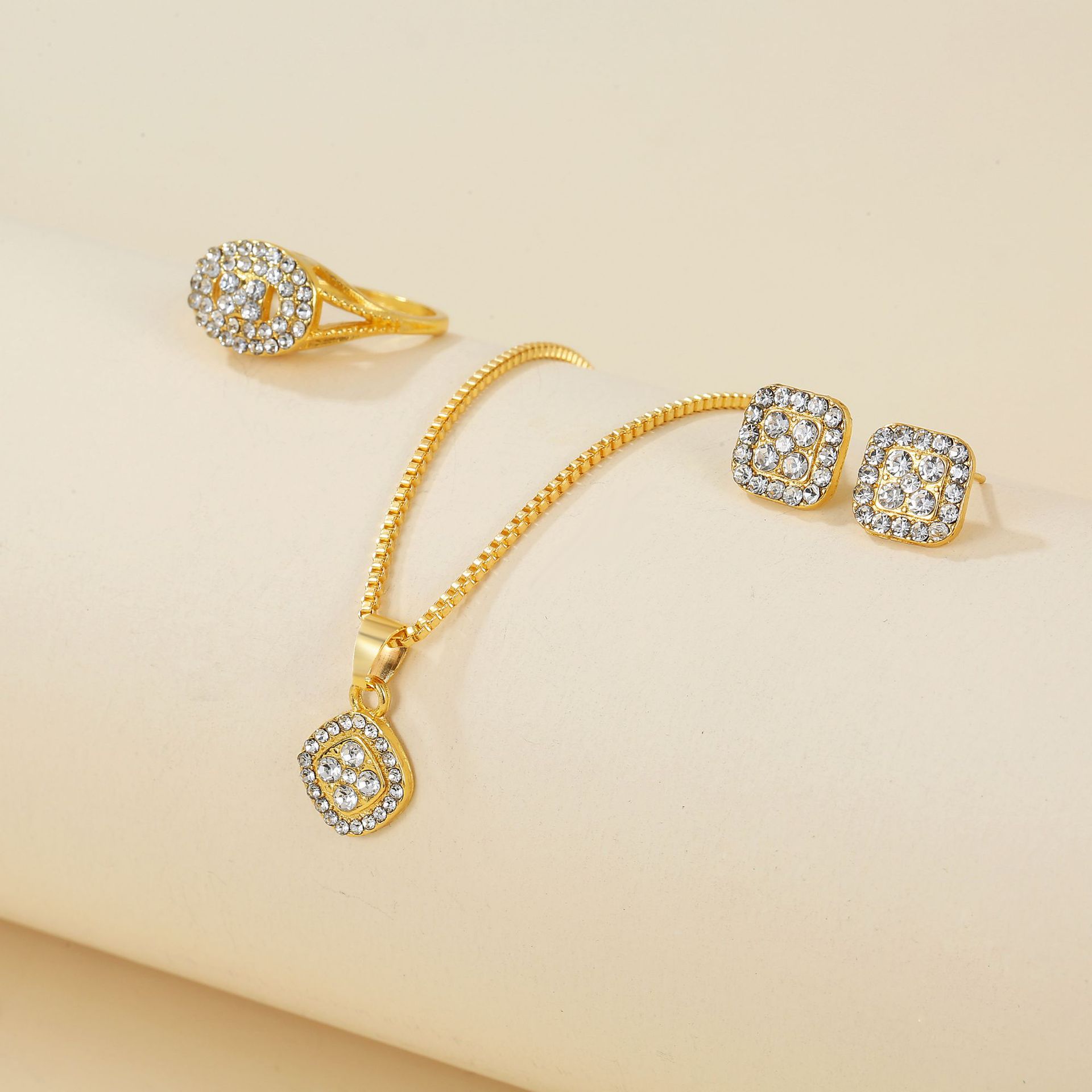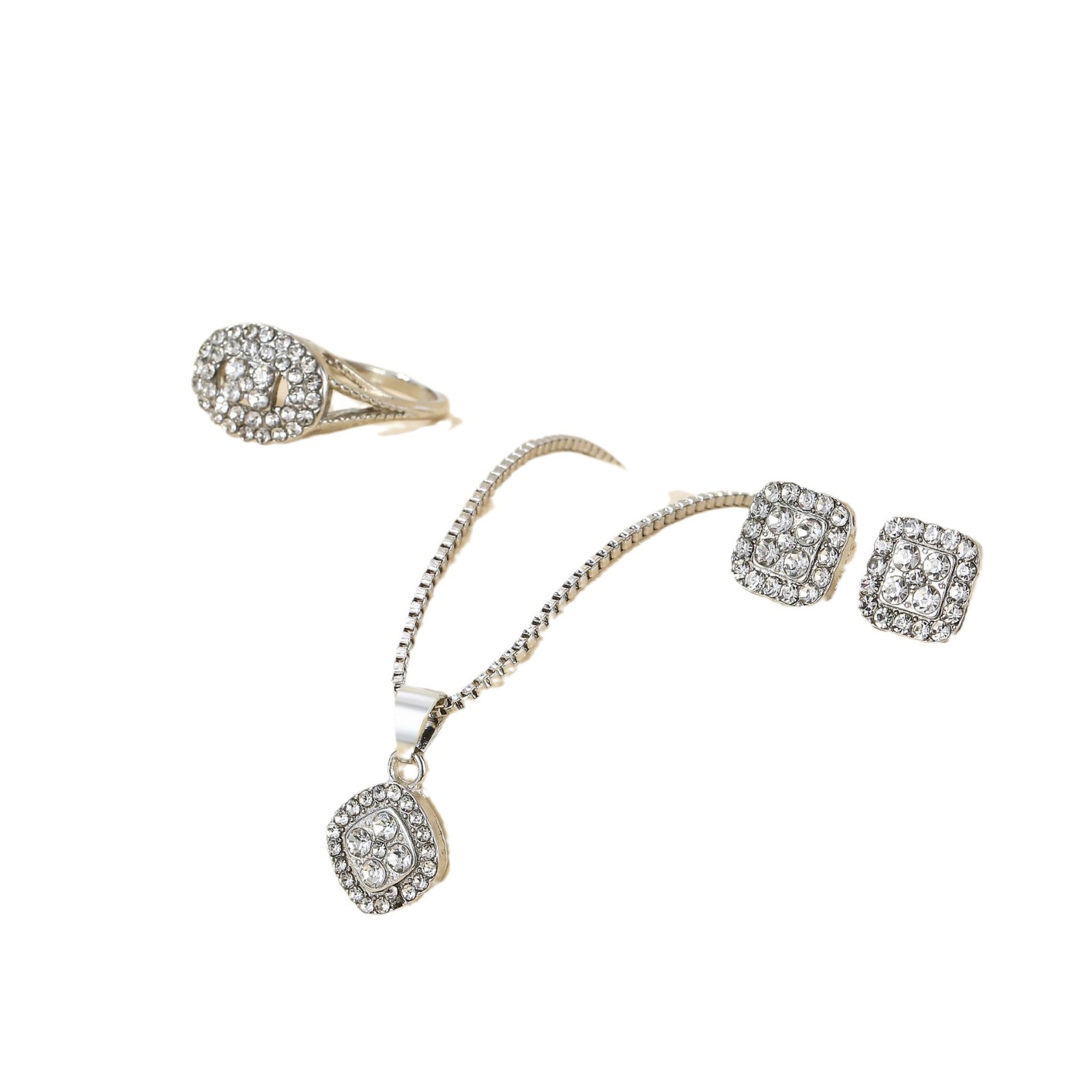 Сплав трансграничный легкий экстравагантный бриллиантовый геометрический ожерелье кольцо серьги 3 комплекта стильный простой дикий набор ювелирных изделий