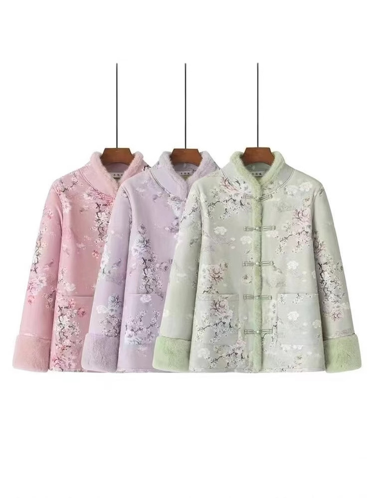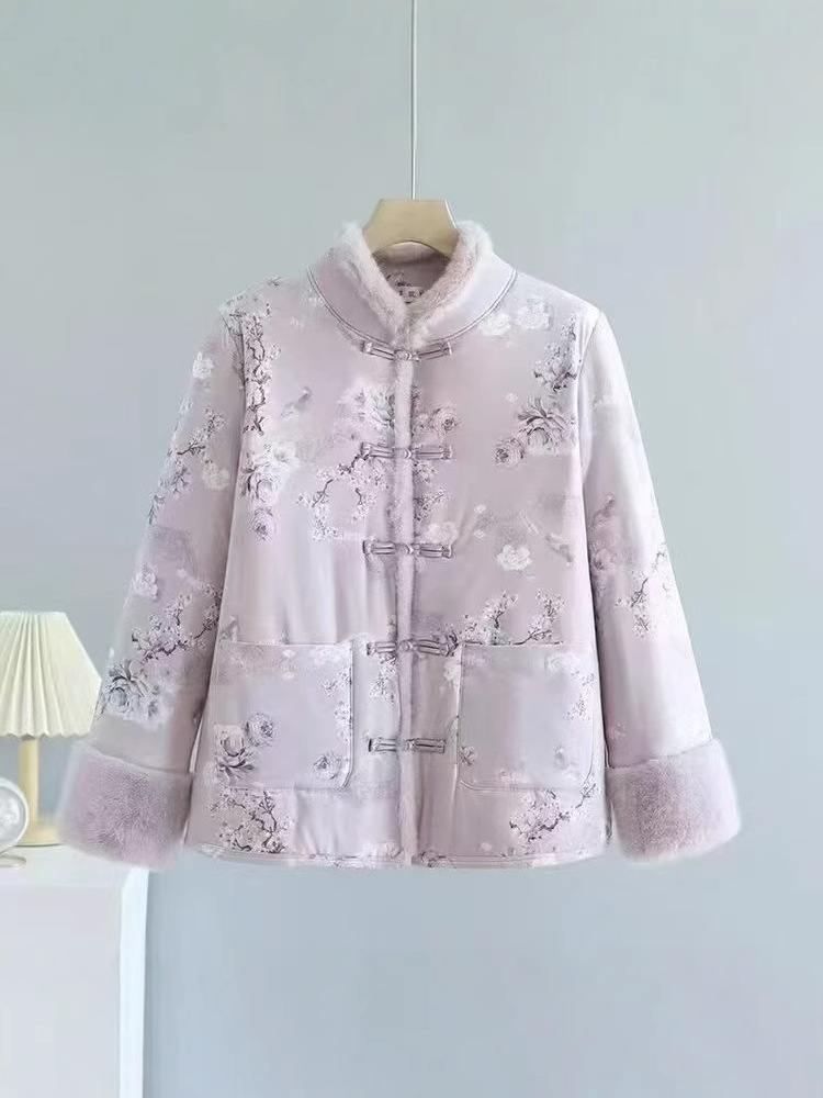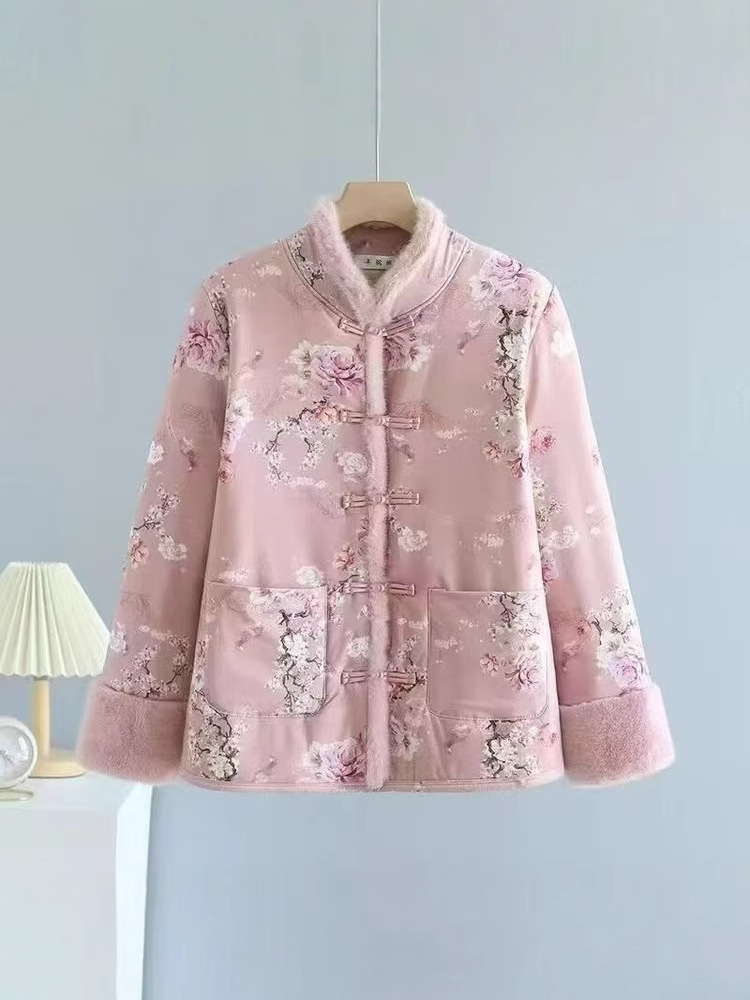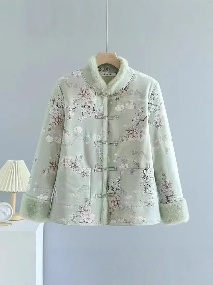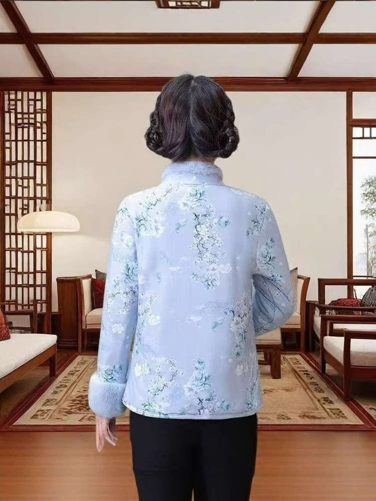 Хлопковое пальто в китайском стиле для женщин среднего и старшего возраста с флисовой подкладкой, традиционное китайское хлопковое пальто, утепленная зимняя хлопковая куртка, ретро-пальто на пуговицах.