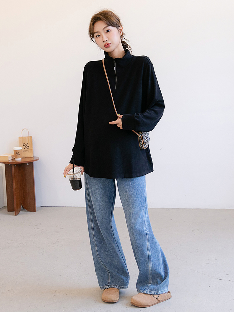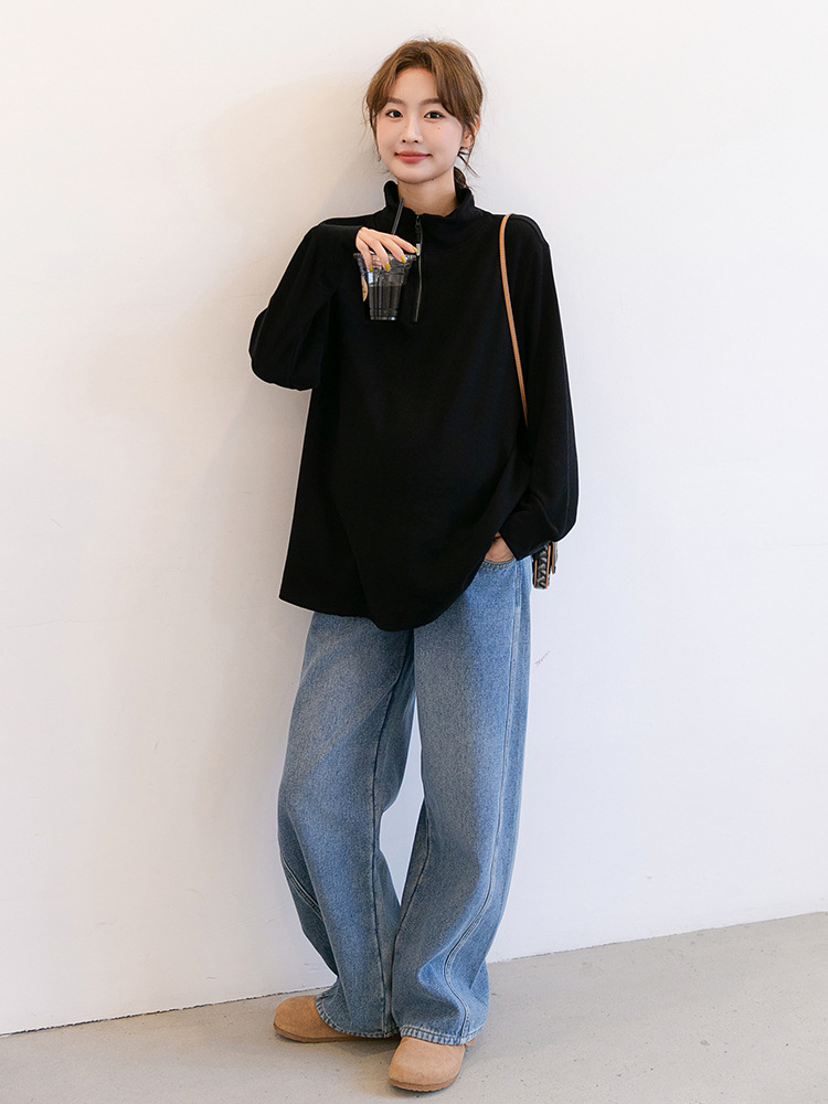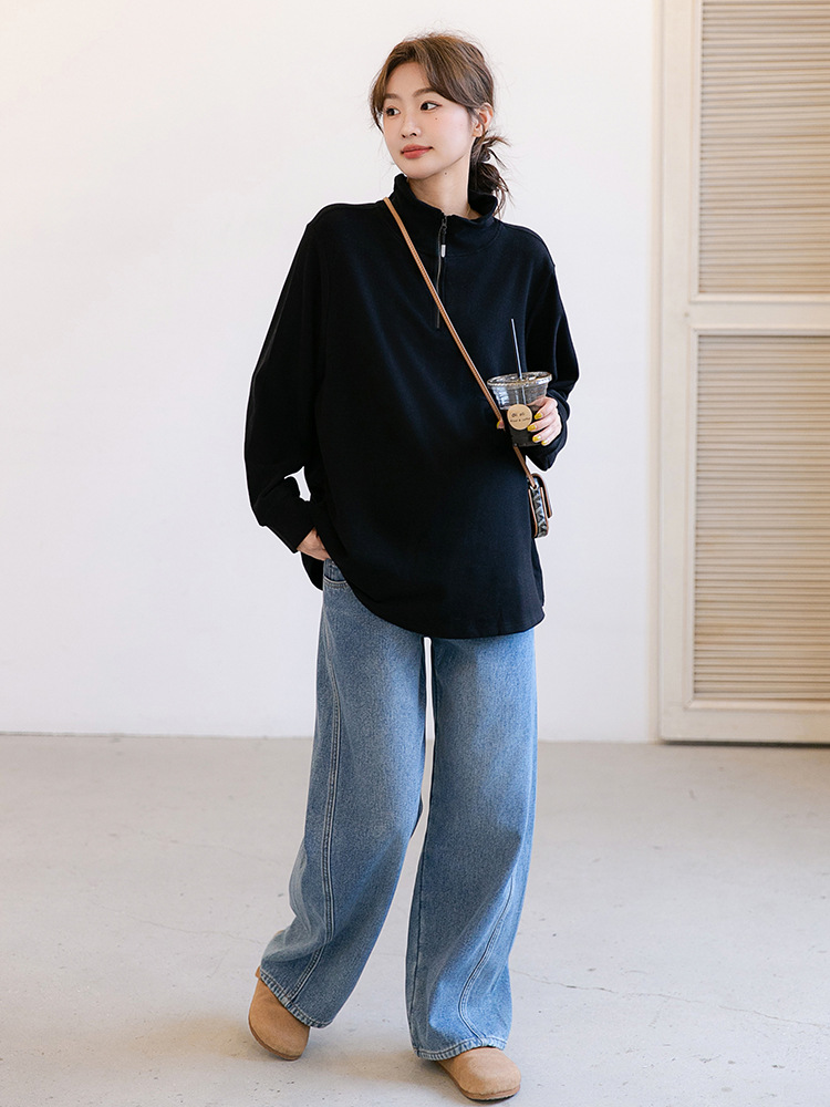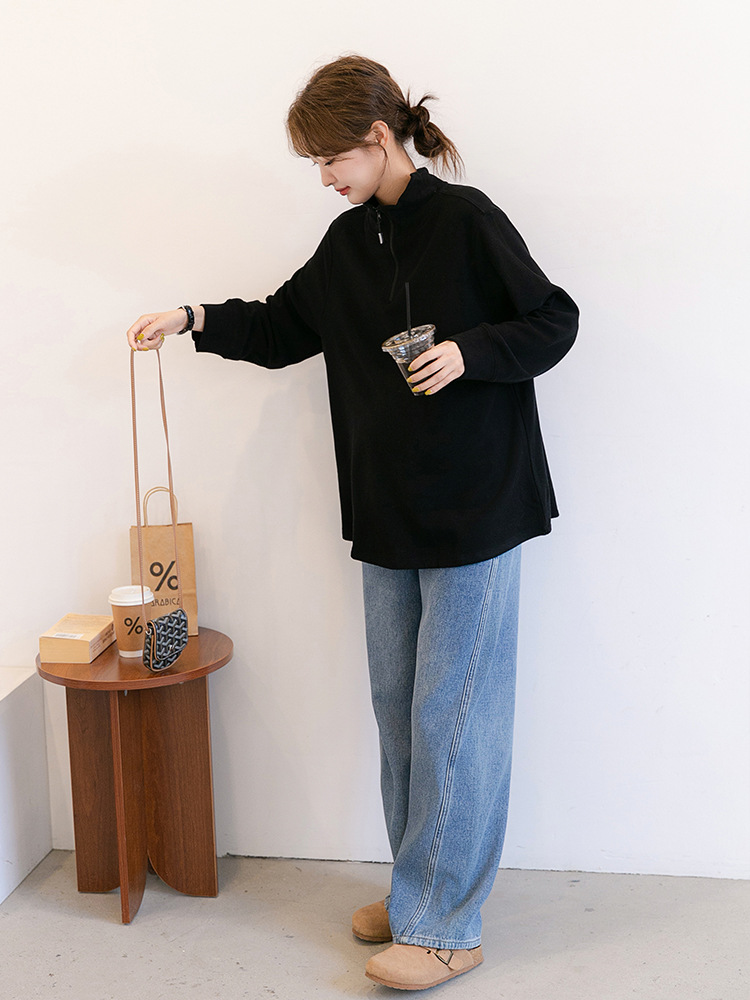 Осенняя и зимняя одежда для беременных плюс толстая шерстевая ткань для беременных с половинным воротником