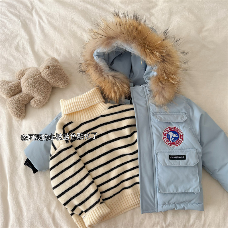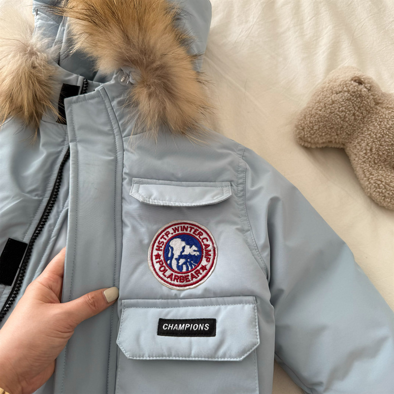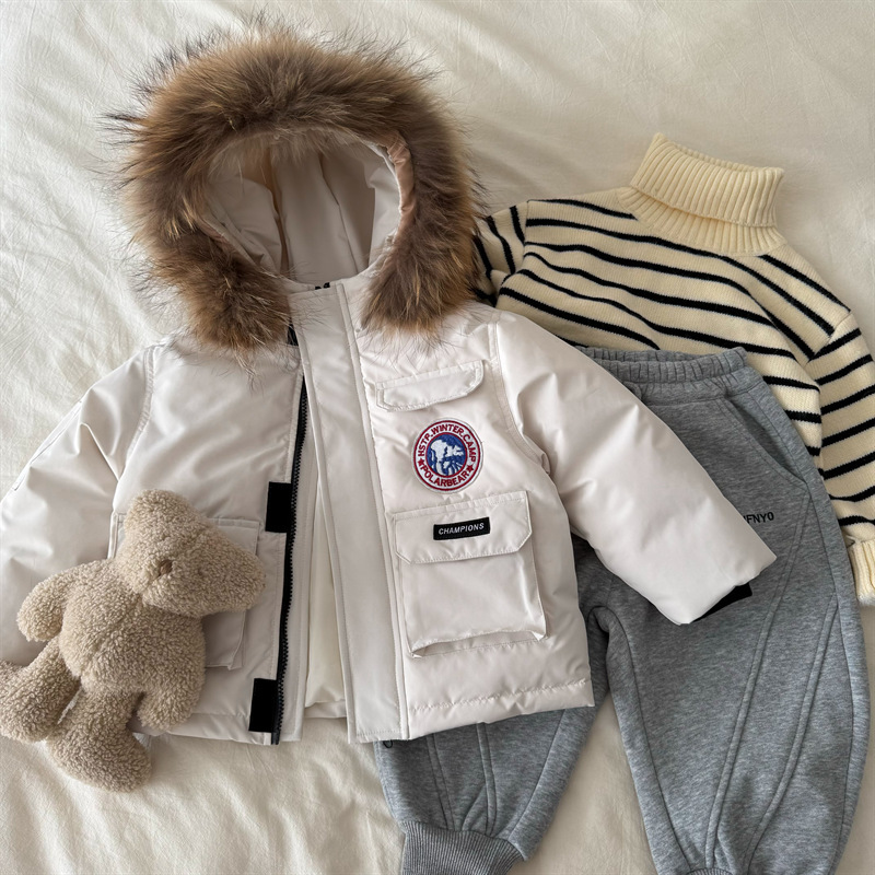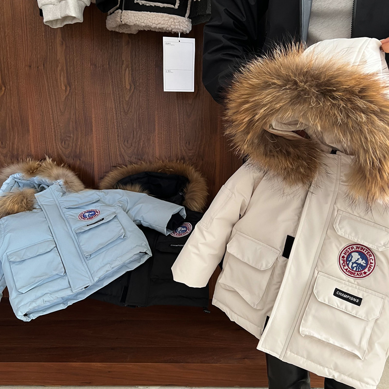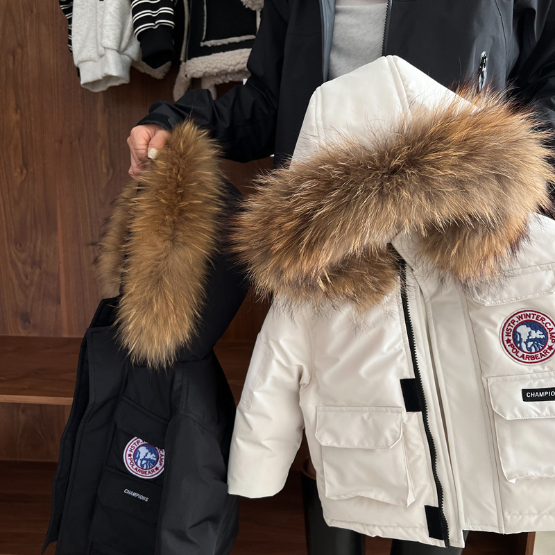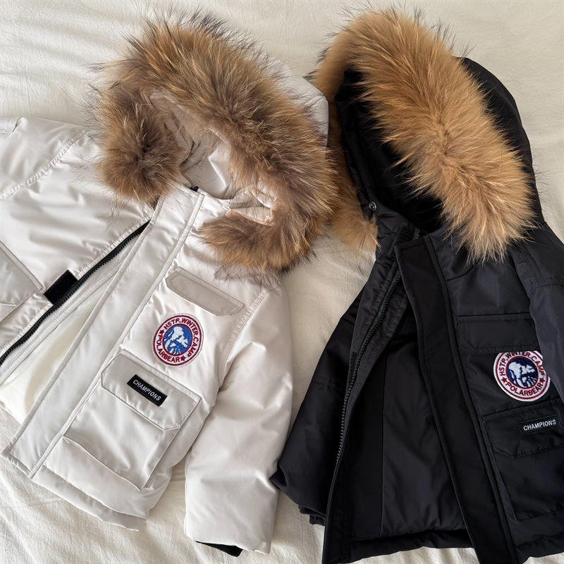 Спотовые детские пуховики 2024 зимние новые мужские и женские детские платья пуховики с меховым воротником детские куртки с капюшоном