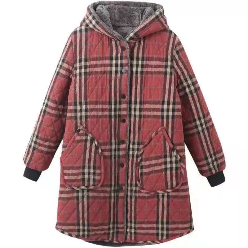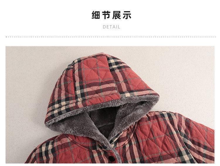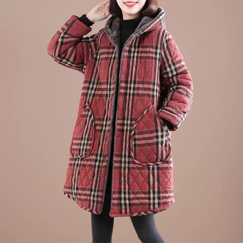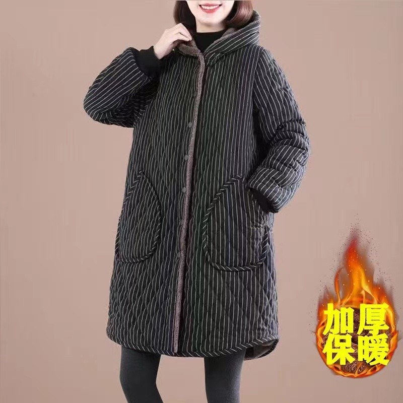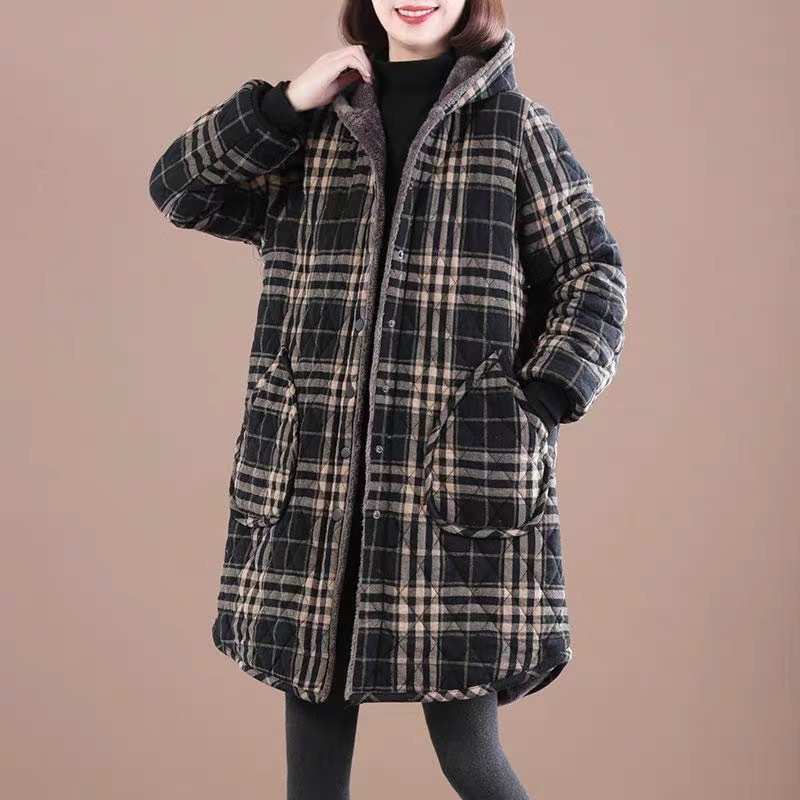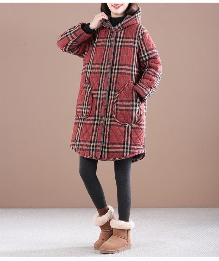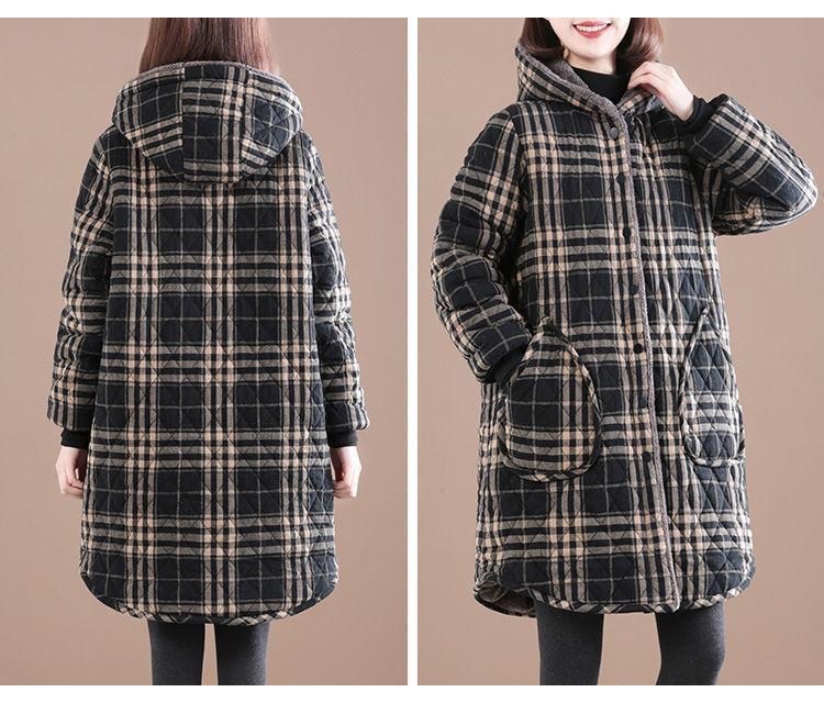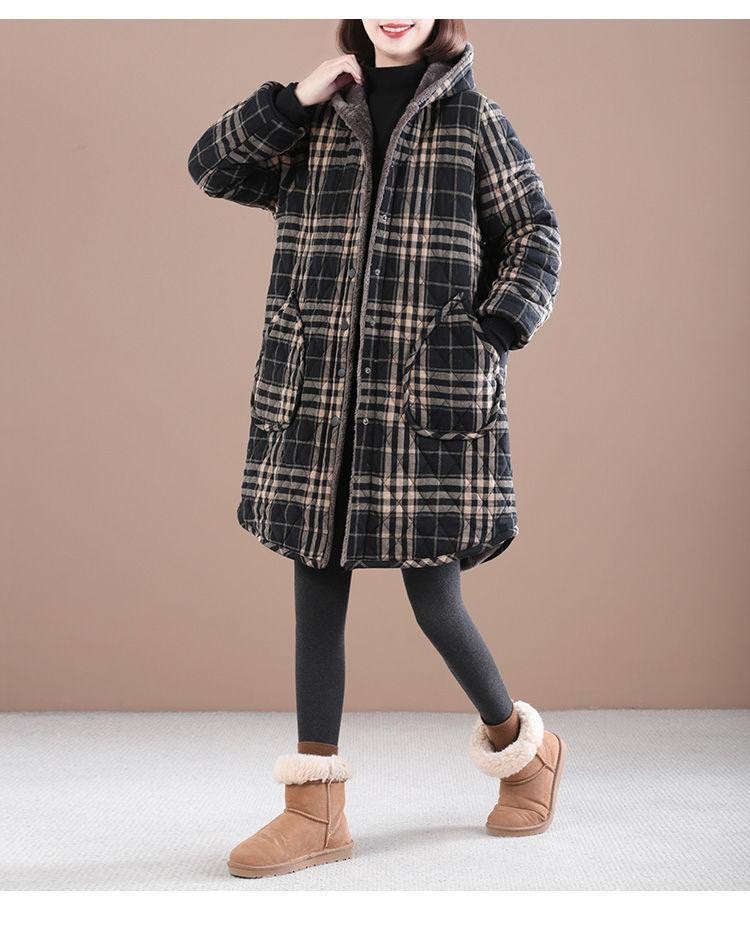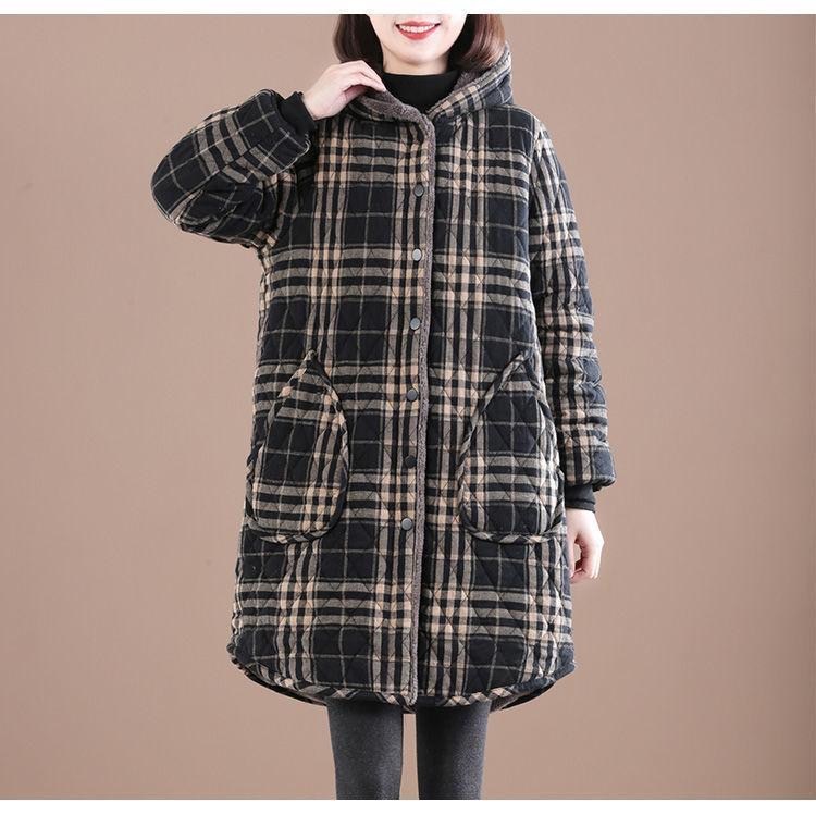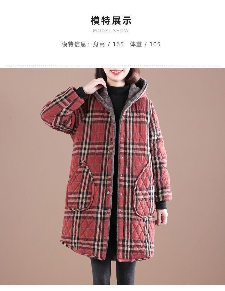 Осенняя и зимняя новая ретро хлопчатобумажная и льняная сетка средней и длинной с капюшоном хлопчатобумажная женская бархатная толстая теплая куртка большого размера