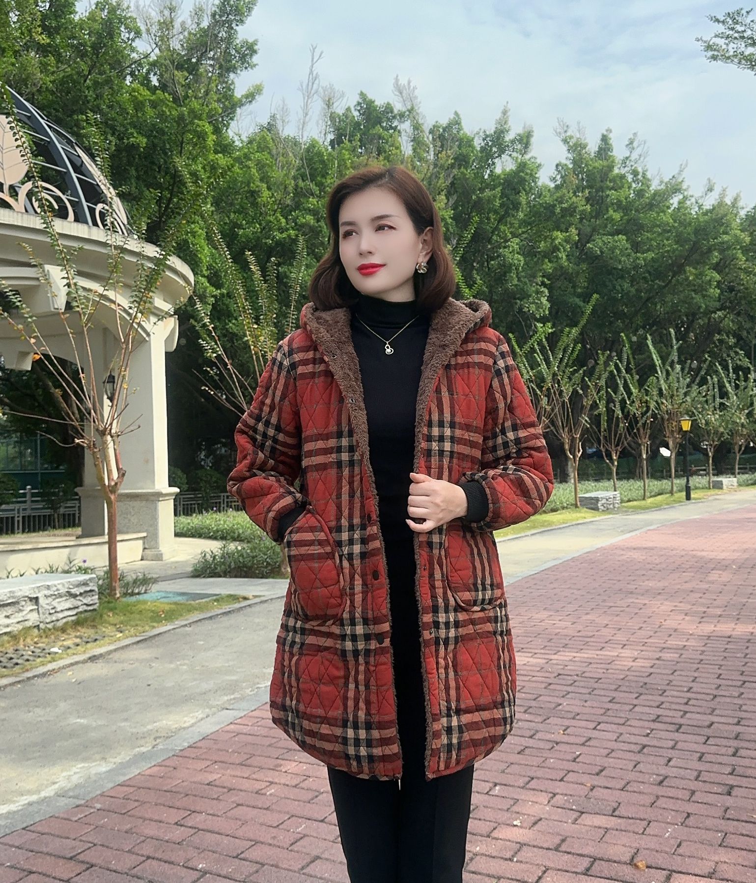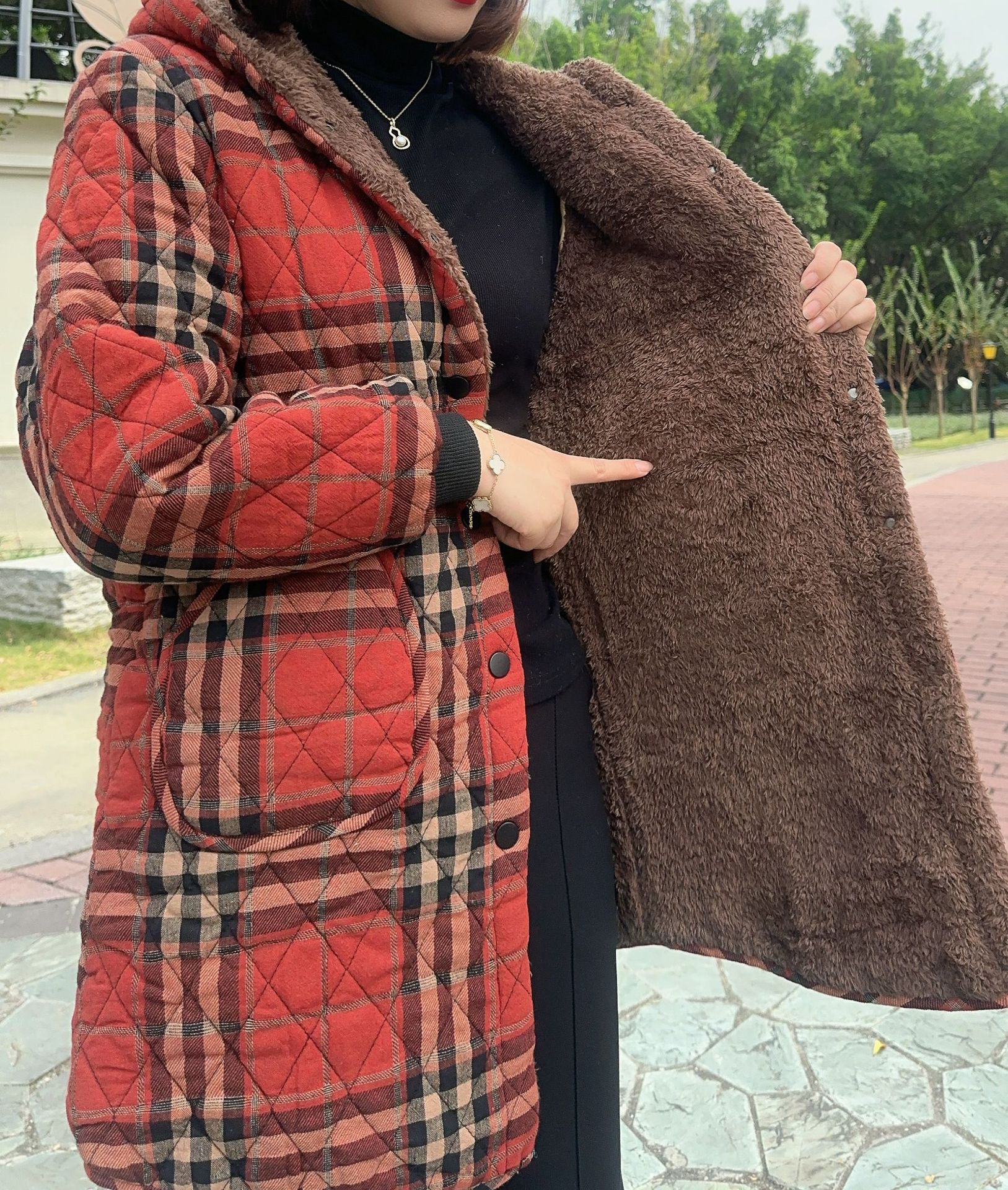 Одежда из хлопка в красную клетку [бархатная и утолщенная]; Коричневая клетчатая хлопковая одежда [бархатная и утолщенная]; Темно-синяя полосатая хлопковая куртка [бархатная и утолщенная]; Хлопковая куртка в черную полоску [бархатная и утолщенная]