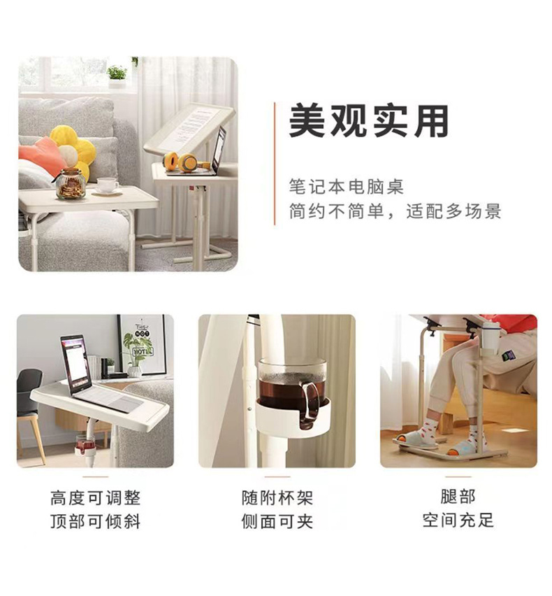 Современный минималистичный прикроватный столик для дома, регулируемый по высоте, с подставкой для планшета и подстаканником.