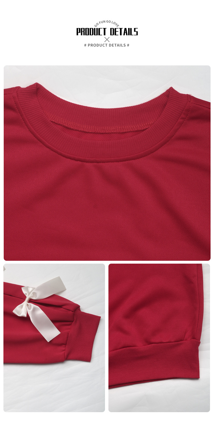 Популярные осенние и зимние популярные топы Amazon в европейском и американском милом стиле, красные рождественские толстовки с круглым вырезом и бантом для женщин