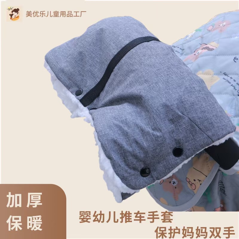 现货婴儿推车保暖手套冬季防风加厚加绒扶把摇粒绒手套罩童车配件