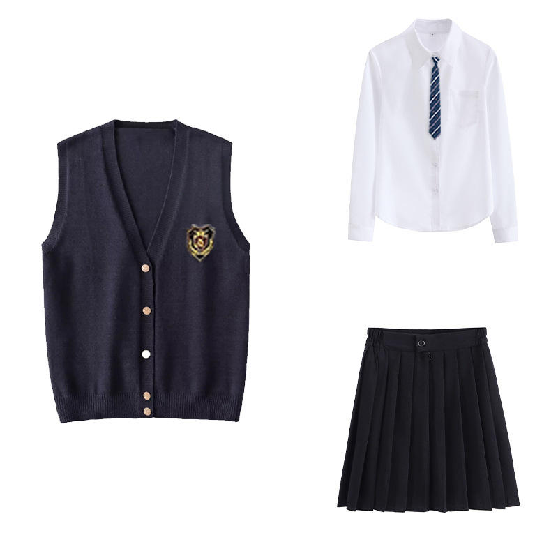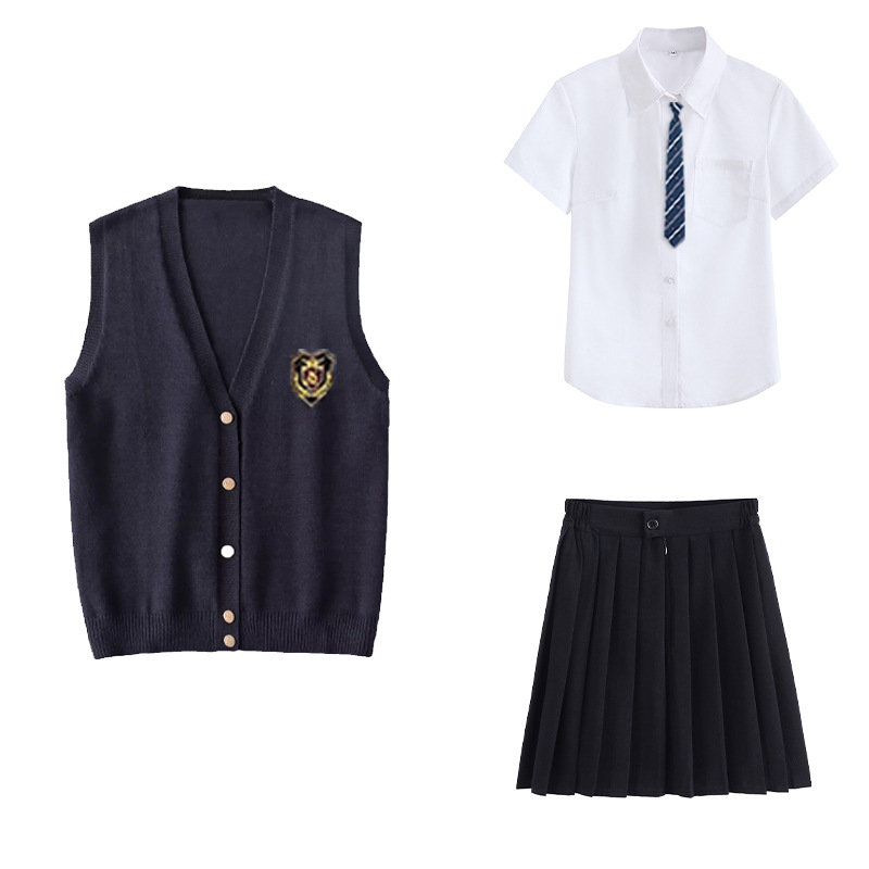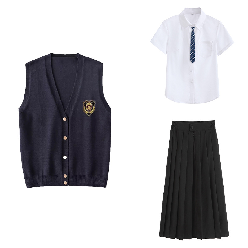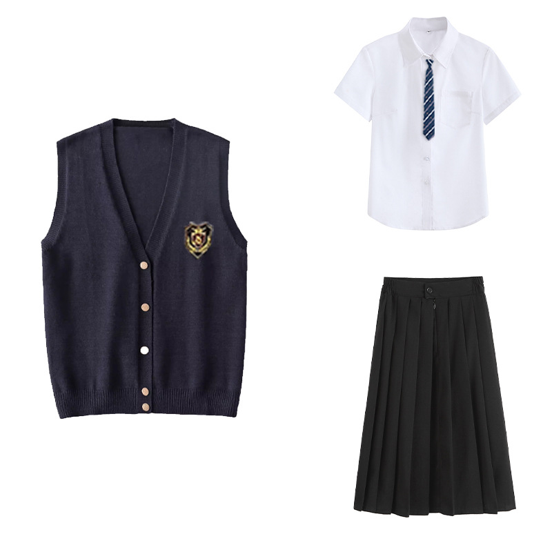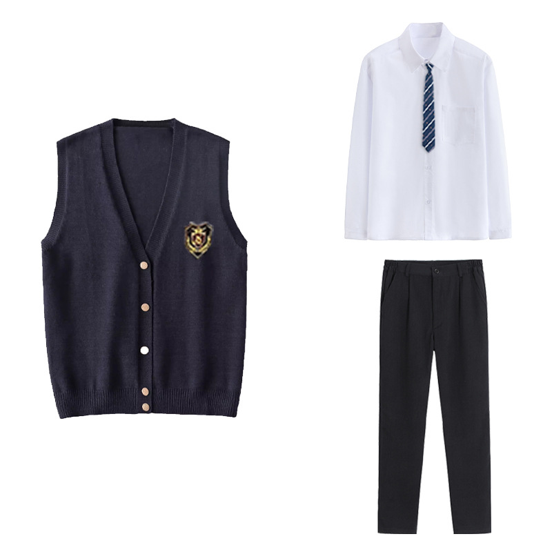 Жилет для девочки + значок; Жилет для девочки + рубашка с короткими рукавами + черная юбка + галстук + значок; Жилет для девочки + рубашка с короткими рукавами + черная юбка средней длины + галстук + значок; Жилет для девочки + рубашка с короткими рукавами + черная длинная юбка + галстук + значок; Жилет для девочки + рубашка с длинными рукавами + черная юбка + галстук + значок; Жилет для девочки + рубашка с длинными рукавами + черная юбка средней длины + галстук + значок; Жилет для девочки + рубашка с длинными рукавами + черная длинная юбка + галстук + значок; Жилет для мальчика + значок; Жилет для мальчика + рубашка с короткими рукавами + черные брюки + галстук + значок; Жилет для мальчика + рубашка с длинными рукавами + черные брюки + галстук + значок; Рубашка с короткими рукавами + черная юбка + галстук + значок; Рубашка с короткими рукавами + черная юбка средней длины + галстук + значок; Рубашка с короткими рукавами + черная длинная юбка + галстук + значок; Рубашка с длинными рукавами + черная юбка + галстук + значок; Рубашка с длинными рукавами + черная юбка миди + галстук + значок; Рубашка с длинными рукавами + черная длинная юбка + галстук + значок; Рубашка с короткими рукавами + черные брюки + галстук + значок; Рубашка с длинными рукавами + черные брюки + галстук + значок