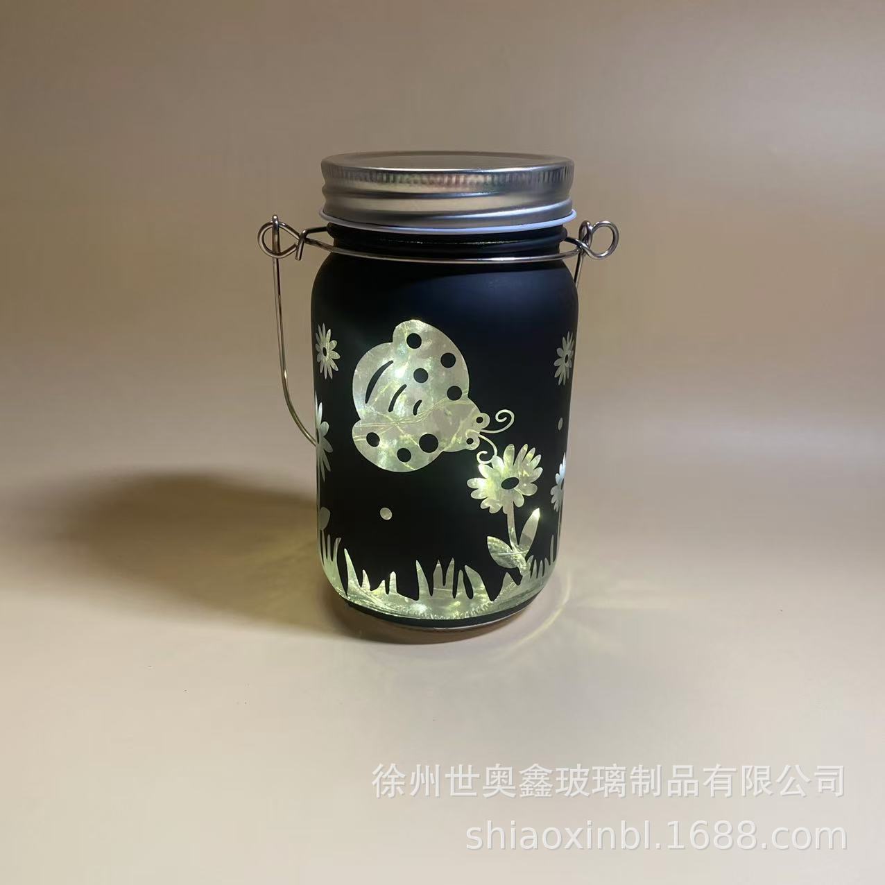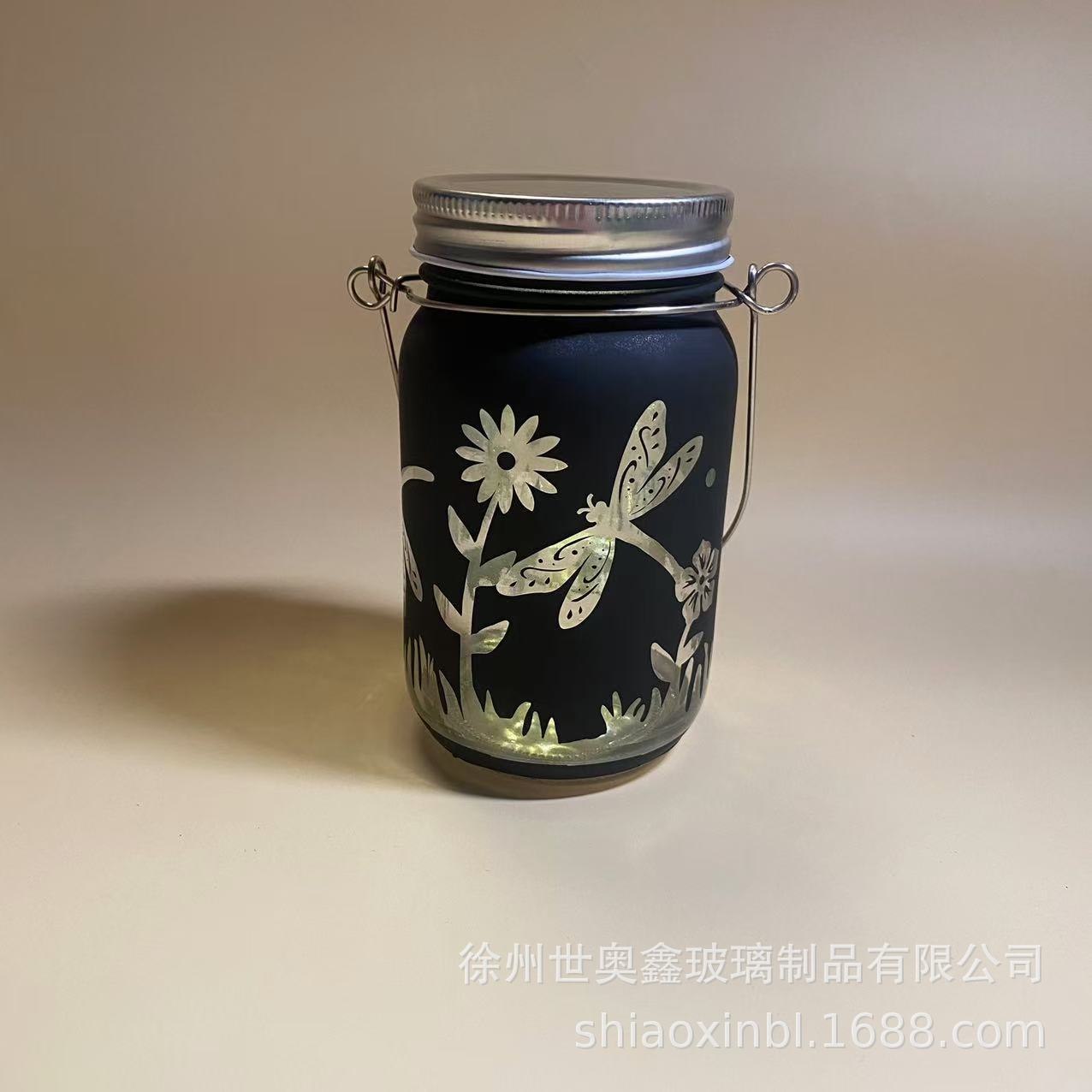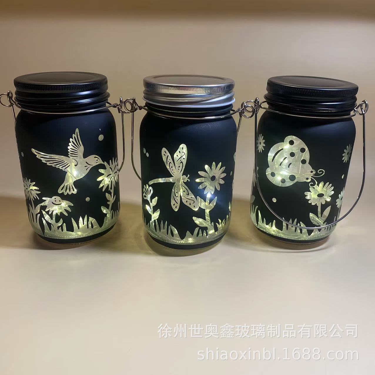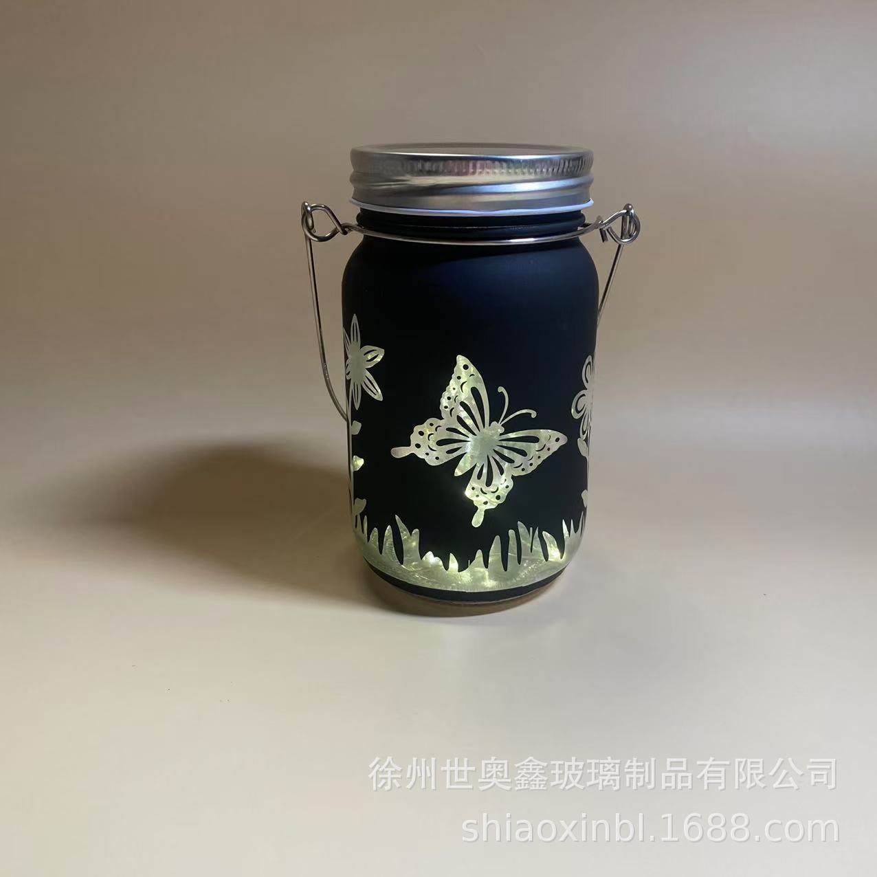 Садовый декоративный светильник в виде банки, креативный, портативный, на батарейках, с изображением бабочки и стрекозы, создающий атмосферу.