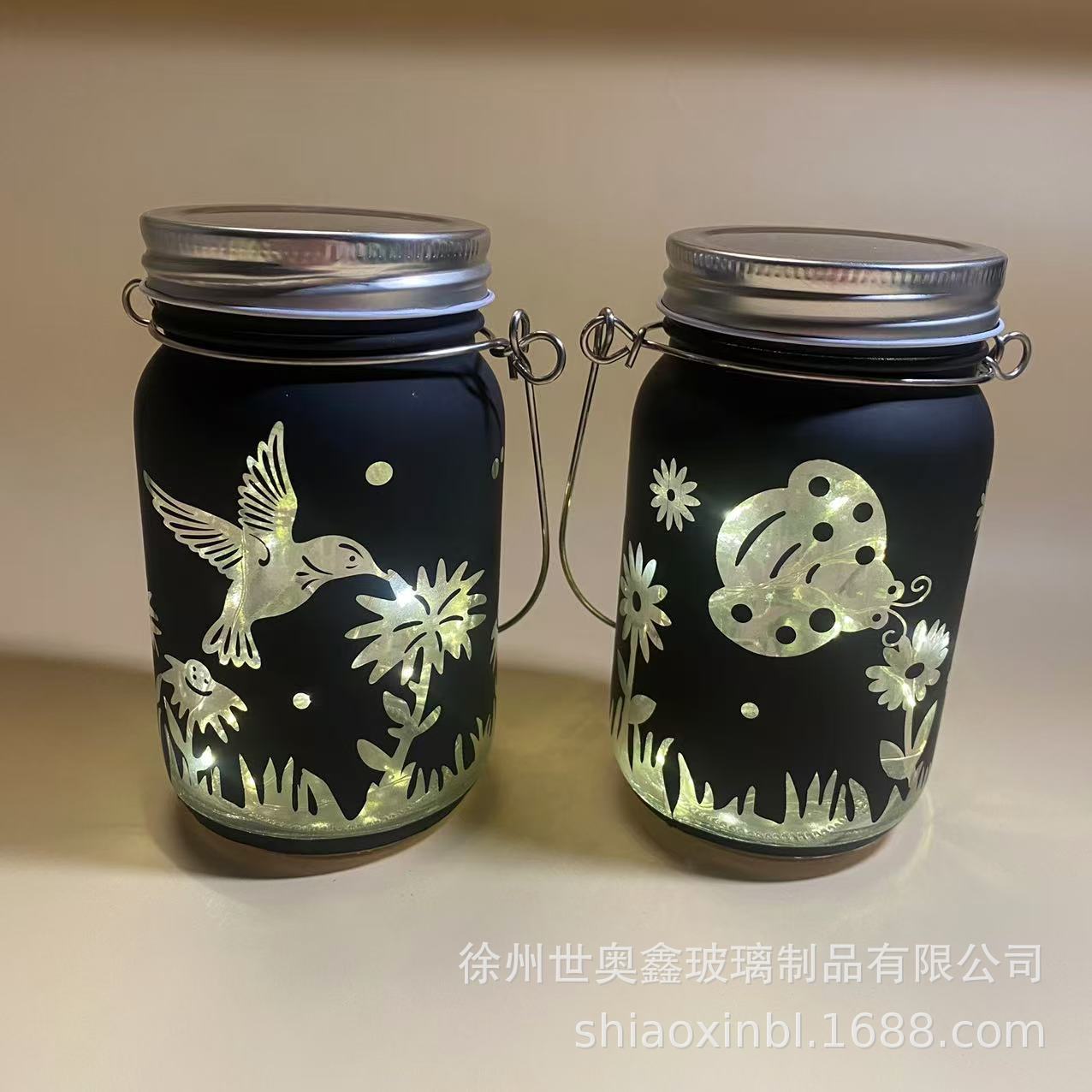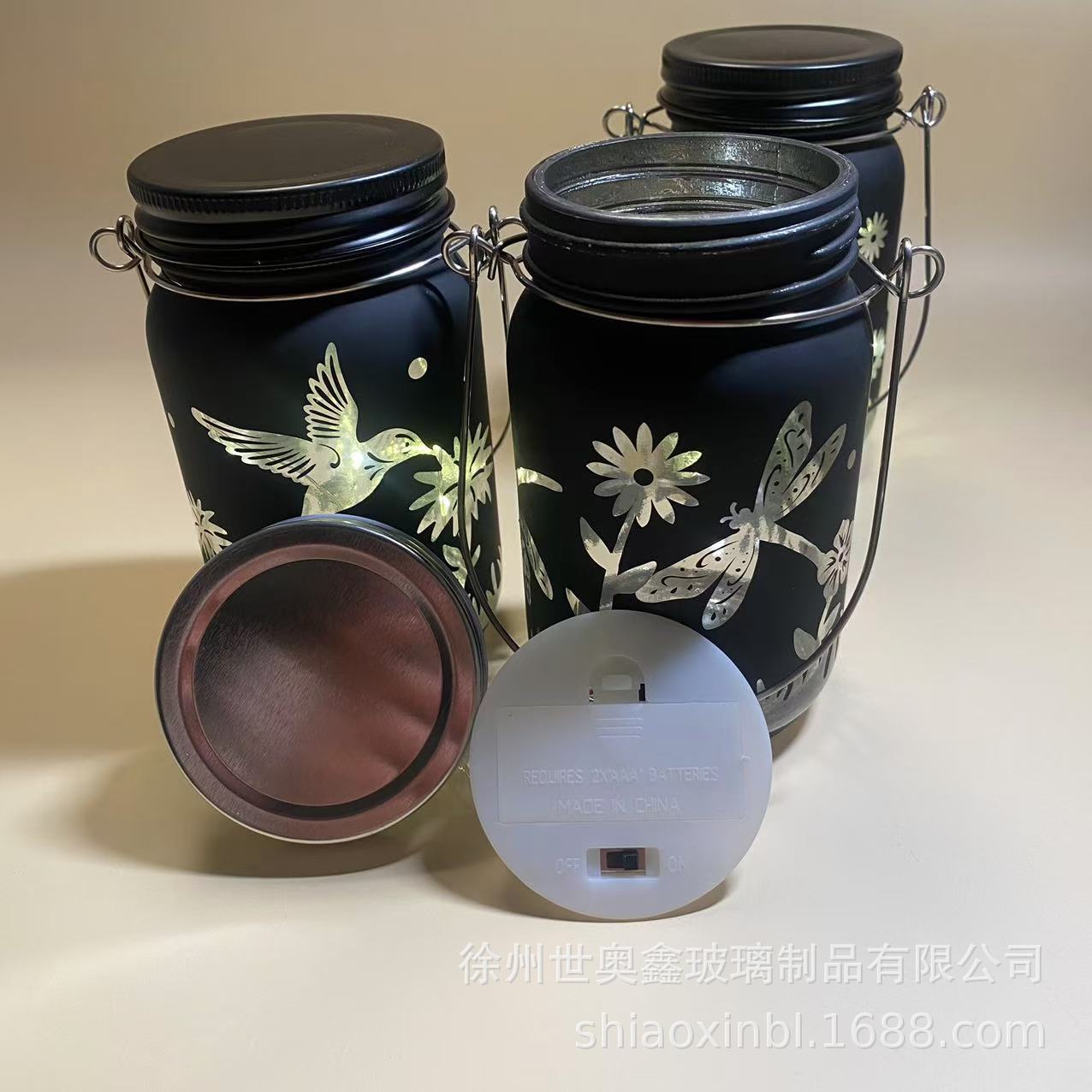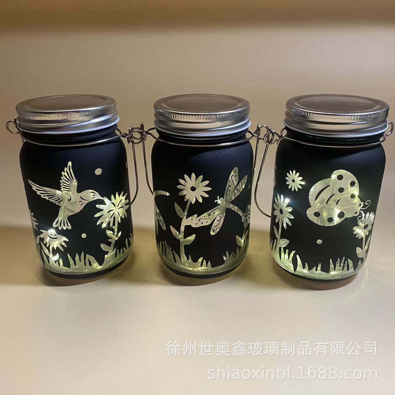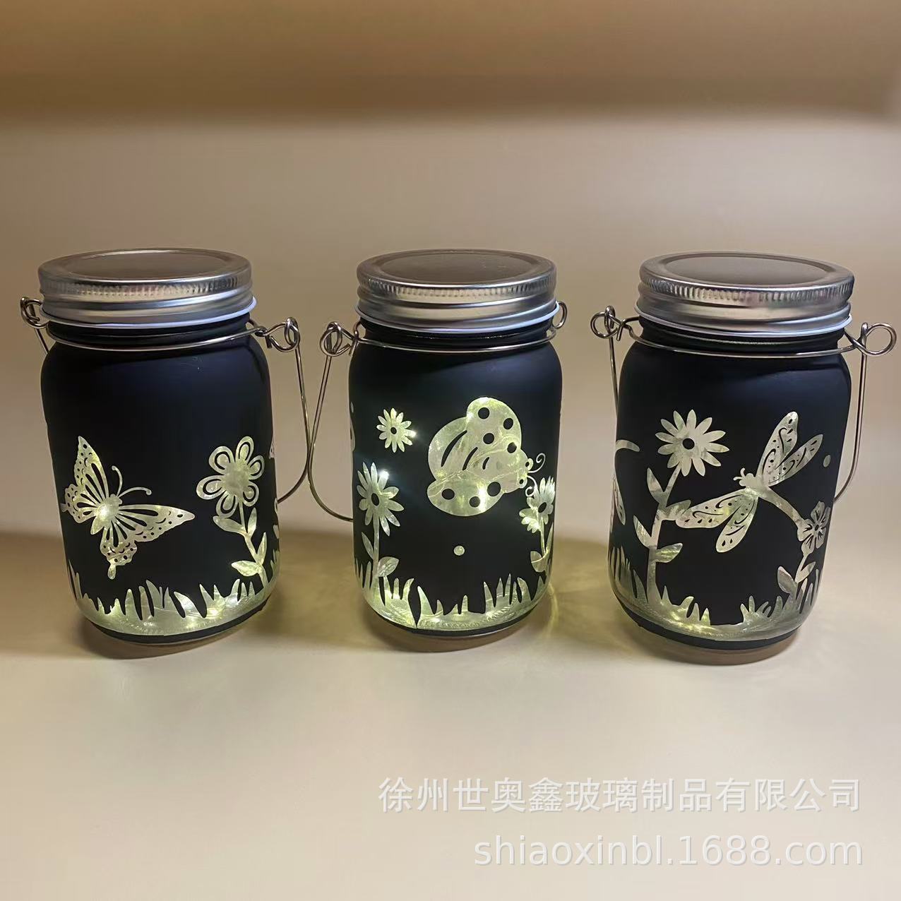 Садовый декоративный светильник в виде банки, креативный, портативный, на батарейках, с изображением бабочки и стрекозы, создающий атмосферу.