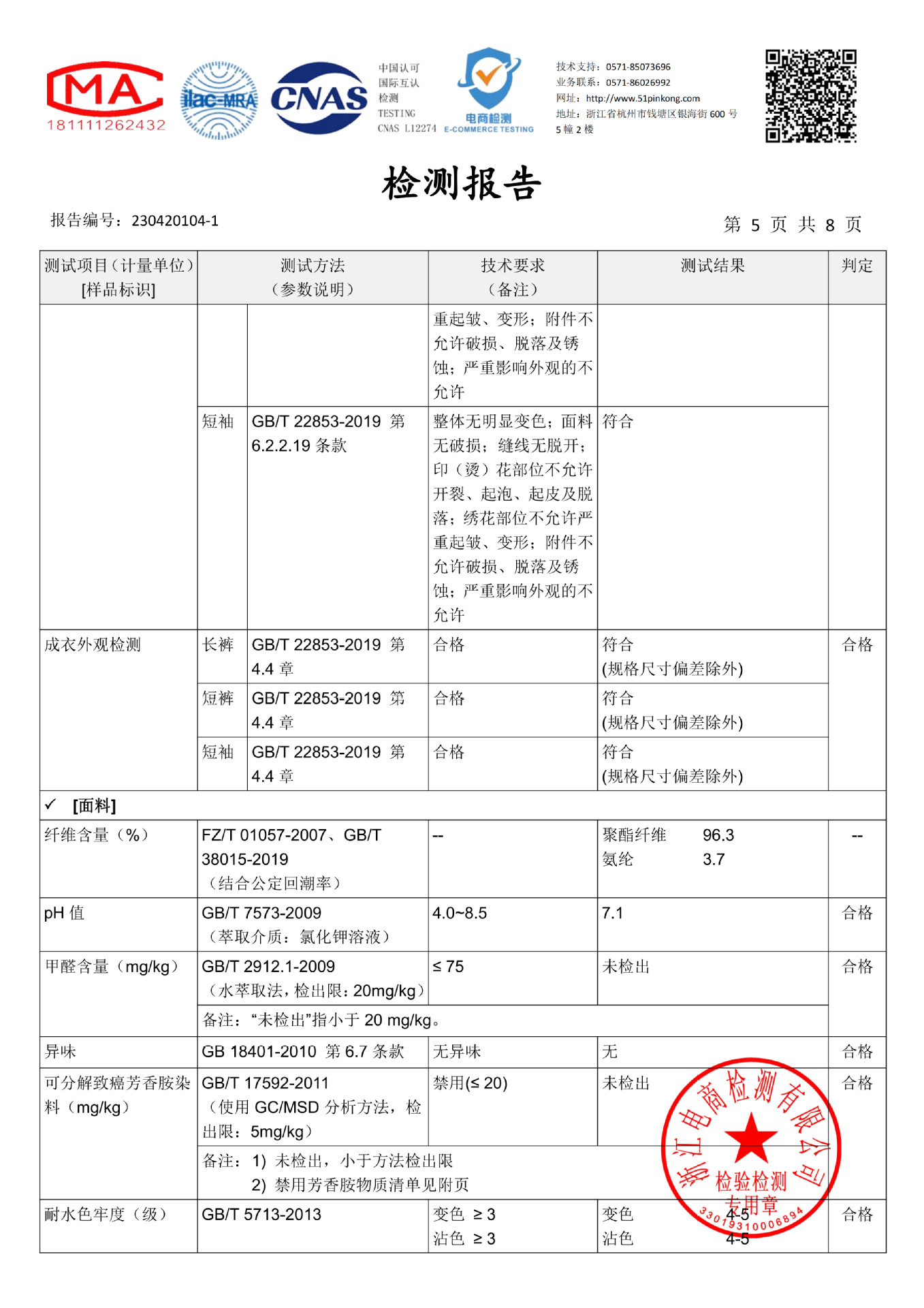 Содержание состава ткани: