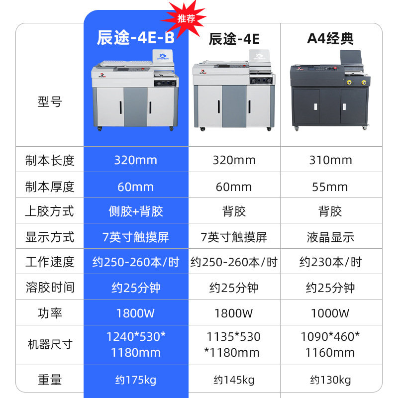 Машина для переплета с горячим клеем (Chentu-4E); Электрический резак для бумаги Chentu A4+; Резак для бумаги Chentu A4+ с ЧПУ; Резак для бумаги Chentu A4+460S с программным управлением сенсорным экраном; Идеальная переплетная машина (Chentu-4E-B с боковым клеем) обеспечивает более прочное соединение.; [Smart Basics] Сенсорный экран с боковым клеем Chentu-4E-B + электрический резак для бумаги; [Умная высокая конфигурация - 55% выбор] Сенсорный экран с боковым клеем Chentu-4E-B + резак для бумаги с ЧПУ; [Умное оборудование класса люкс] Боковой резиновый сенсорный экран Chentu-4E-B + программируемый резак для бумаги с сенсорным экраном Yun Guan CD460S