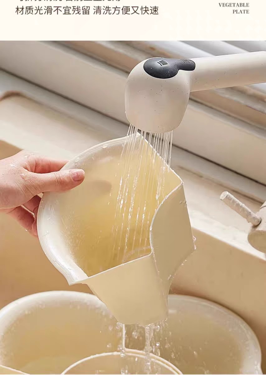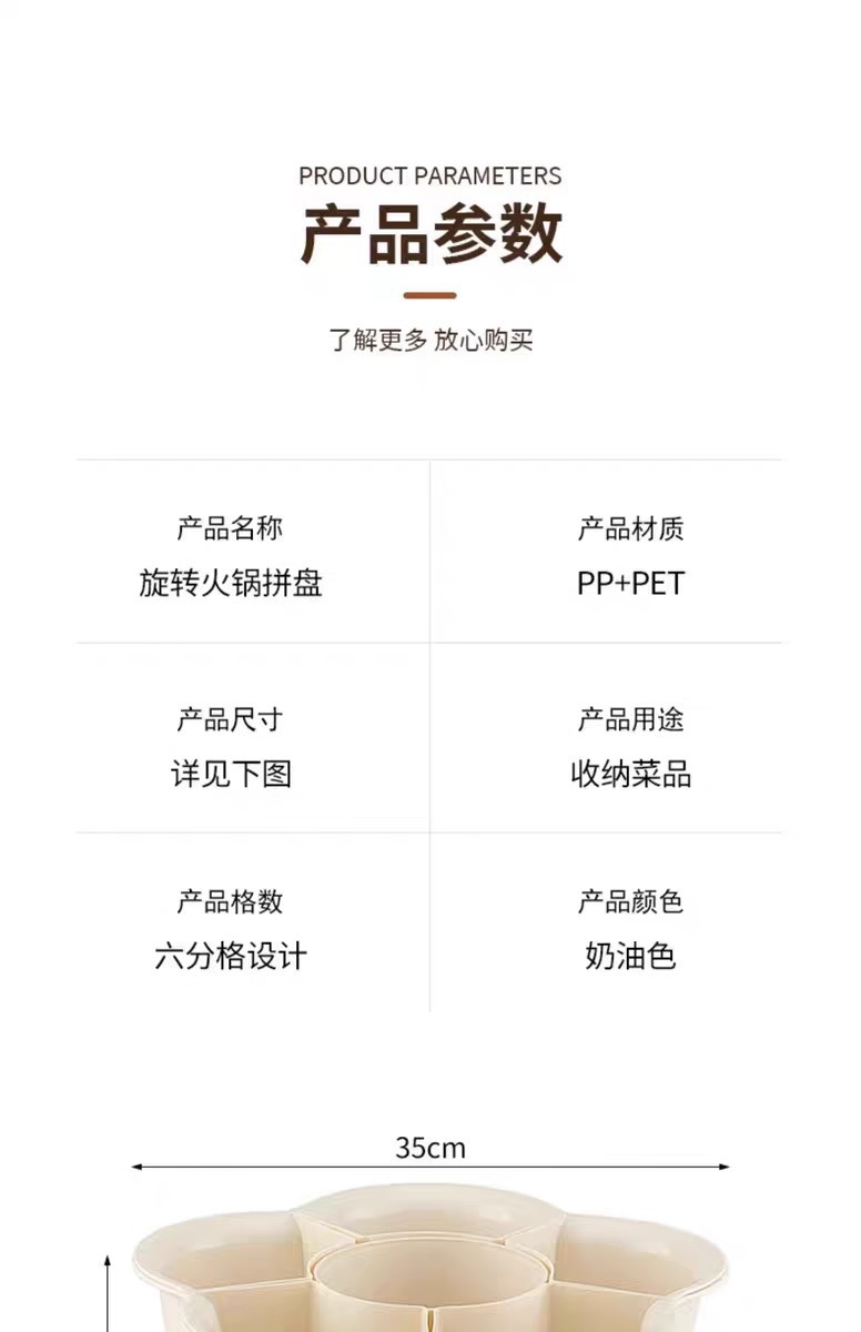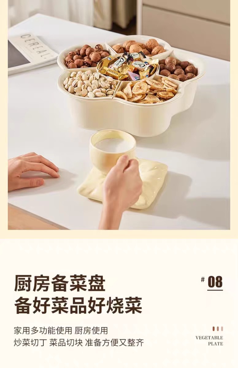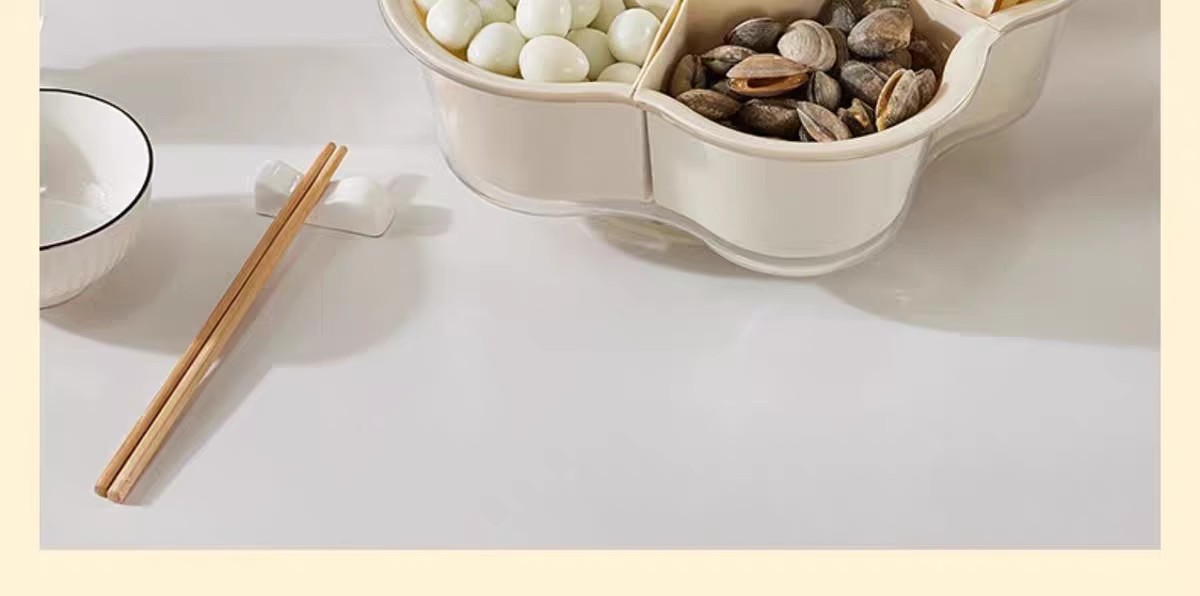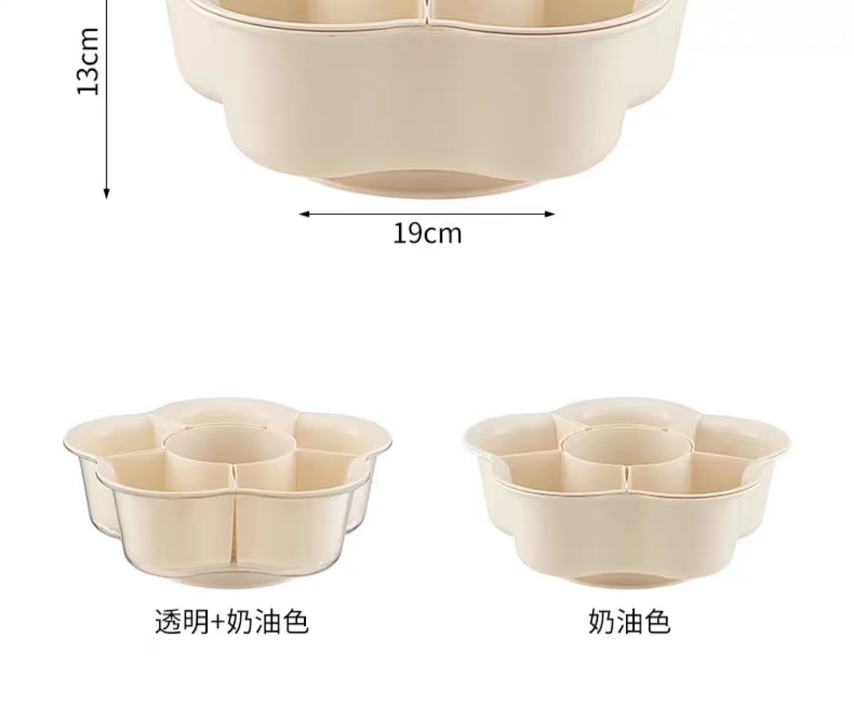 Кремовый цвет [пП вращающаяся тарелка для приготовления овощей 6 отделений]; Кремовый цвет [поворотная тарелка для приготовления овощей 9 отделений]; Прозрачный + крем [ПЭТ вращающаяся тарелка для приготовления овощей, 6 отделений]; Серебристо-белая трехслойная сервировочная тарелка; Трехслойная сервировочная тарелка серого цвета