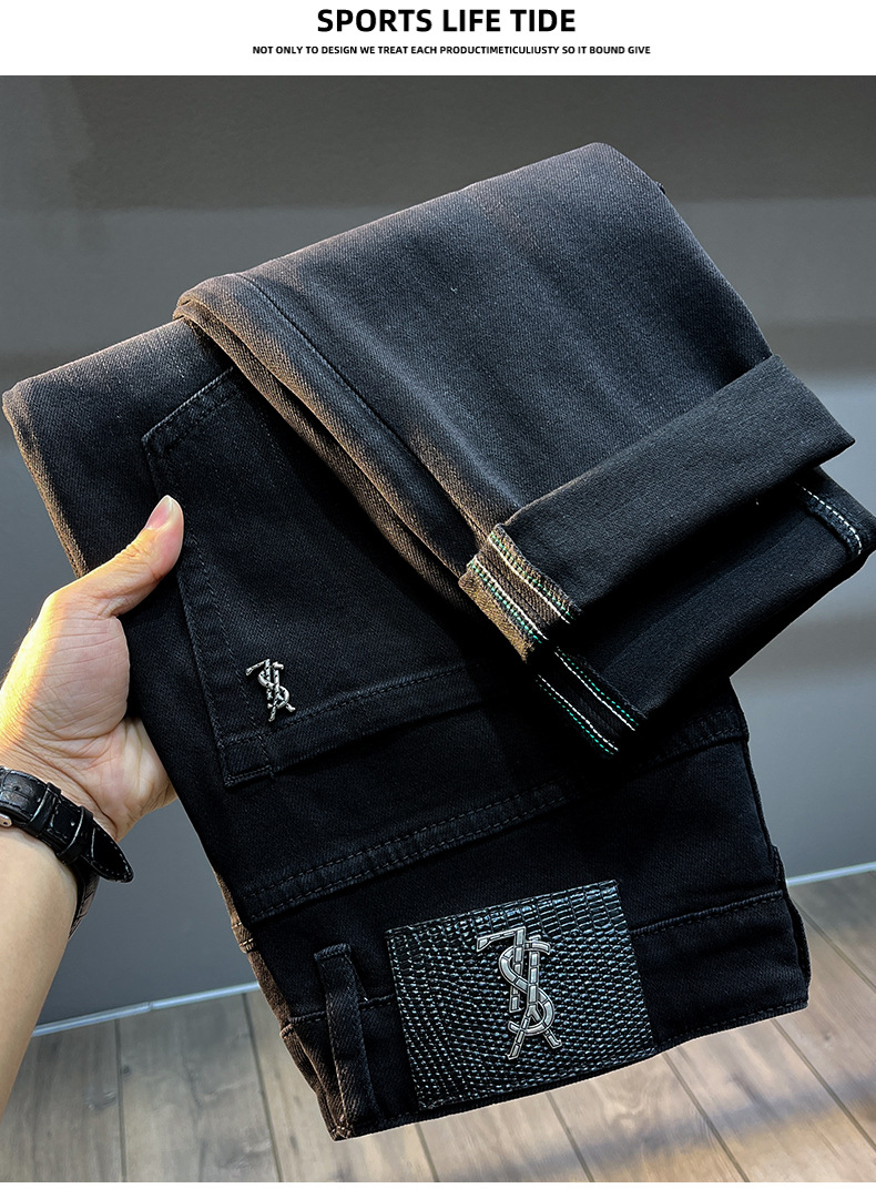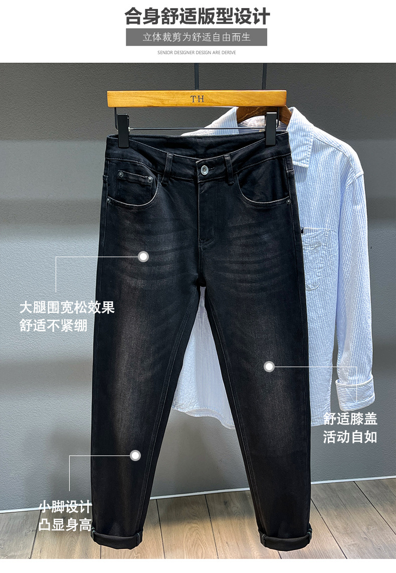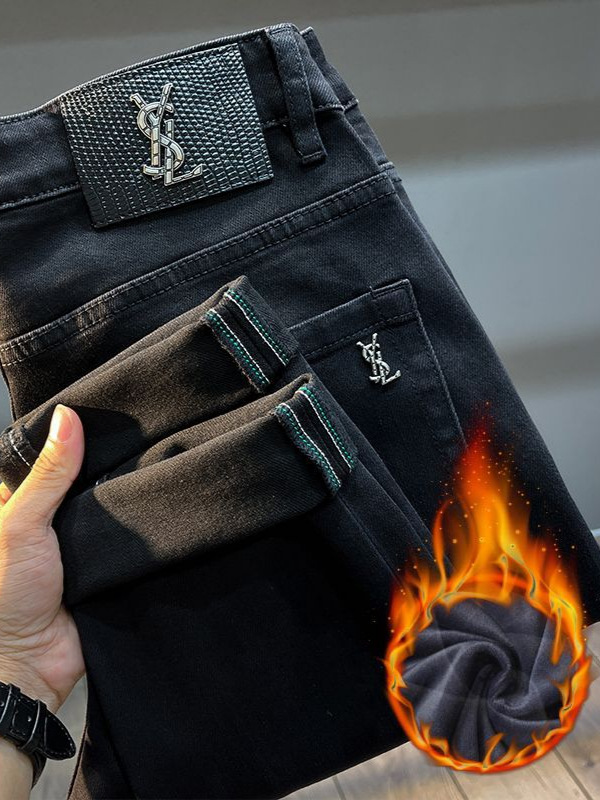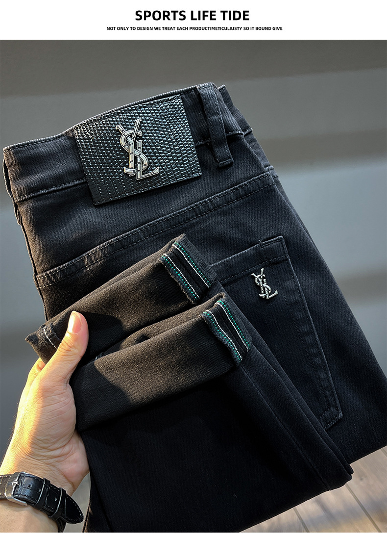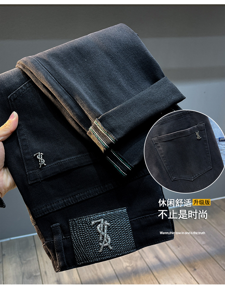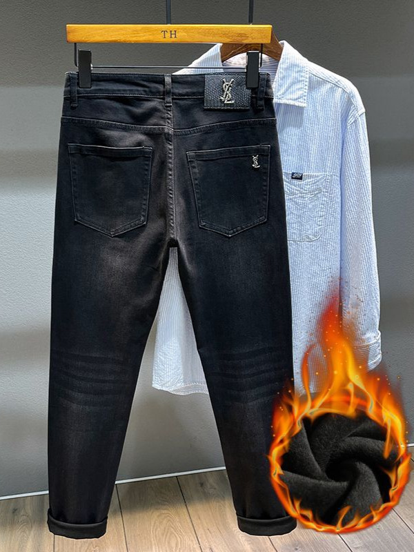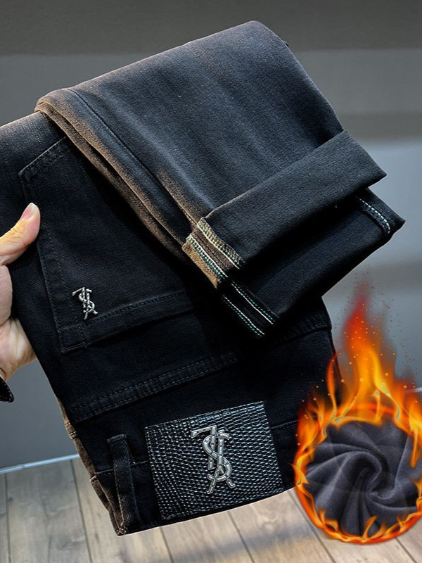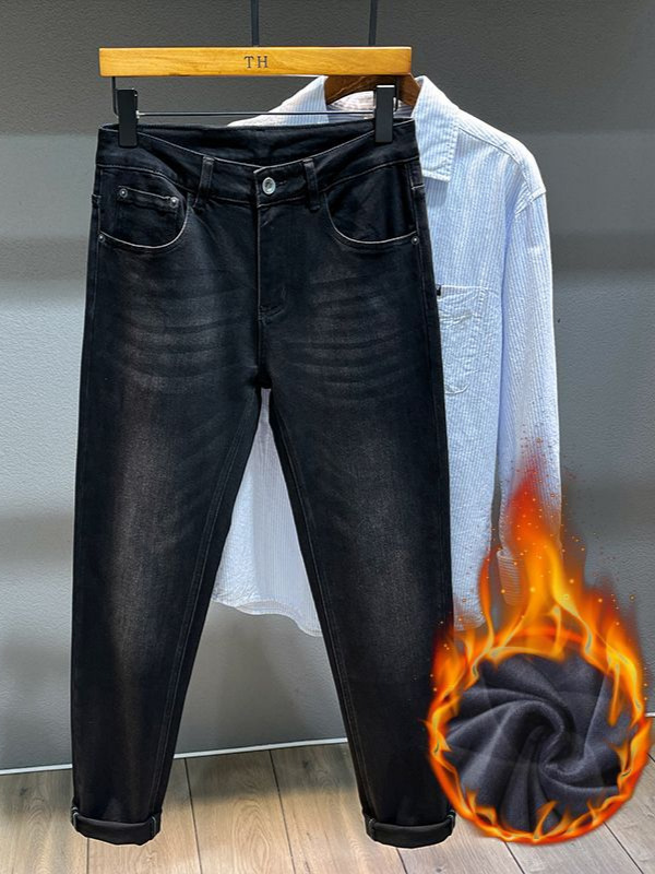 Зимние бархатные утолщенные мужские джинсы высокого класса тополя европейская версия черной стирки прямых трусов эластичные брюки для мужчин
