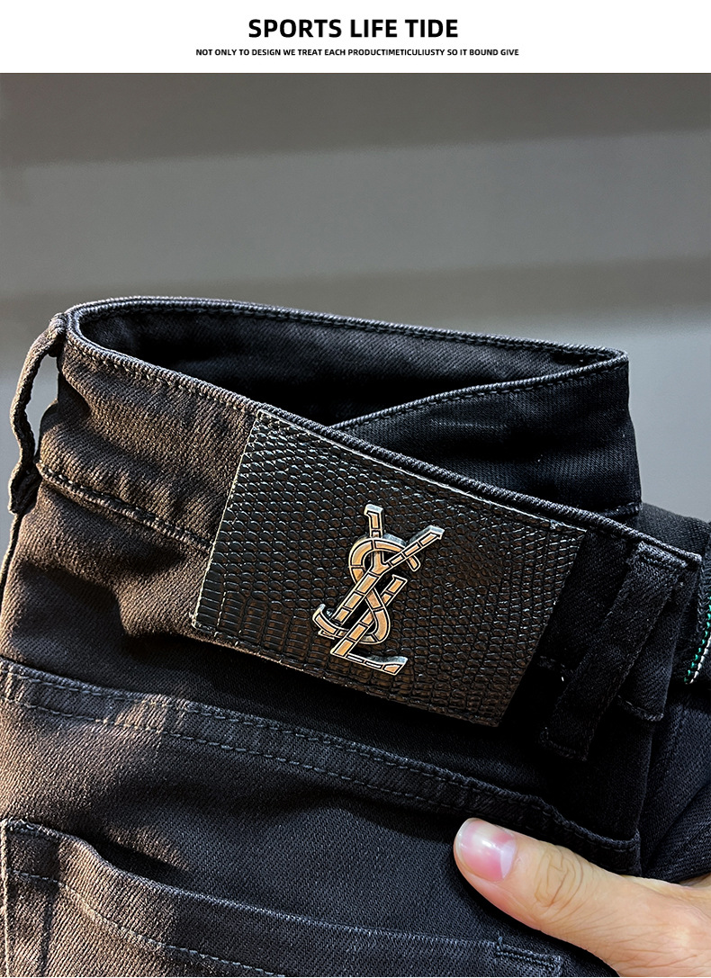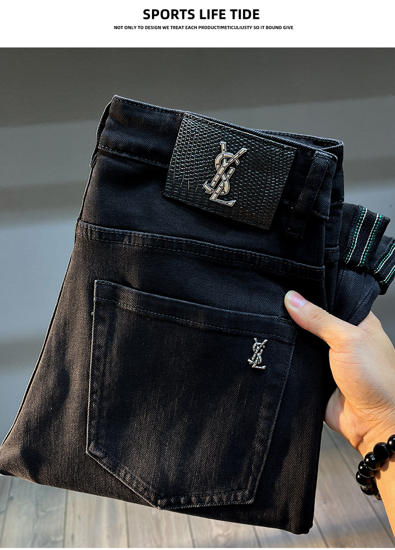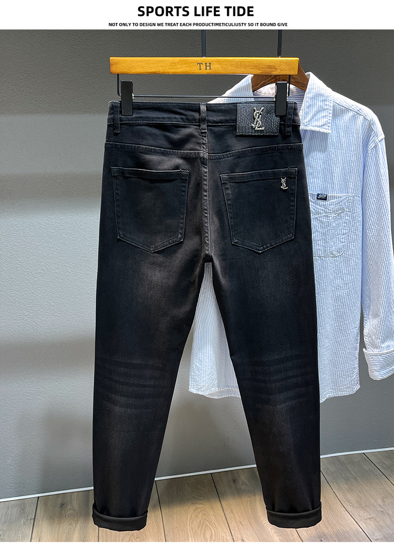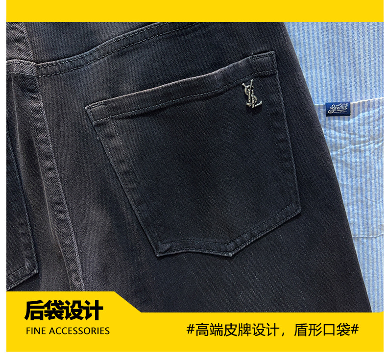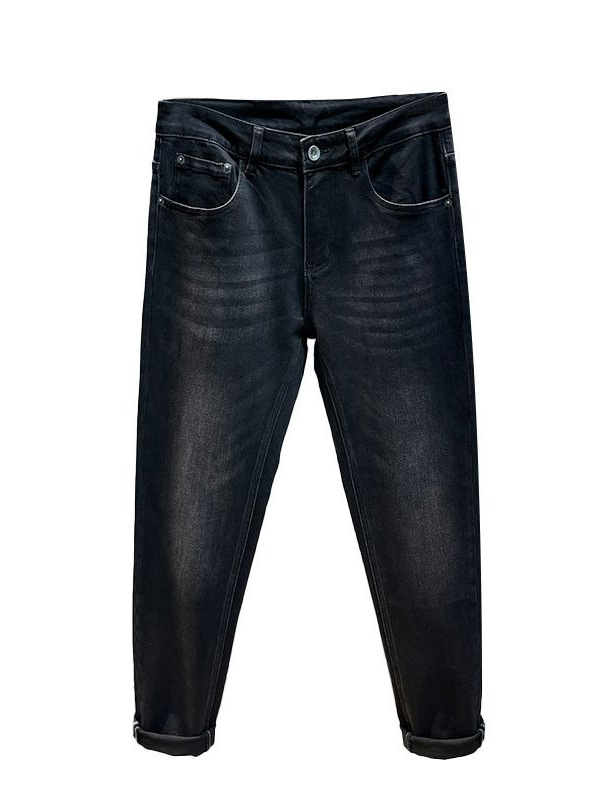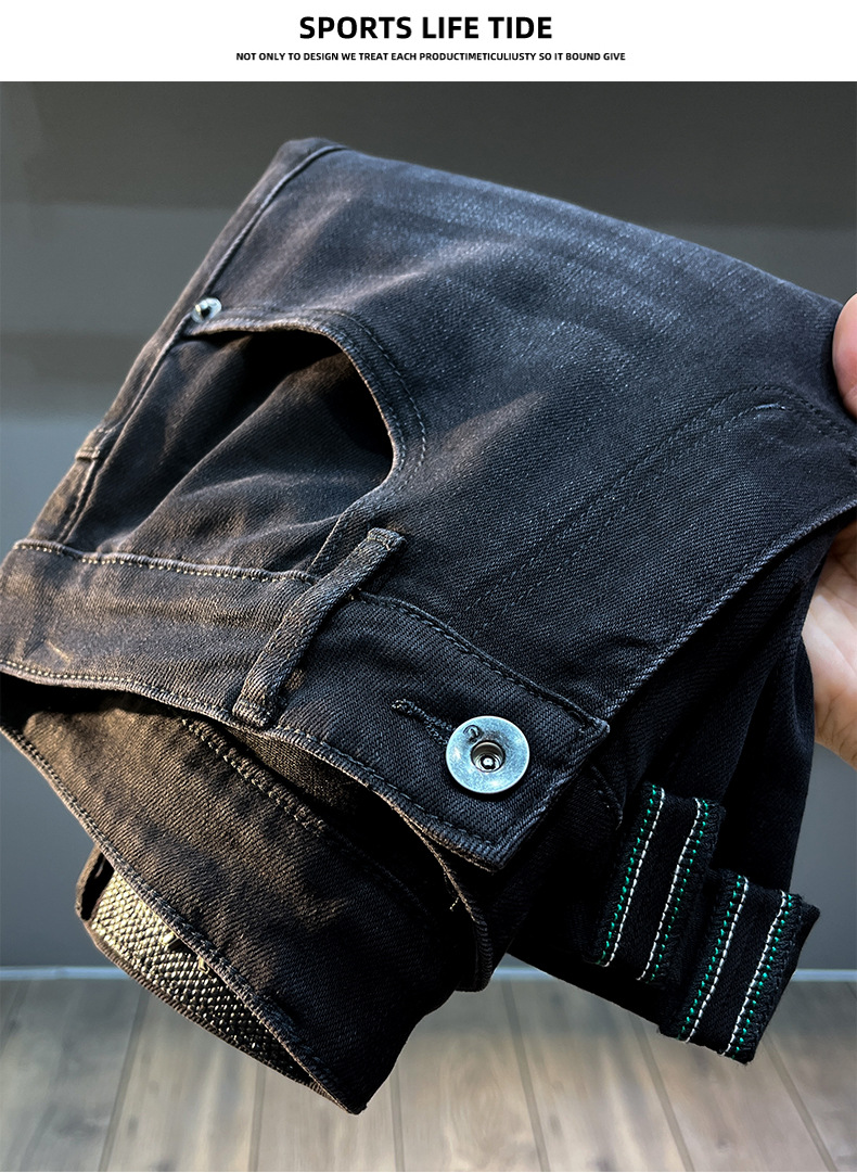 Зимние бархатные утолщенные мужские джинсы высокого класса тополя европейская версия черной стирки прямых трусов эластичные брюки для мужчин