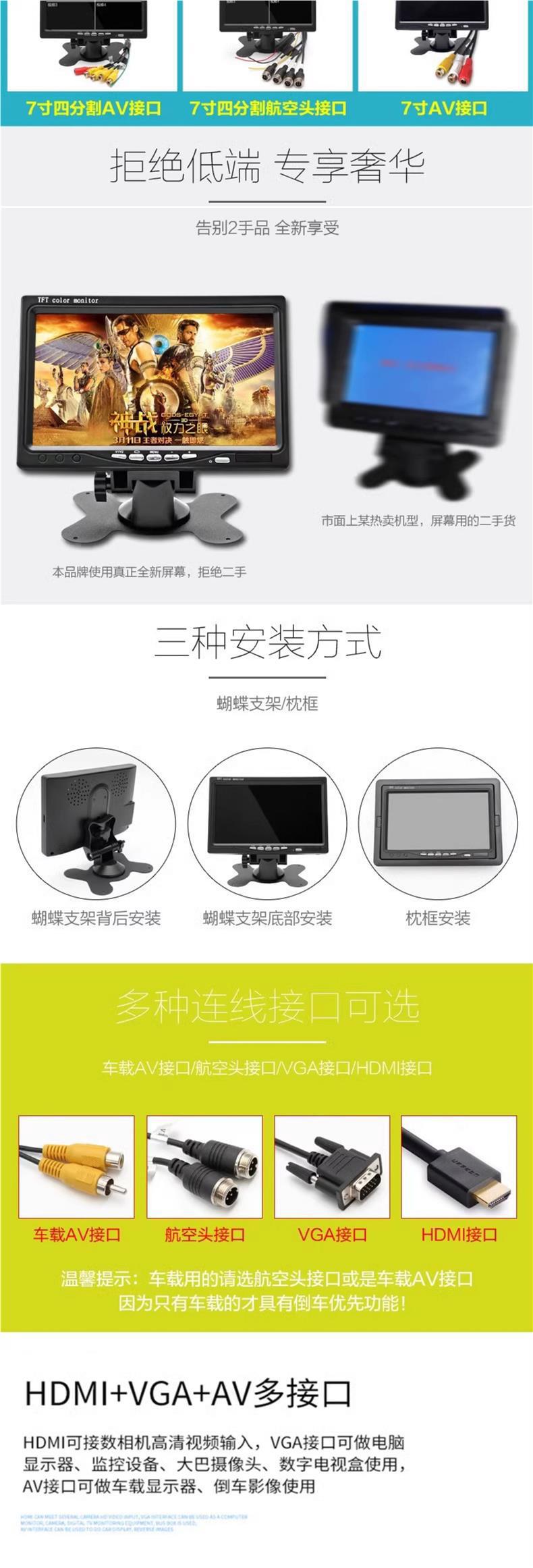 7inch Мониторинг (без источника питания); 7inch Автомобильный AV (800*480); 7inch Автомобиль AV IPS (1024*600); 7inch автомобильная авиационная головка (800*480); 7inch Автомобильная авиационная головка IPS (1024*600); 7inch Мониторинг (800*480); 7inch Мониторинг + Электричество; 7inch мониторинг + звук (блок питания в комплекте); 7inch Монитор + Звук/IPS (блок питания в комплекте); 7inch VGA (источник питания 800*480); 7inch VGA (1024*600 поставляется с источником питания); 7inch VGA IPS (источник питания 1024*600); 7inch HDMI три в одном/HD (блок питания в комплекте); 7inch HDMI три в одном/ультрачистый (блок питания в комплекте); 7inch HDMI три в одном/IPS (блок питания в комплекте); 7inch Сенсорный конденсатор HDMI; 10.1 HDMI(1024*600); 10.1HDMI+MP5(1280*800); 9inch AV (1024*600 поставляется с блоком питания); 9inch VGA (1024*600 поставляется с источником питания); 10inch Сенсорный экран HDMI; 10inch VGA+Авиация; 4.3inch Голова лотоса (автомобиль)