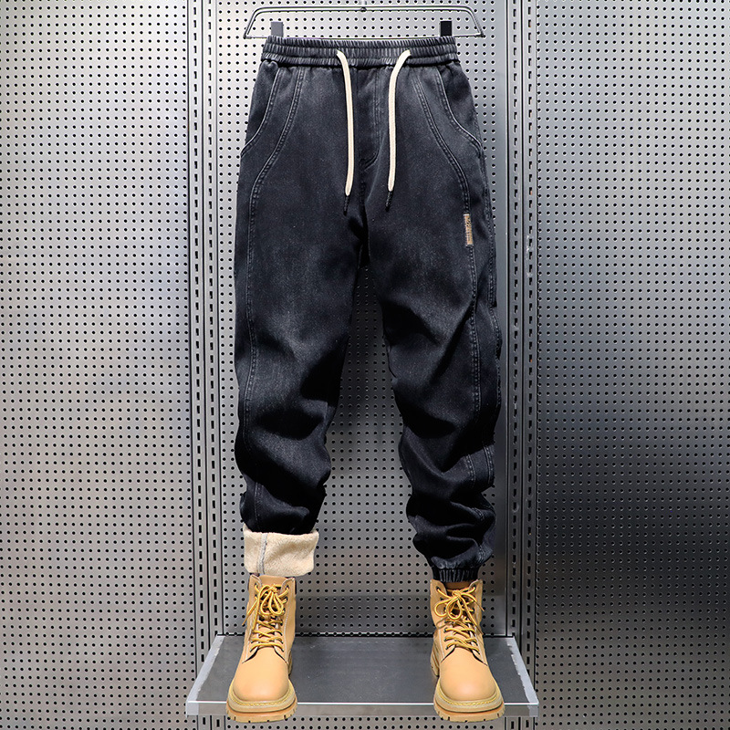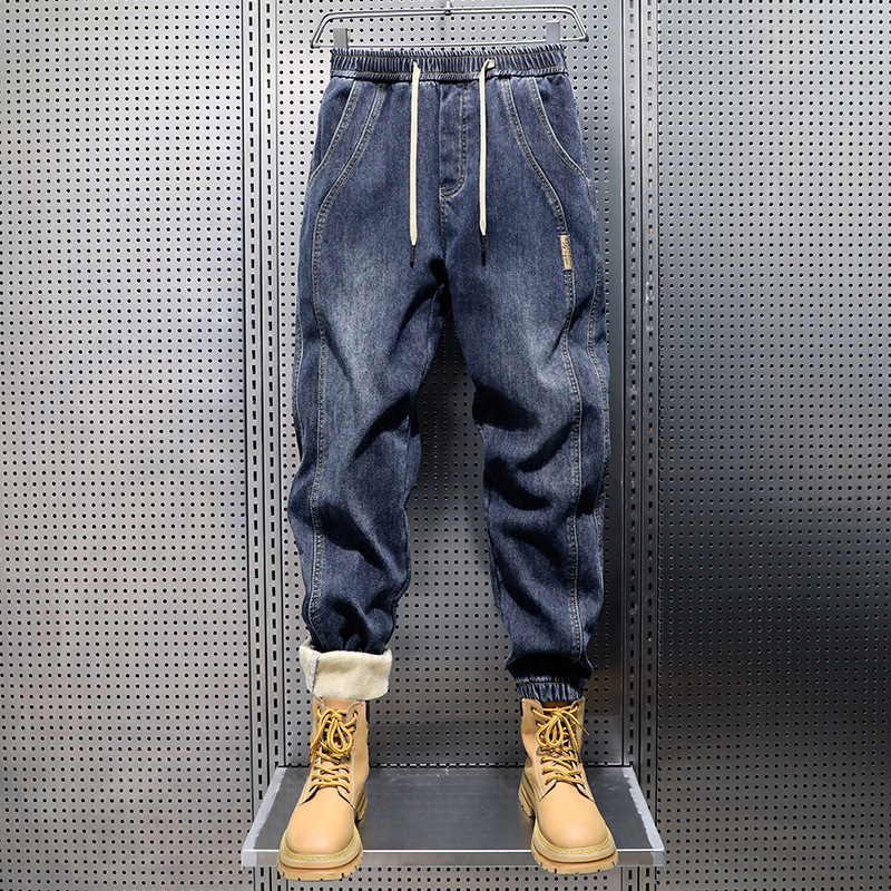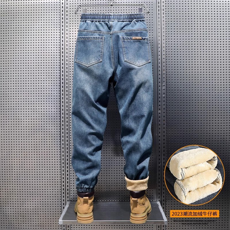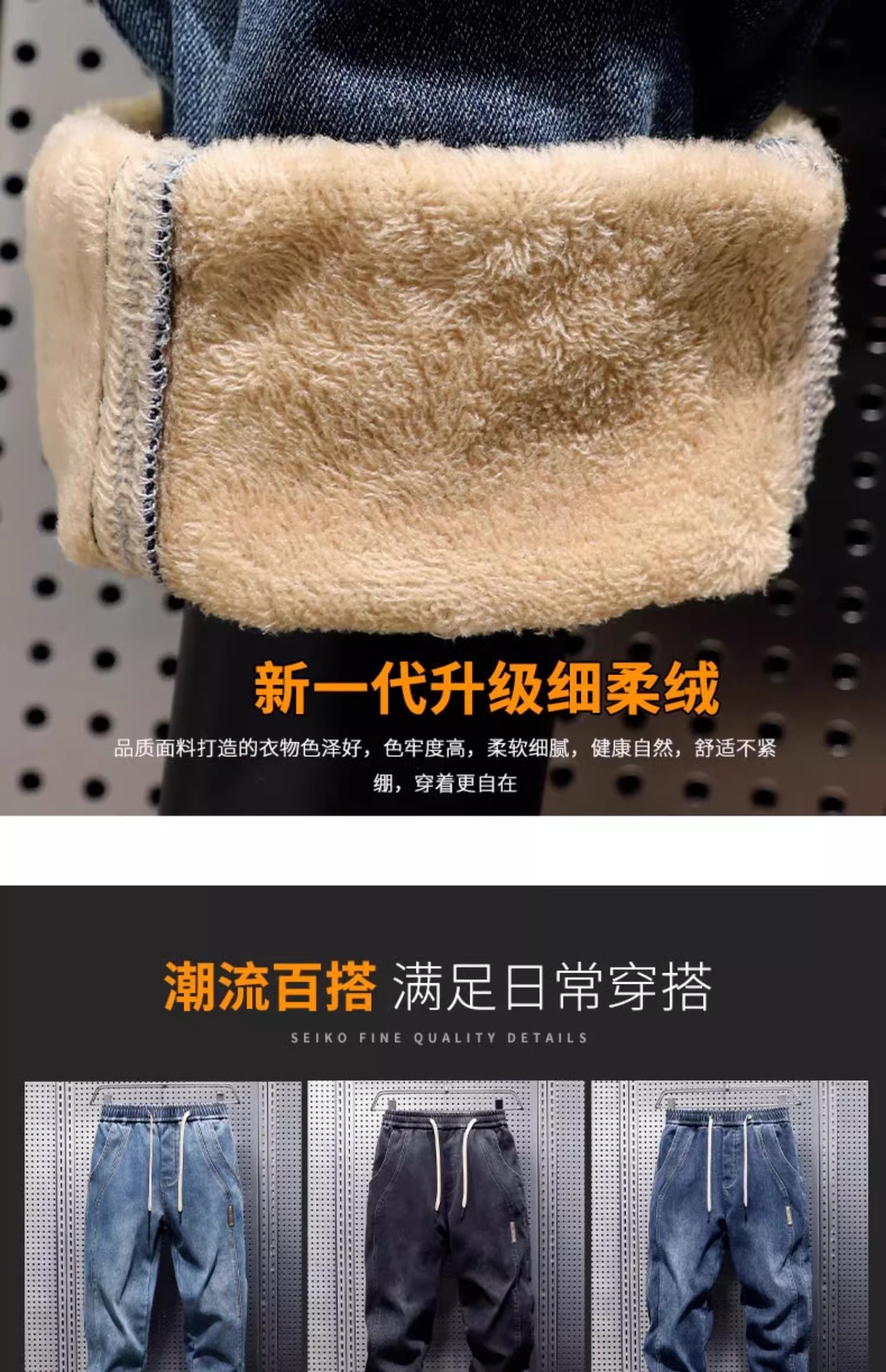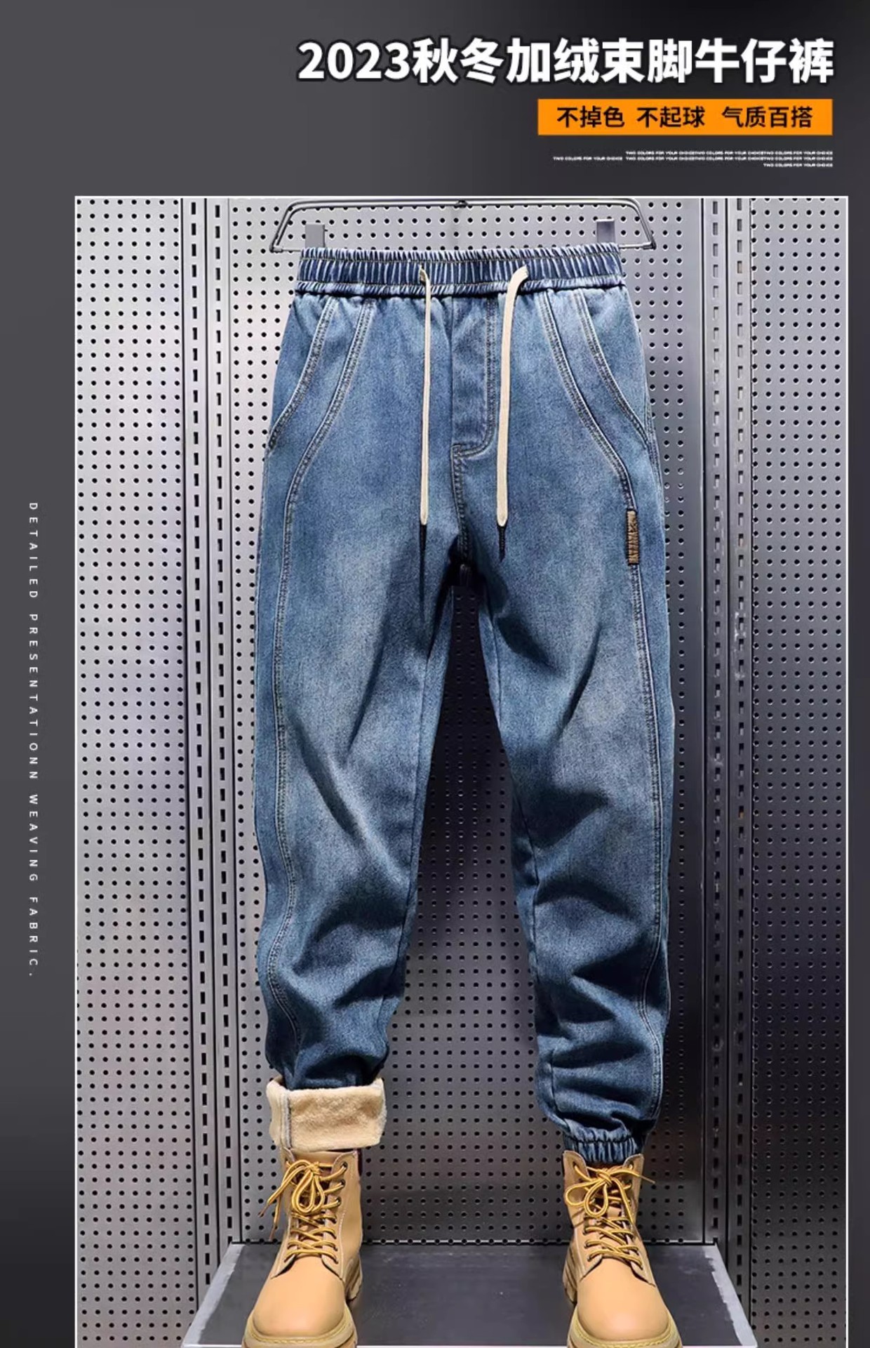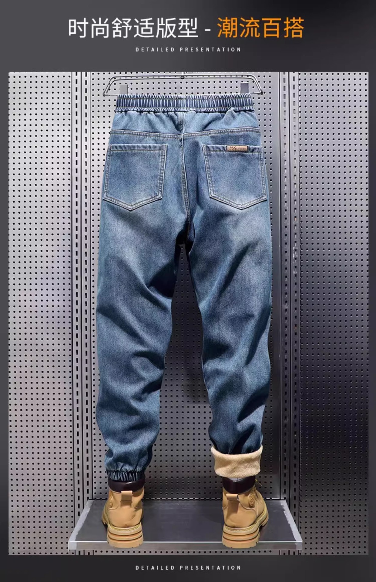 Утолщенные мужские джинсы на флисовой подкладке, осень-зима 2024, морозостойкая теплая флисовая верхняя одежда, мужские шаровары для бега