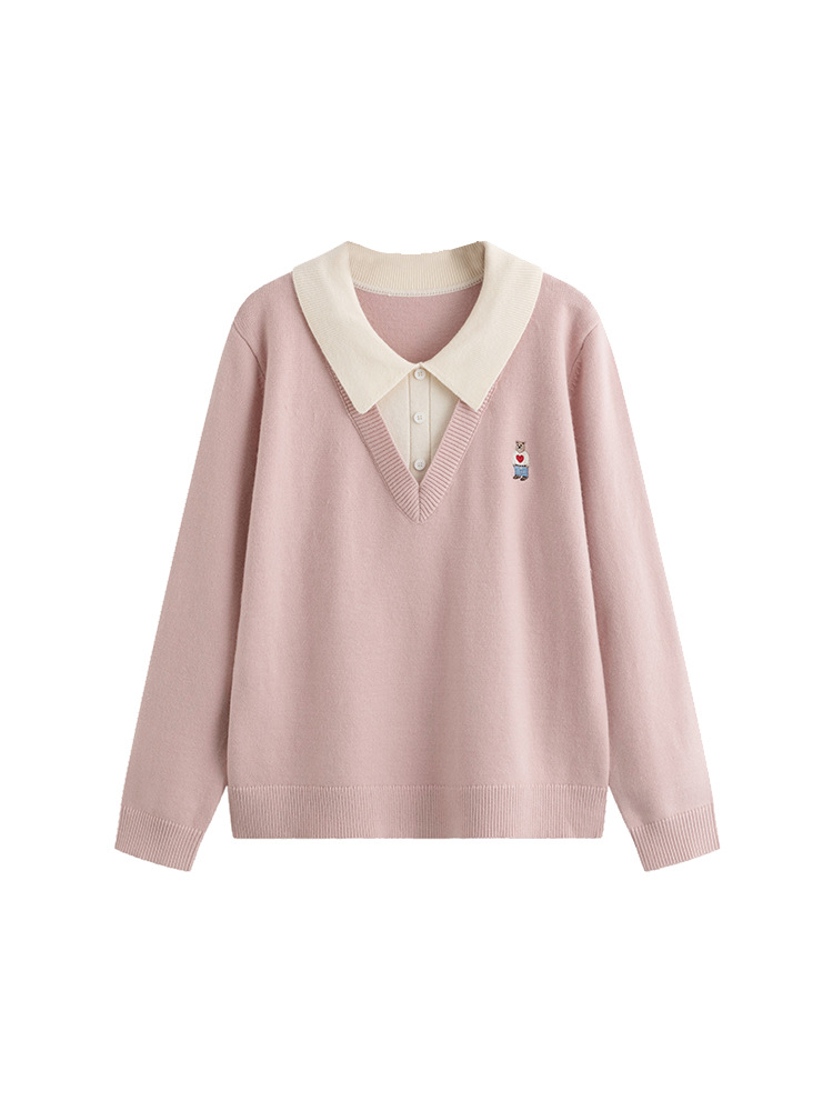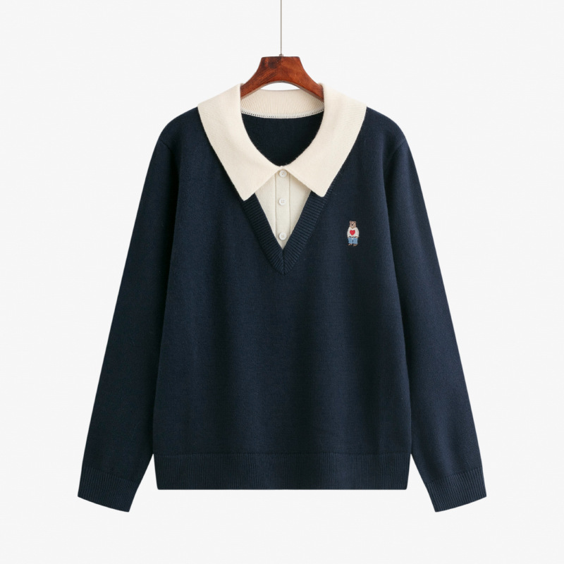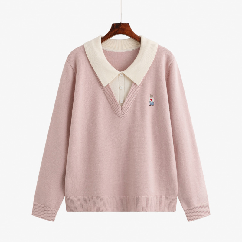 Женский свитер больших размеров, имитация двухслойного, в стиле преппи, нежный и милый, зима 2025, трикотаж для полных девушек, 22773