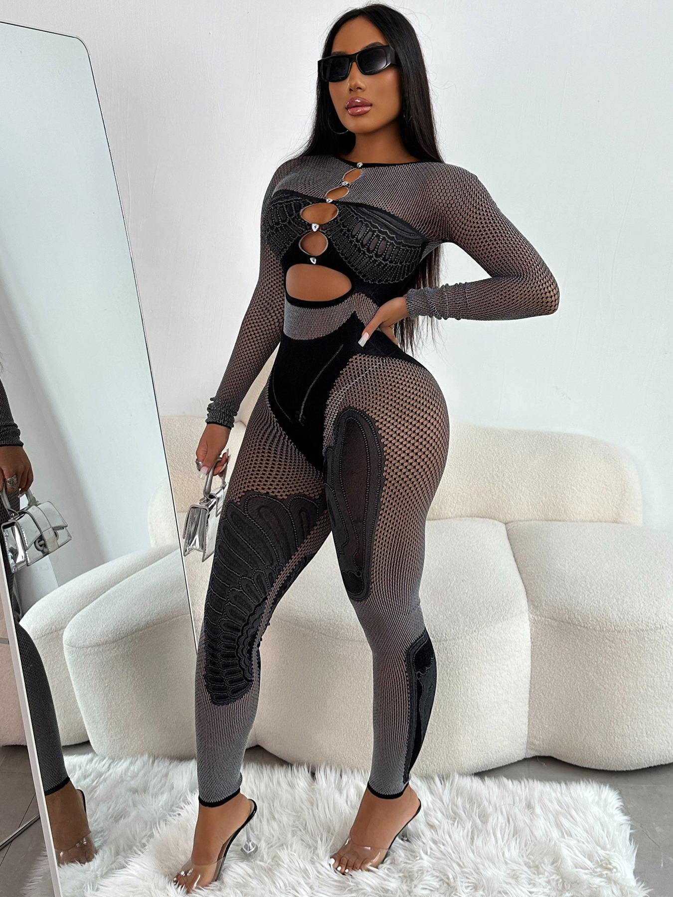 Европейские и американские трансграничные новые 2024 женские двухцветные узкие бриллианты узкие брюки с длинными рукавами комбинезоны женские
