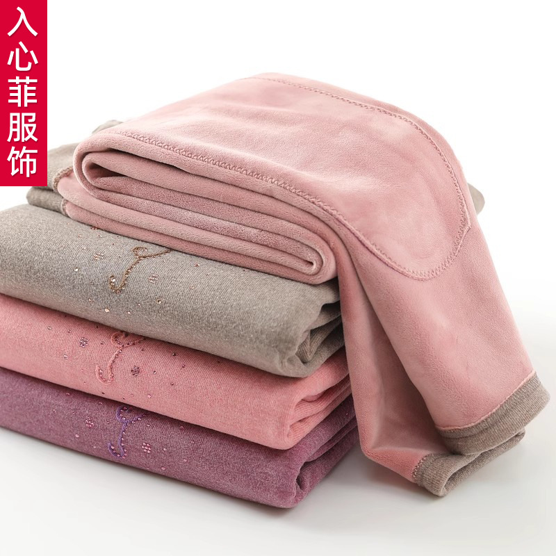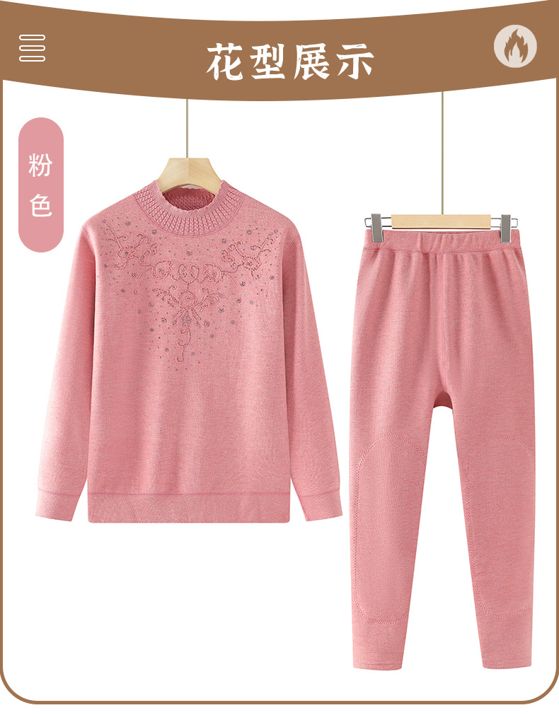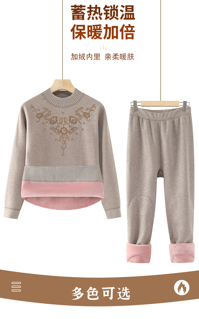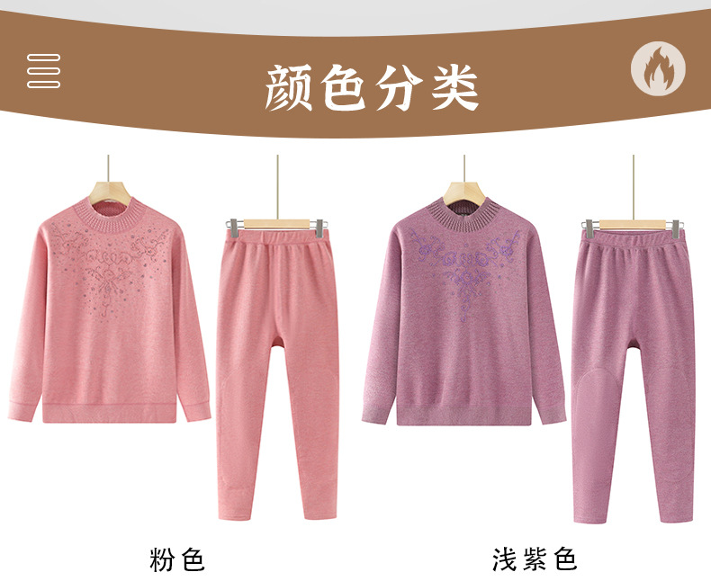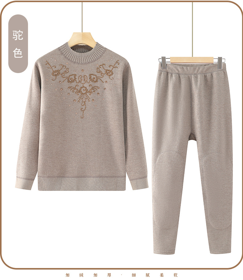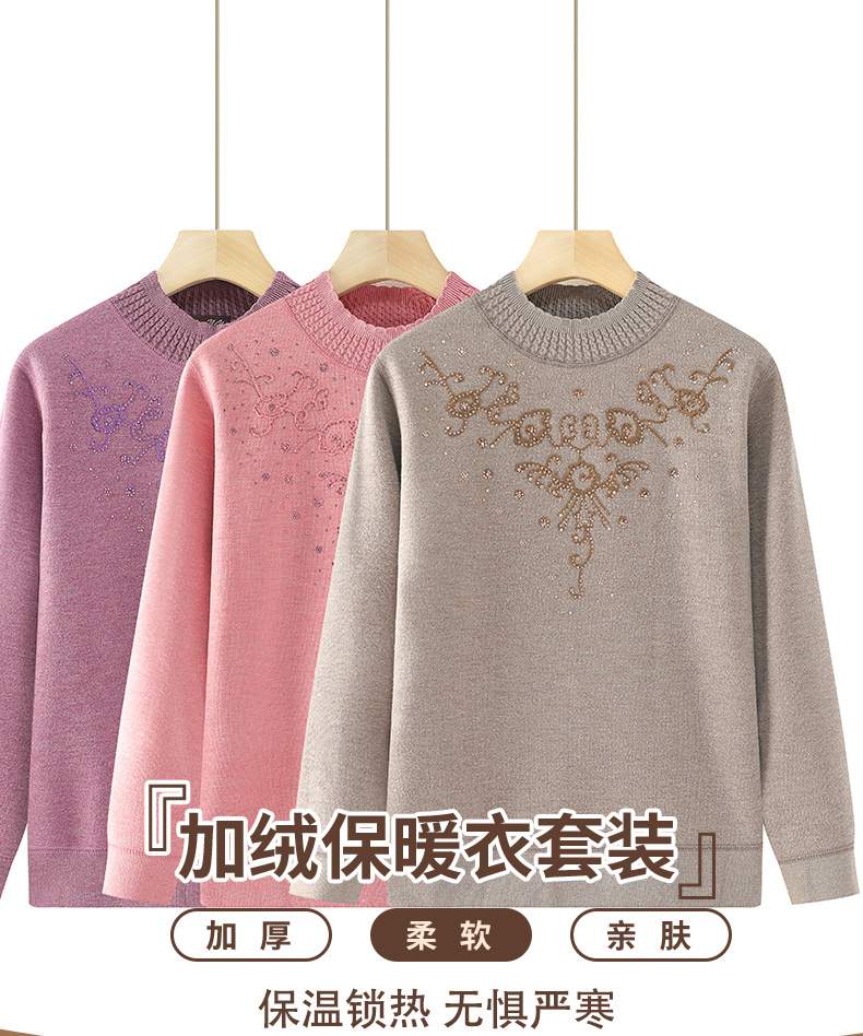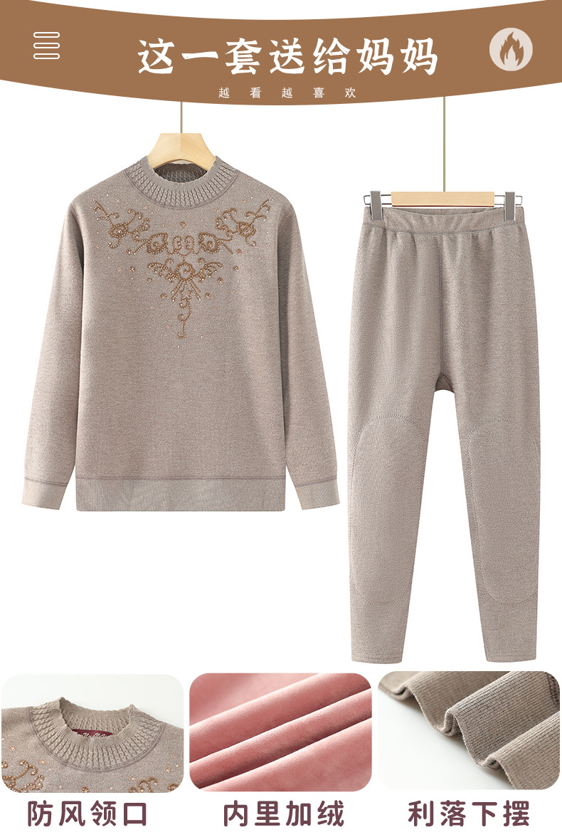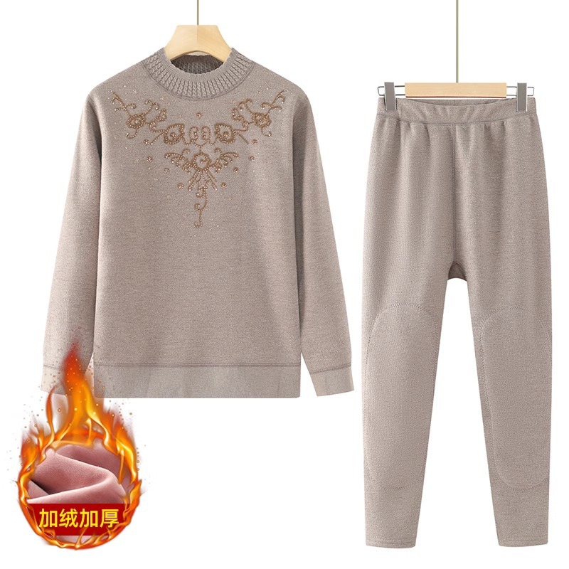 Комплект термобелья для мам на осень и зиму, на флисовой подкладке, утолщенный, для женщин среднего и старшего возраста, зимняя одежда для бабушки, термокомплект для пожилых женщин (топ и низ).