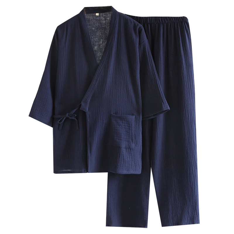 Хлопчатобумажный креп кимоно паровой набор для мужчин 230 кг большой размер японские брюки с длинными рукавами сауна Отель домашняя одежда