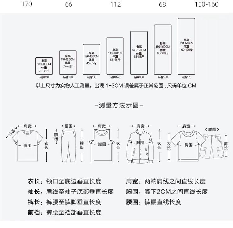 Рекомендуемый рост для размера 120 113cm; Рекомендуемый рост на размер 130 123cm; Рекомендуемый рост для размера 140 133cm; Рекомендуемый рост для размера 150 143cm; Рекомендуемый рост на рост 160 153cm; Рекомендуемый рост для размера 170 161cm