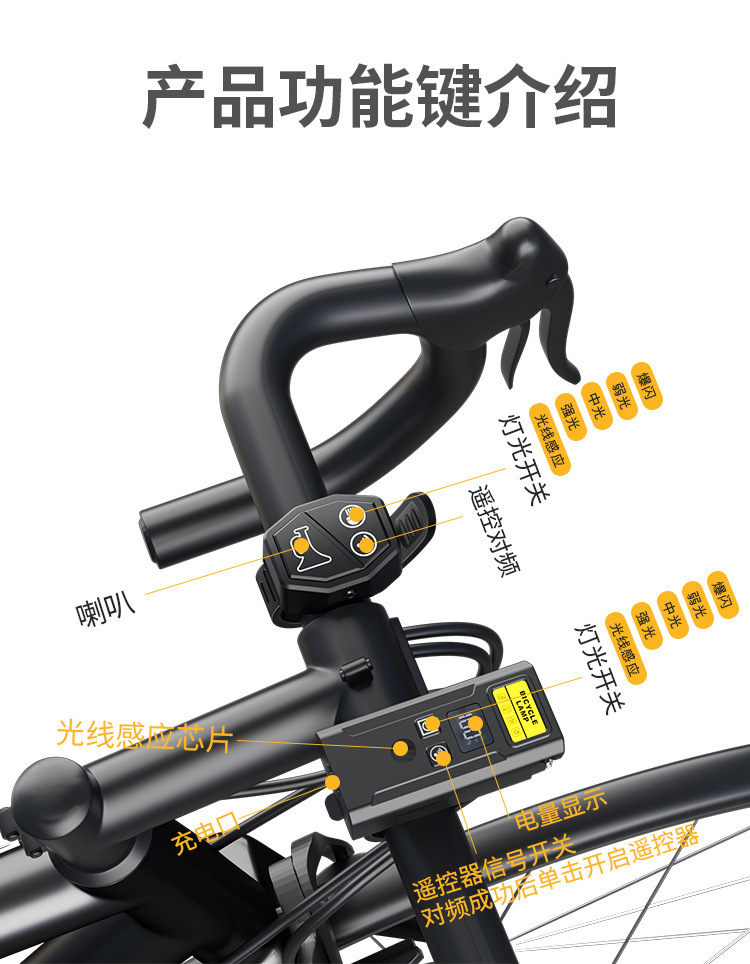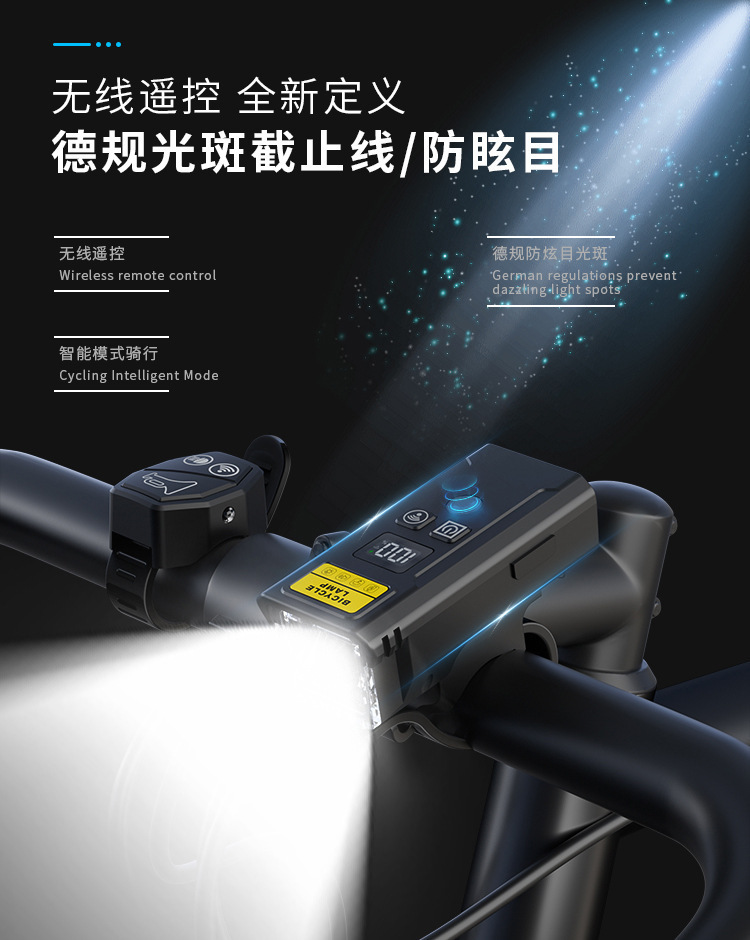 Трансграничный новый велосипед фары для зарядки ночью интеллектуальный свет беспроводной пульт дистанционного управления цифровой дисплей с гудком