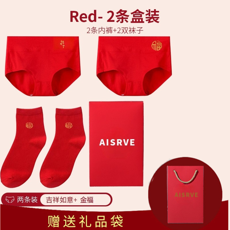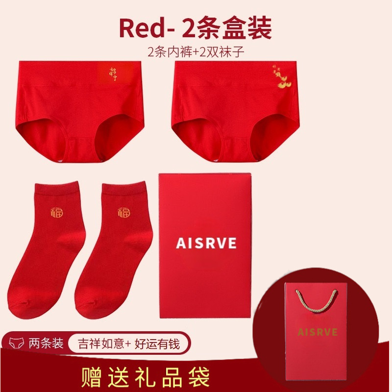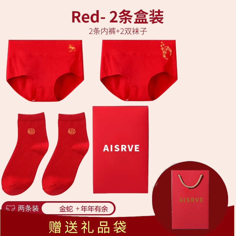 Женское нижнее белье с высокой талией, из чистого хлопка, красное, на год Лошади, праздничное красное белье на удачу, подарочный набор для женщин оптом