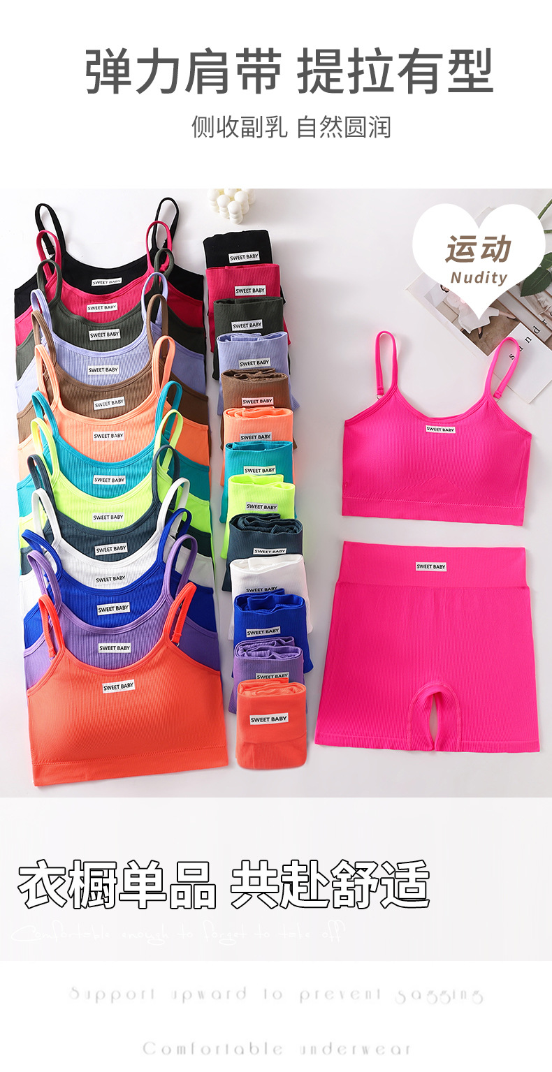 Комплект спортивного бюстгальтера на тонких бретелях из высокоэластичного хлопкового трикотажа, удобная одежда, с эффектом пуш-ап, без видимых складок, с эффектом подтяжки ягодиц