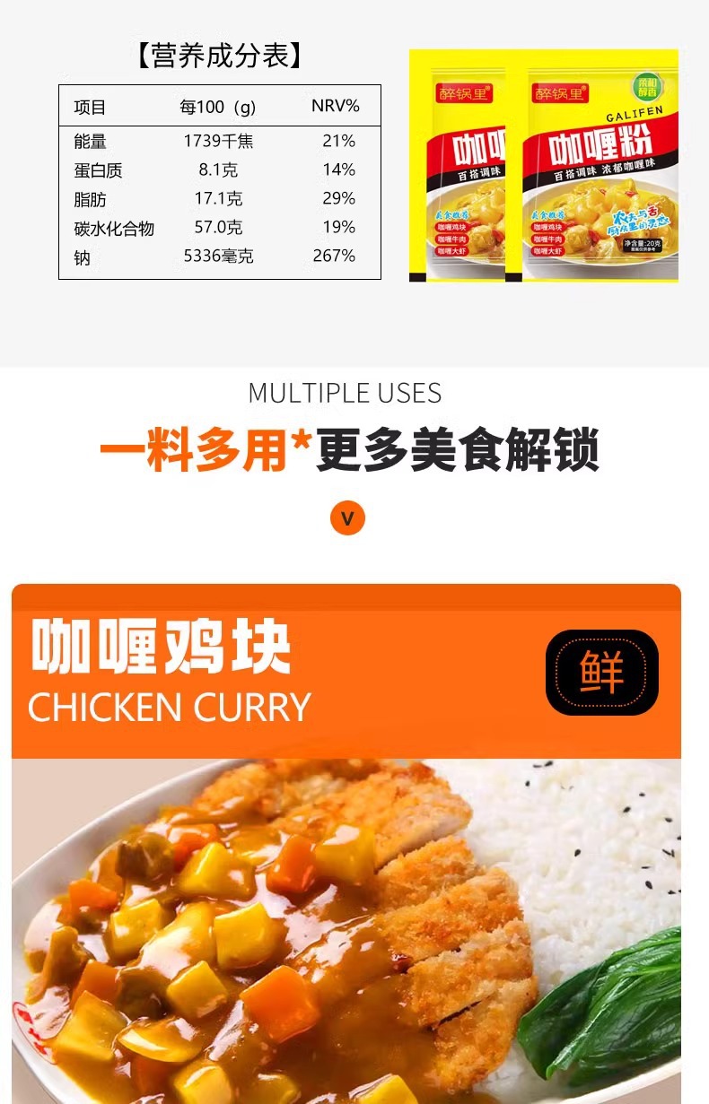 Порошок карри не добавлен для домашнего использования 20 г независимых мешков с желтым карри с жареным рисом