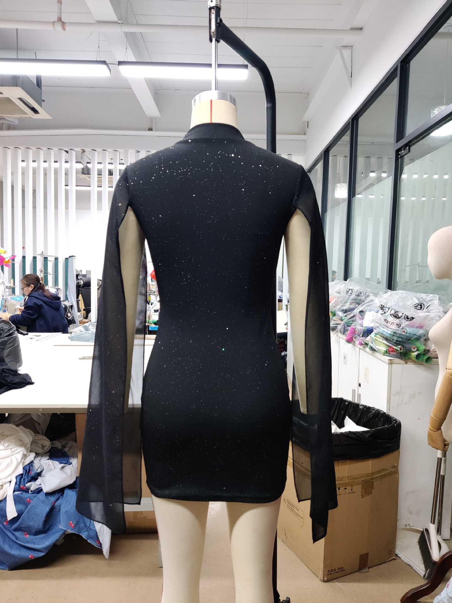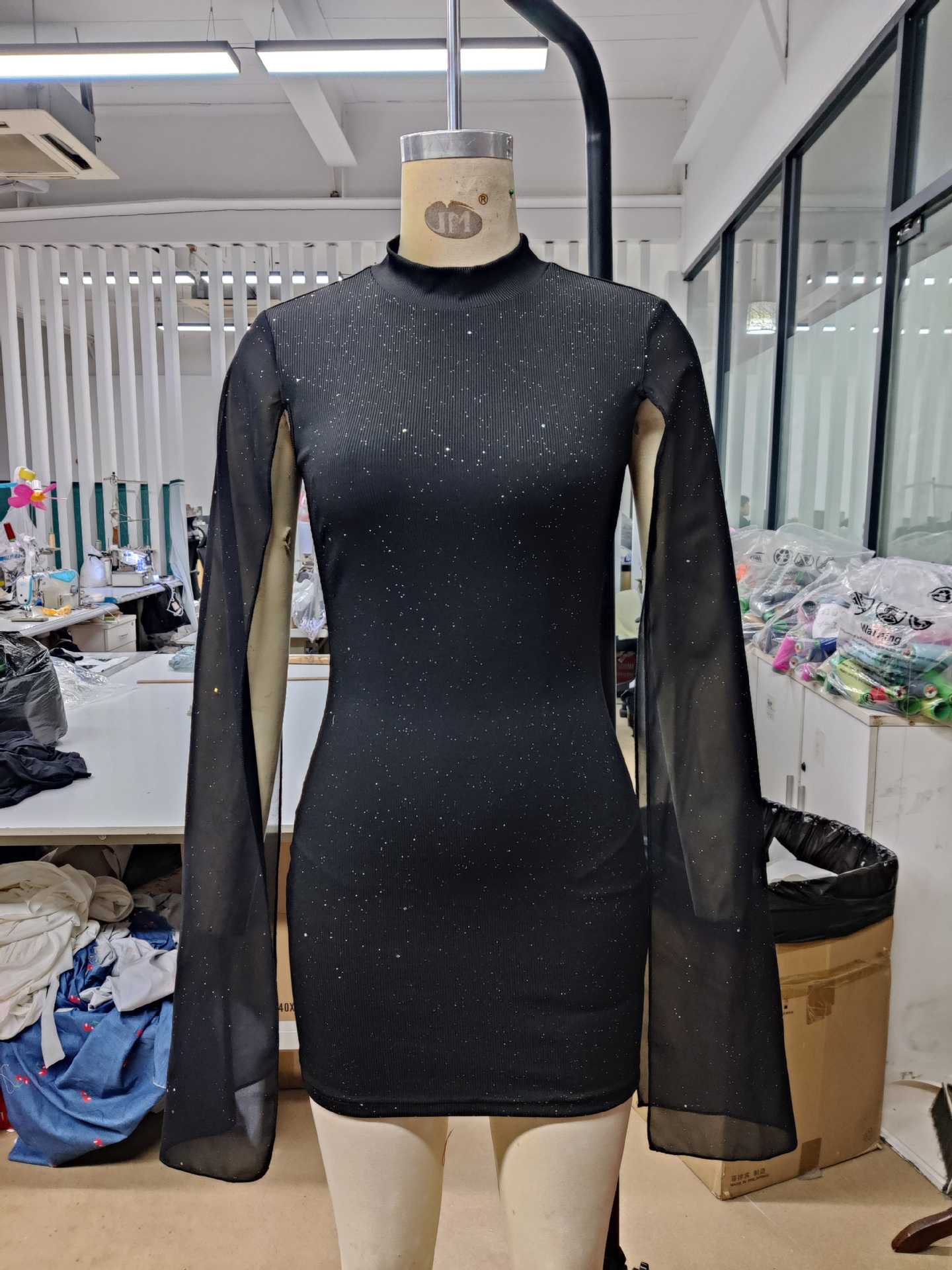 Европейское и американское женское платье с блестящим принтом, высоким воротником и рукавами-фонариками, обтягивающая сексуальная вечерние юбка для девочек