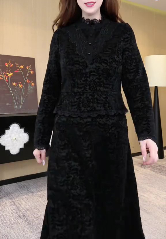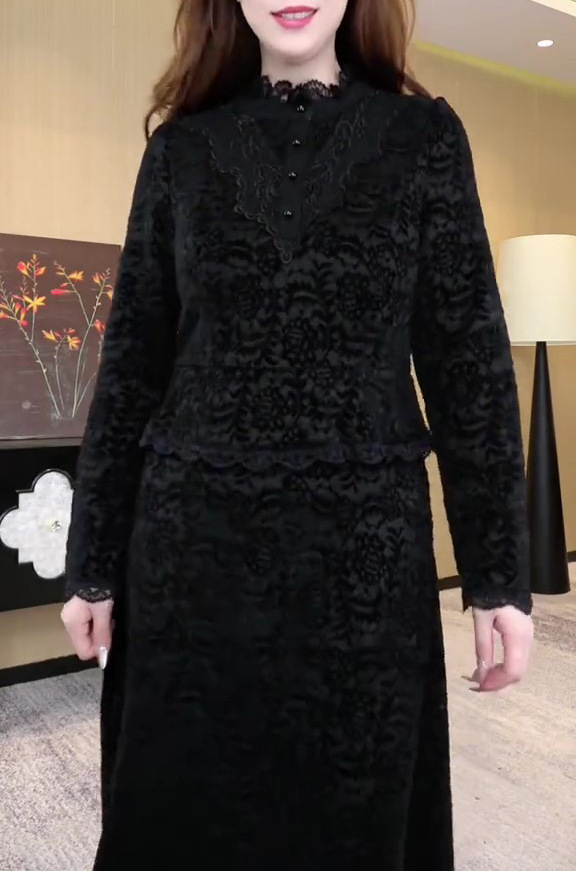 Осенний и зимний высококачественный бархатный жаккардовый дамы толстый бархатный кружевной юбки средних лет мама женская одежда