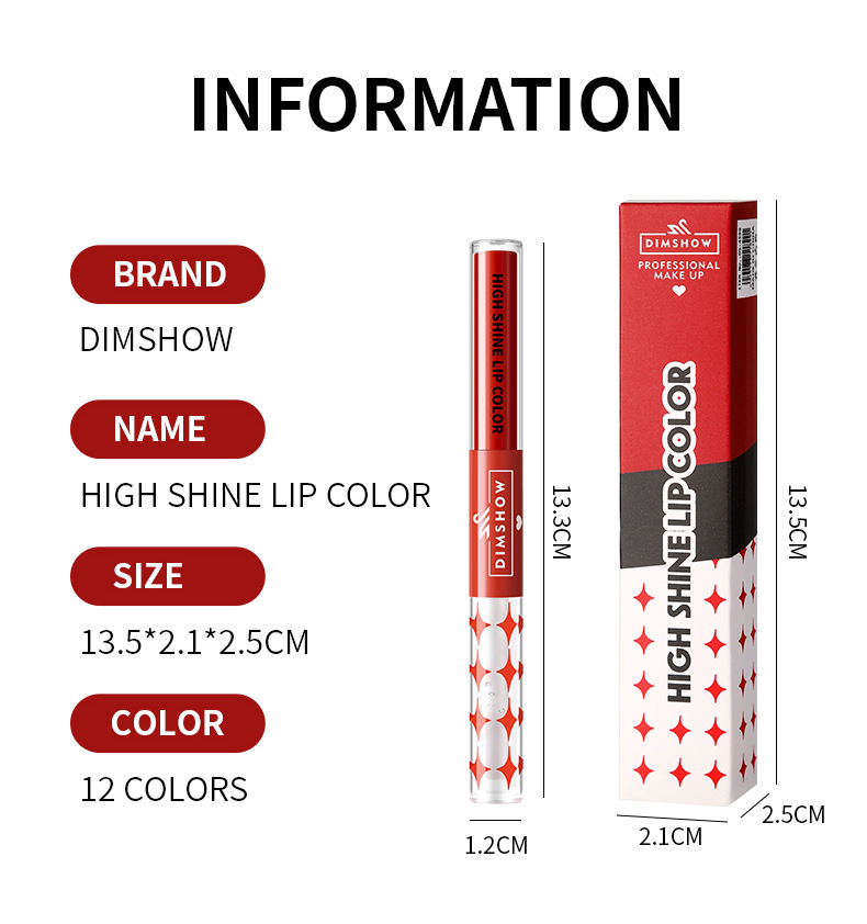 Трансграничный DIMSHOW12 цвет двуголовый увлажняющий увлажняющий увлажняющий губы глазурь не выцветает