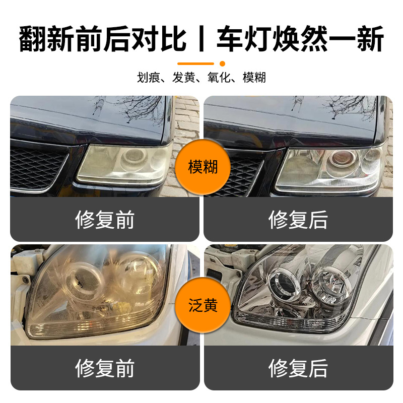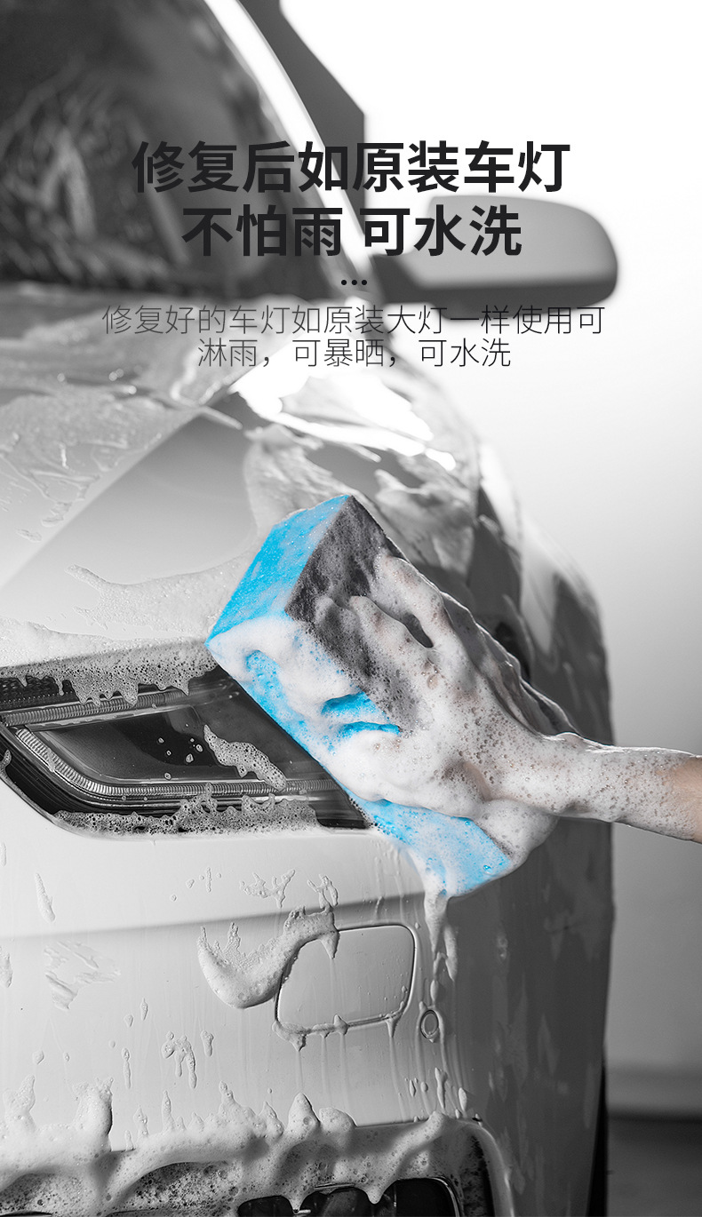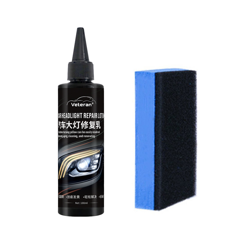 Лосьон для ремонта фар автомобиля 100мл; Маленькая губка с синим кристаллом; Восстанавливающее молочко + маленькая губка с кристаллами