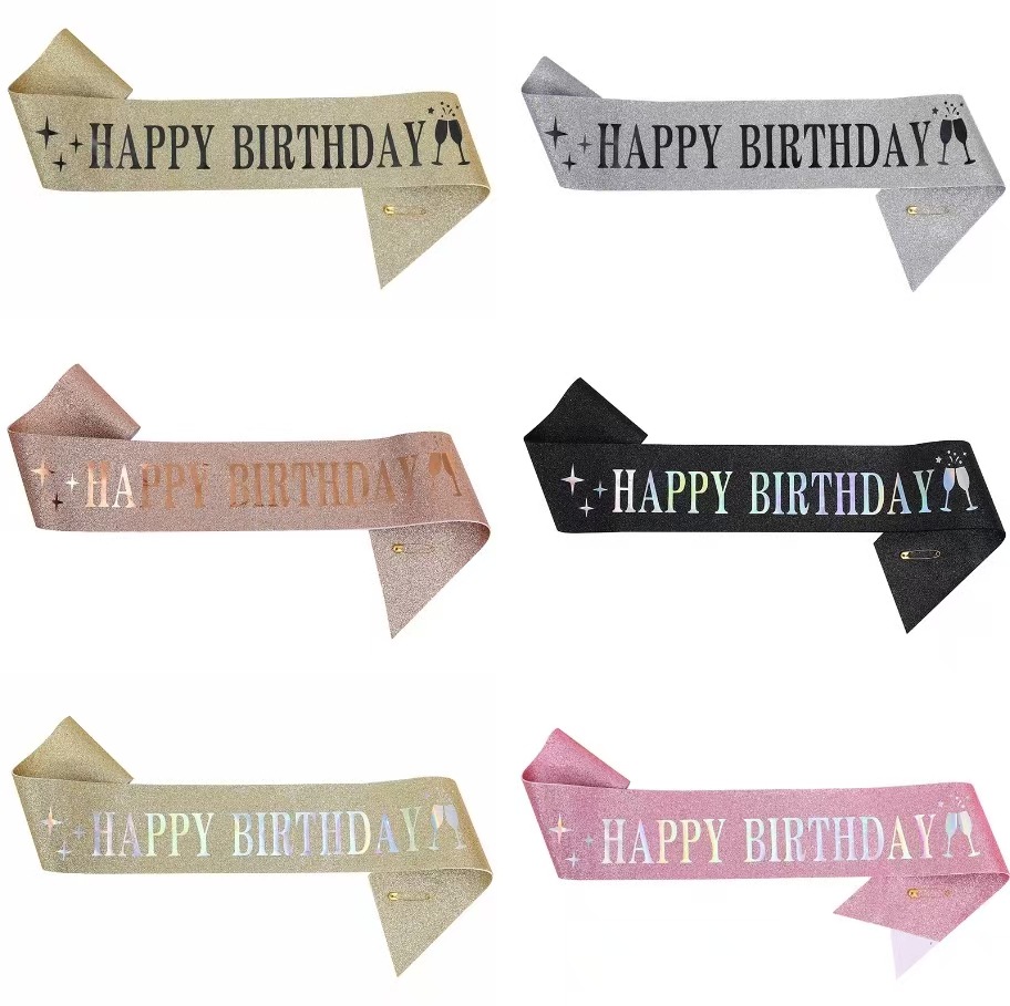 Европейская и американская новая мода HAPPY BIRTHDAY ремень этикета с луком ткань Тан Цзинь день рождения платье плечевой ремень