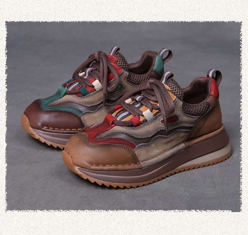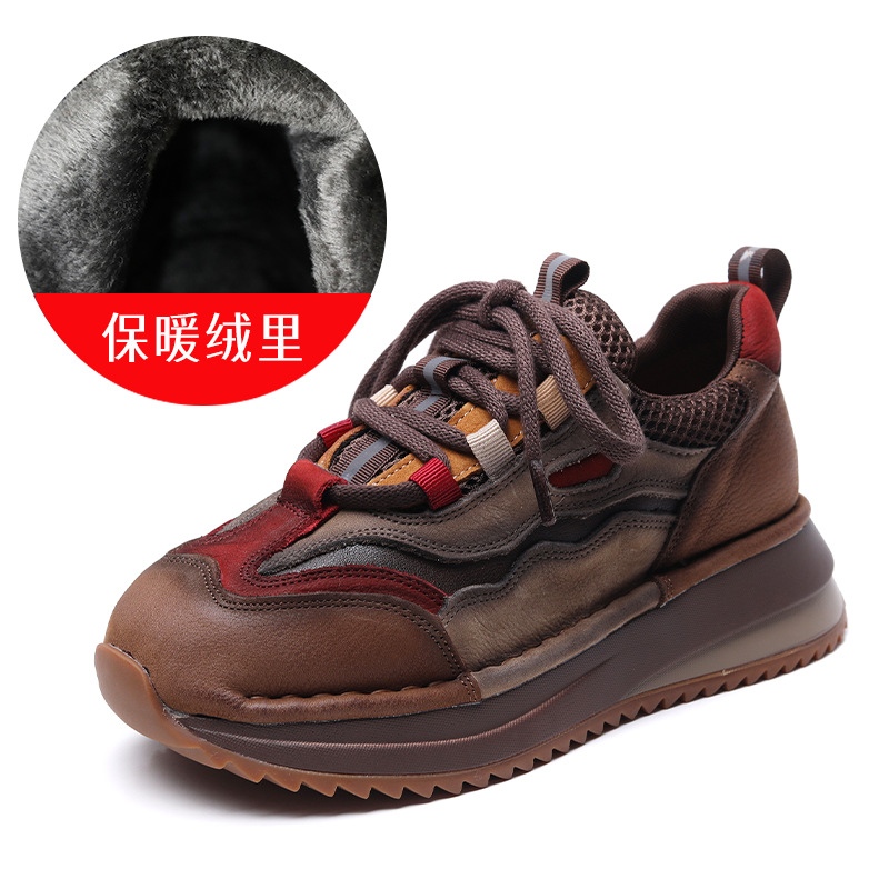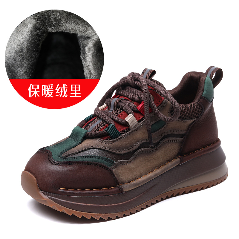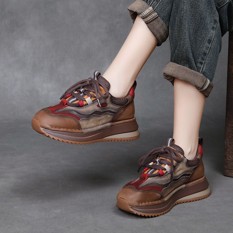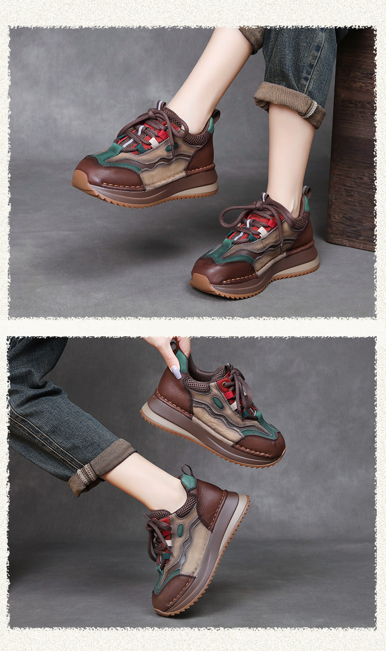 Женские повседневные спортивные туфли из натуральной кожи с цветовыми блоками, новые осенне-зимние туфли на танкетке в стиле «dad shoes», удобные женские туфли на мягкой подошве