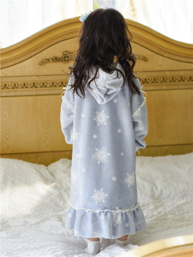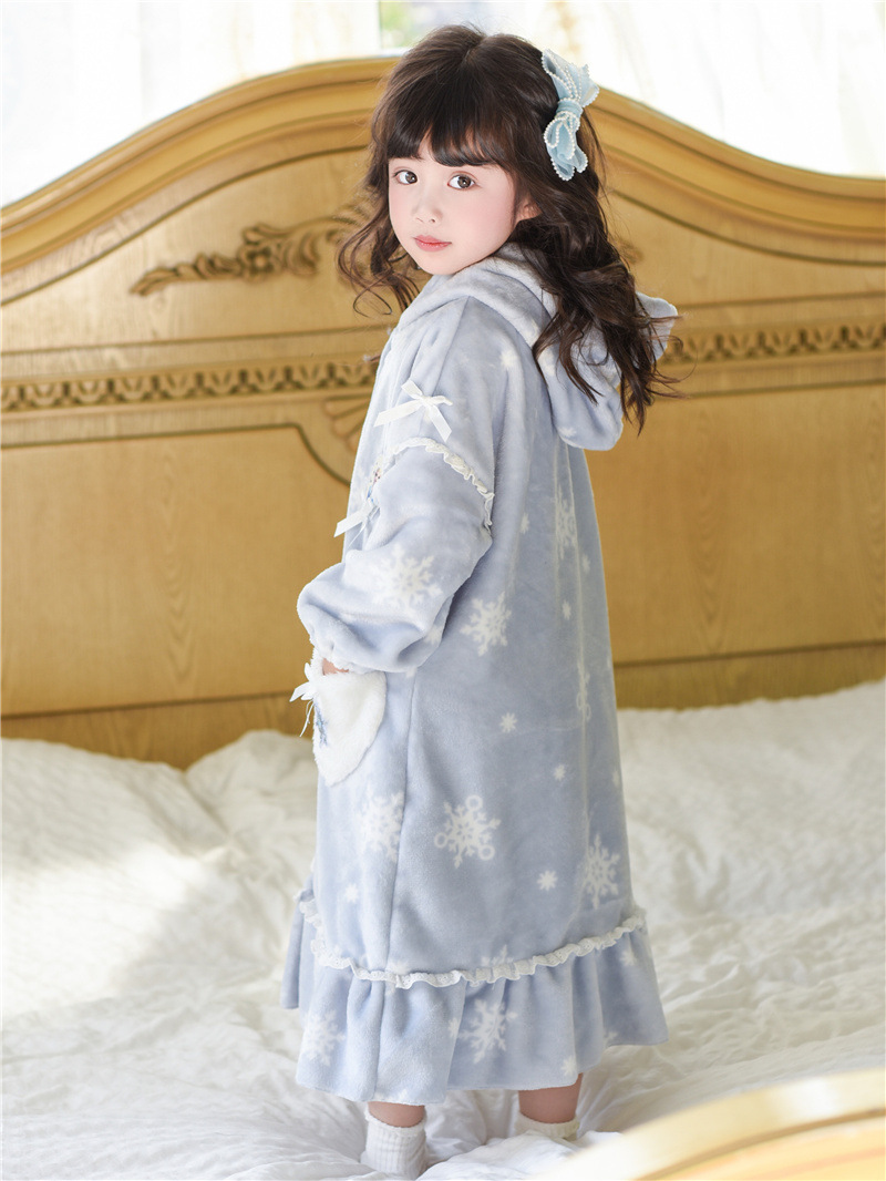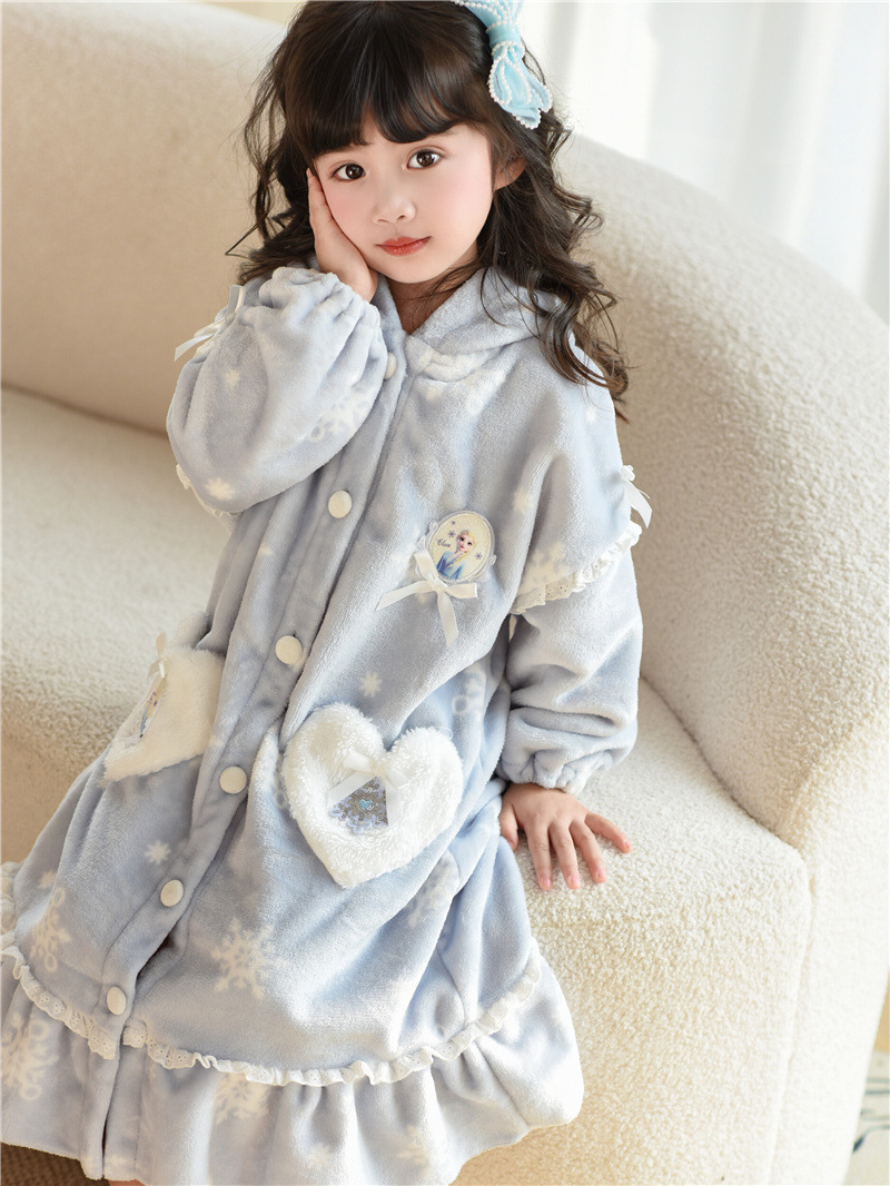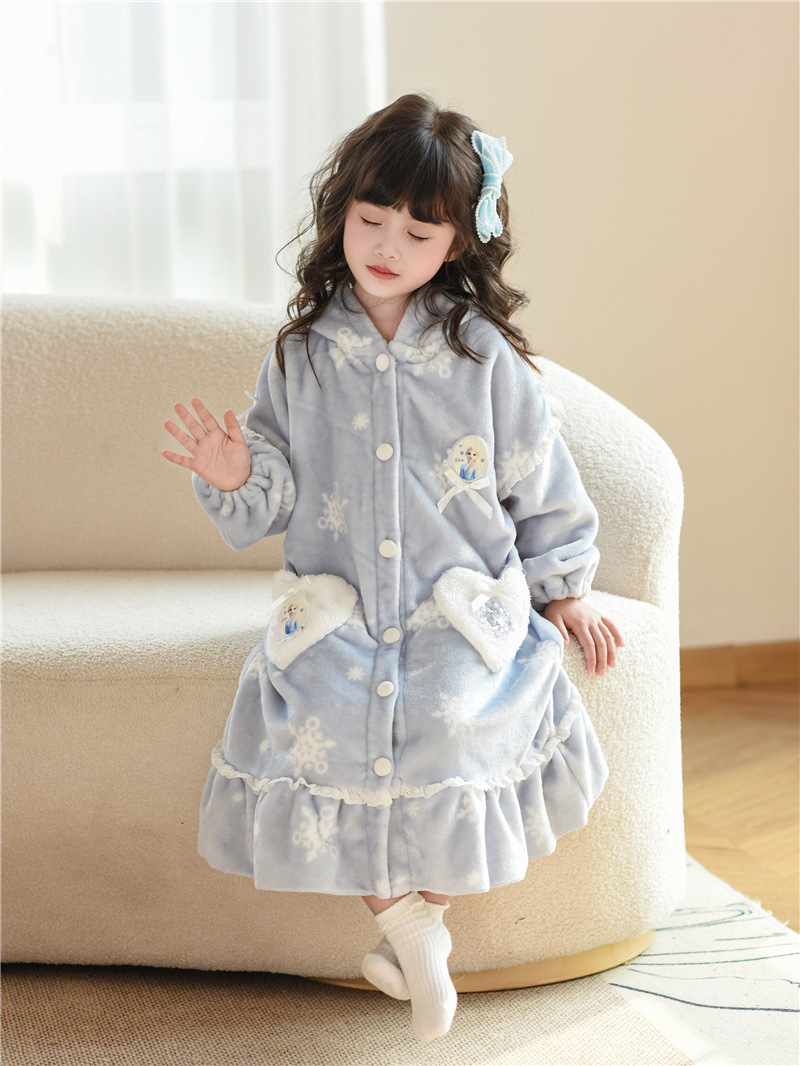 Домашний костюм-пижама из фланелевого кораллового флиса для девочек на осень-зиму, комплект с халатом и платьем Эльзы в милом стиле принцессы