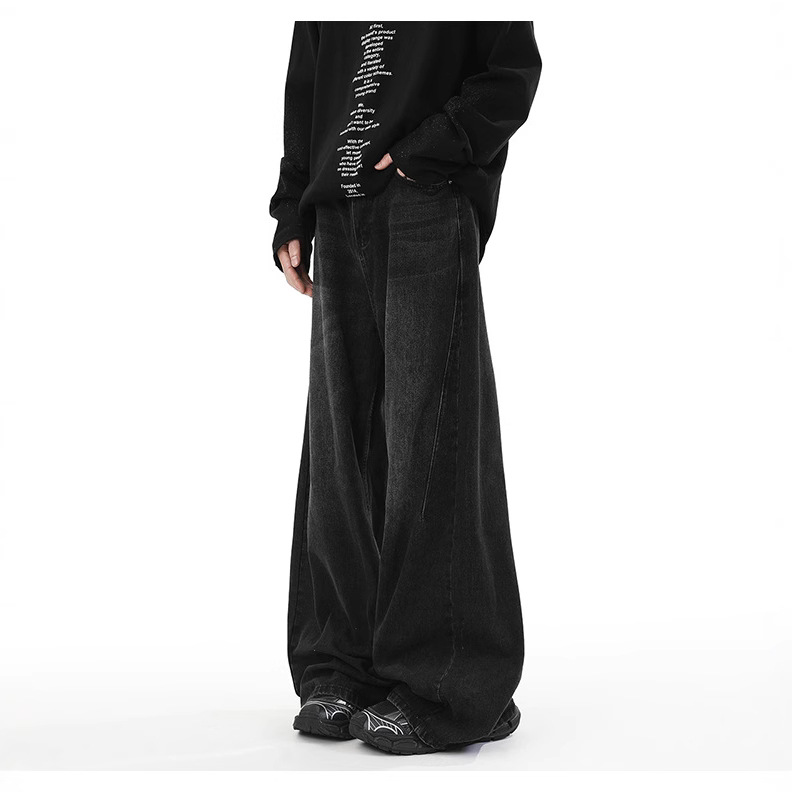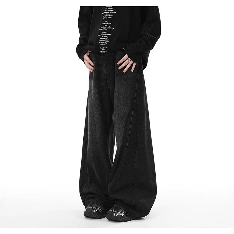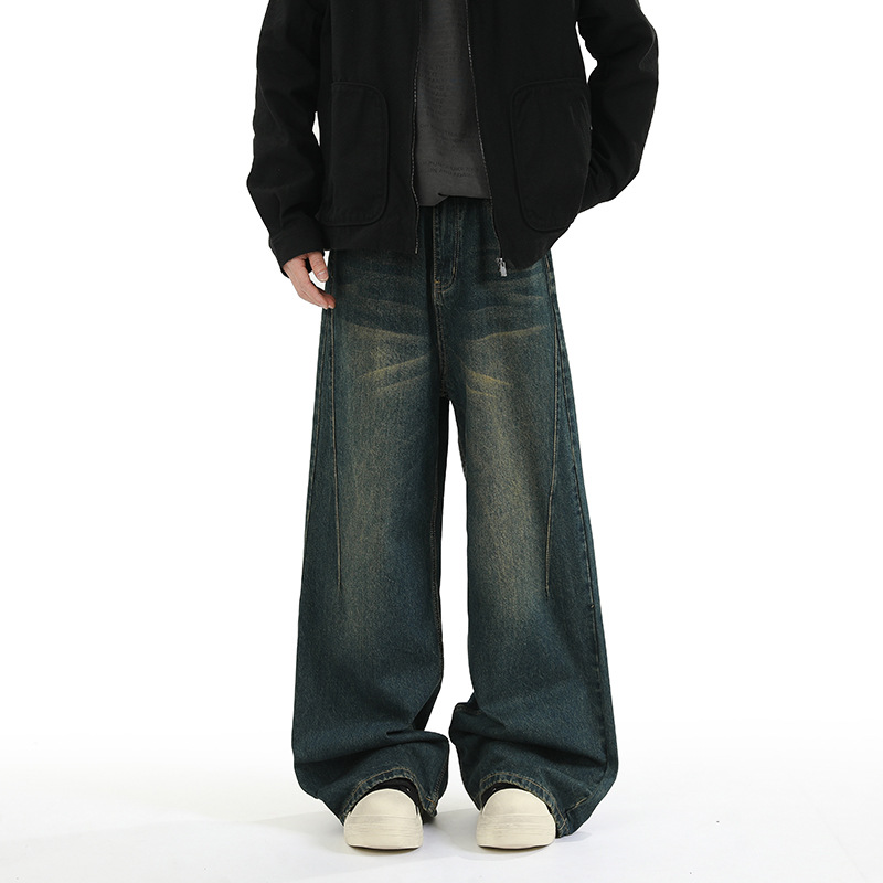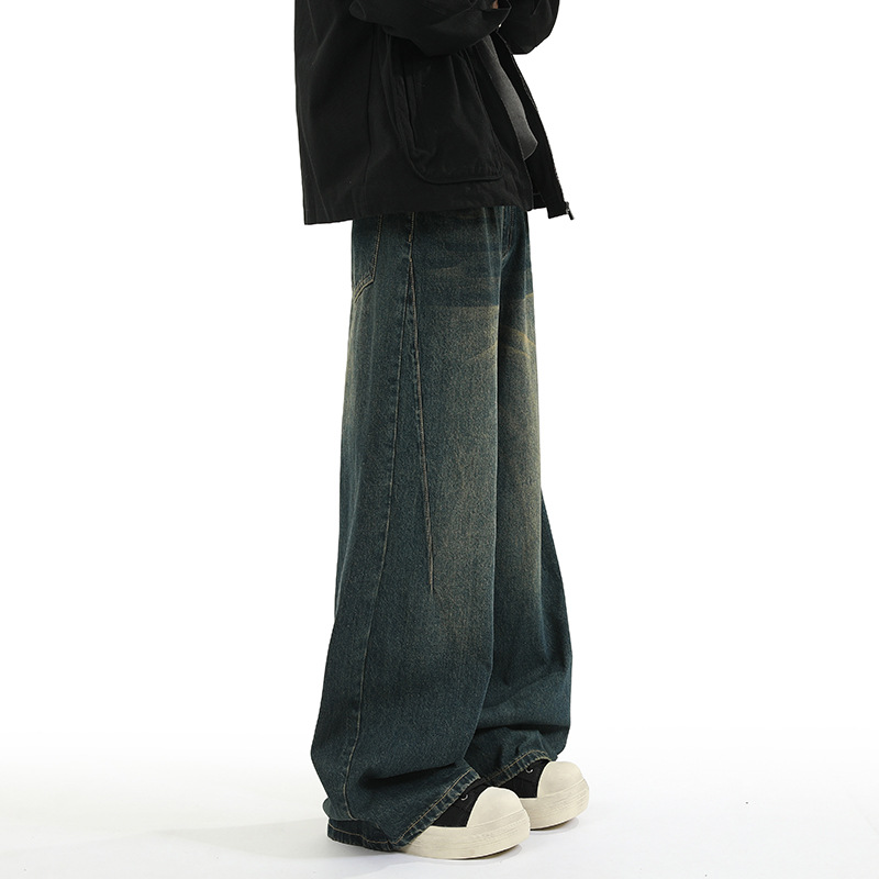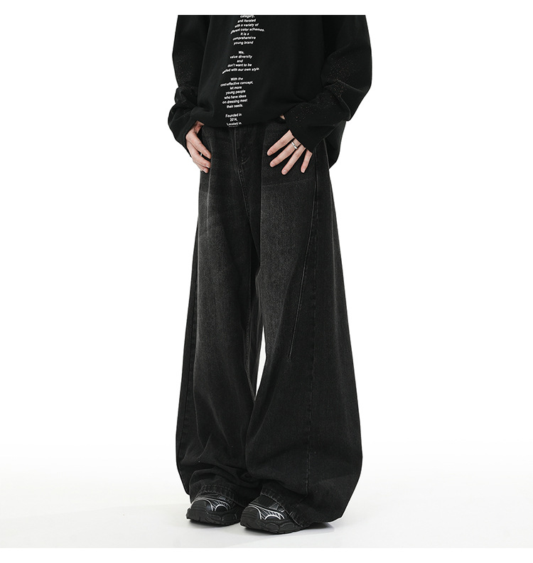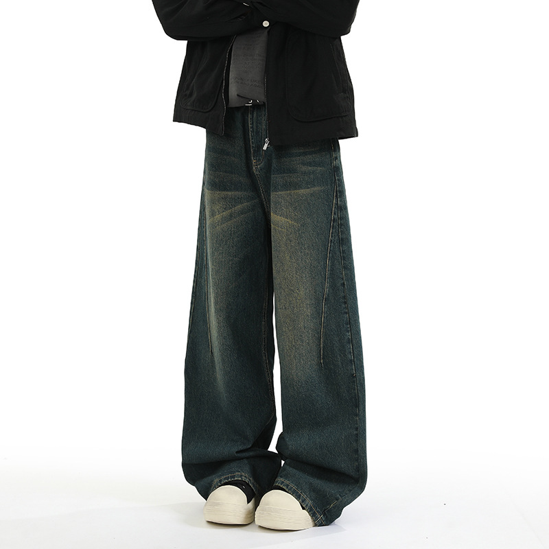 Джинсовые брюки для мужчин и женщин осенью свободная приливная широкая нога американский ретро дикая стирка прямые брюки для волос