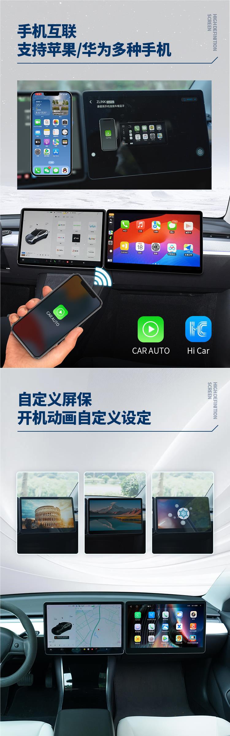 Применимо для Tesla Model3/Y вспомогательный развлекательный экран автомобиля.