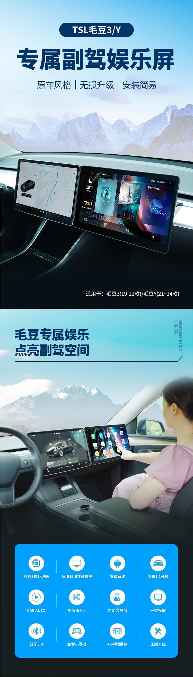 [Обновленная модель] 21–24 развлекательный экран для пассажирского развлечения модели Y; [Обновленная модель] 21-22 Модель 3, экран для пассажирских развлечений
