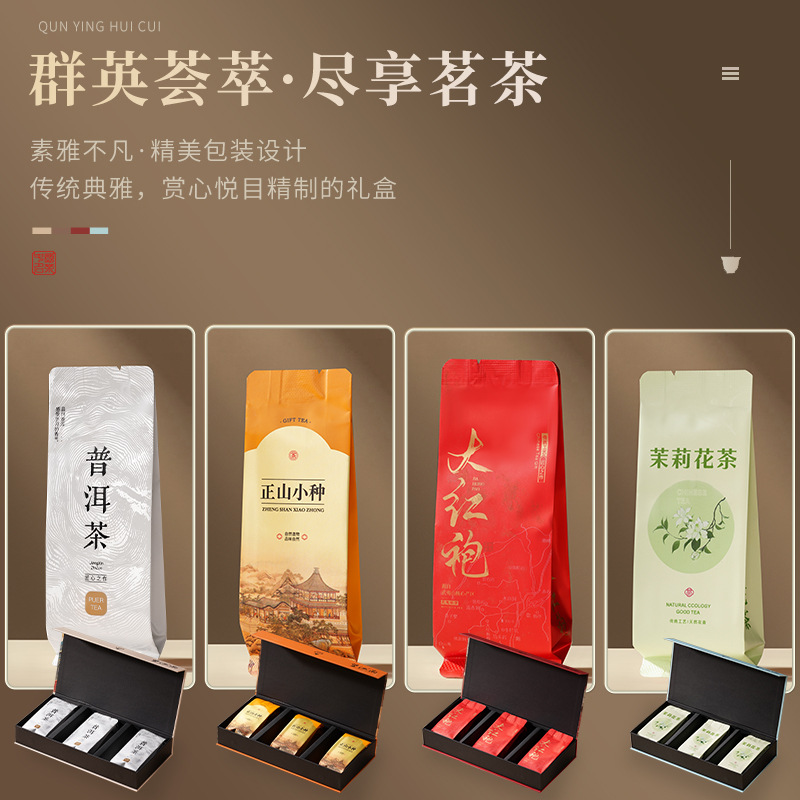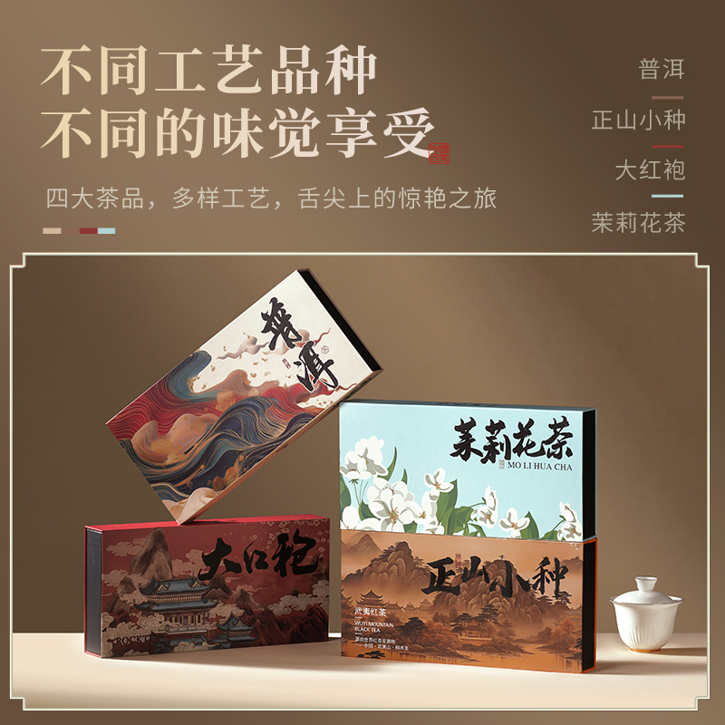 Чай Wangjiangnan Wuyi Mountain rock tea Da Hong Pao (большой красный чай) с мелкими зернами, чай Пуэр из Юньнани с жасмином, новогодний подарочный набор в национальном стиле
