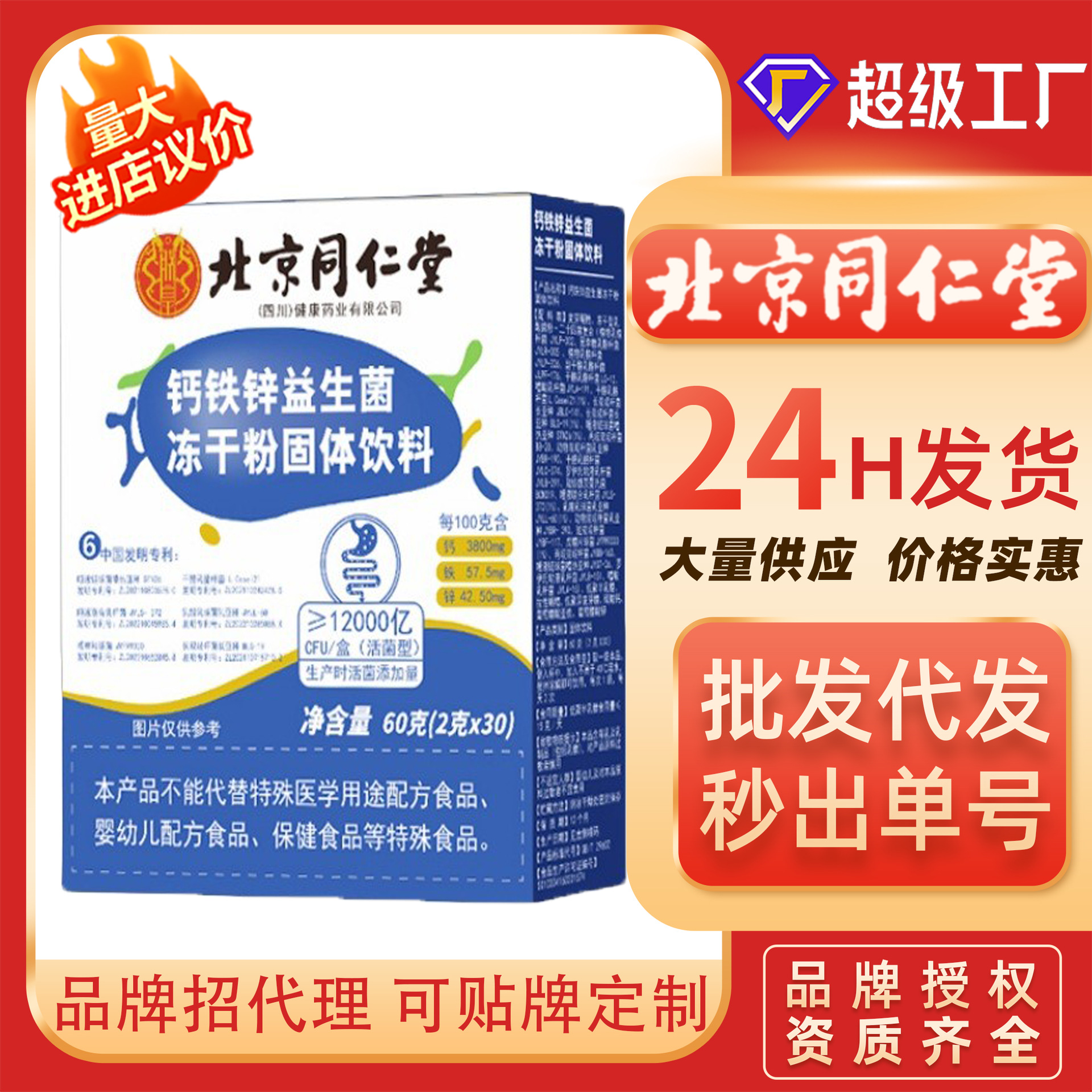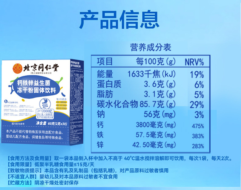 Пекинский Тонгрентанг: Кальций, Железо, Цинк, Пробиотики, Лиофилизированный Порошок, 90 г, Напиток, 24 вида активных пробиотических культур, Запатентованные штаммы