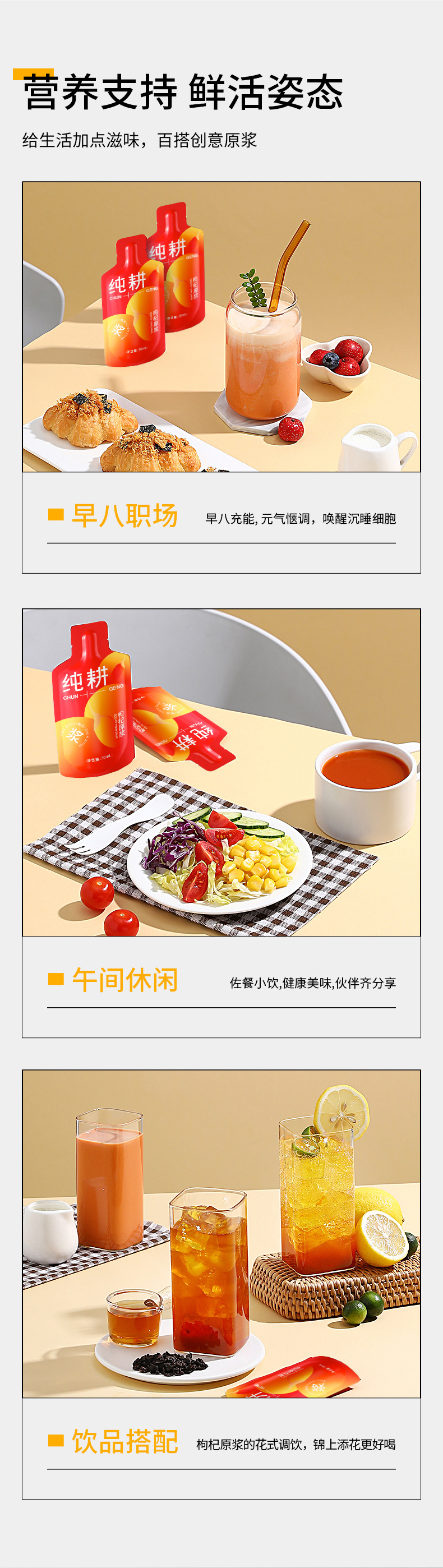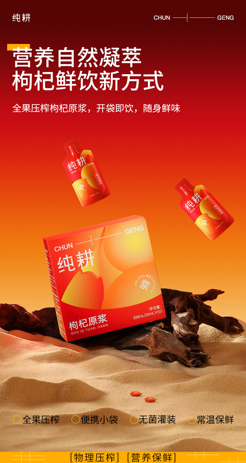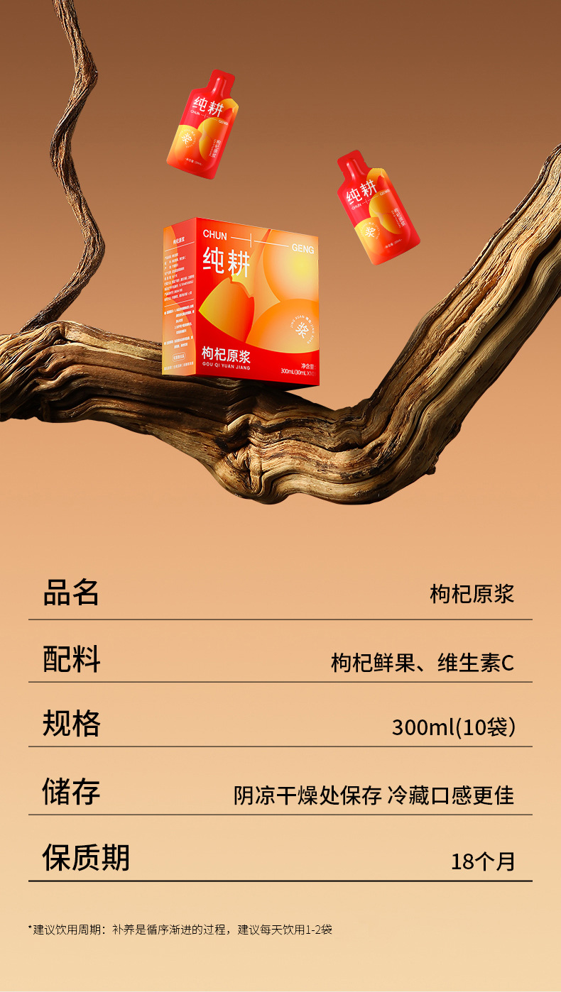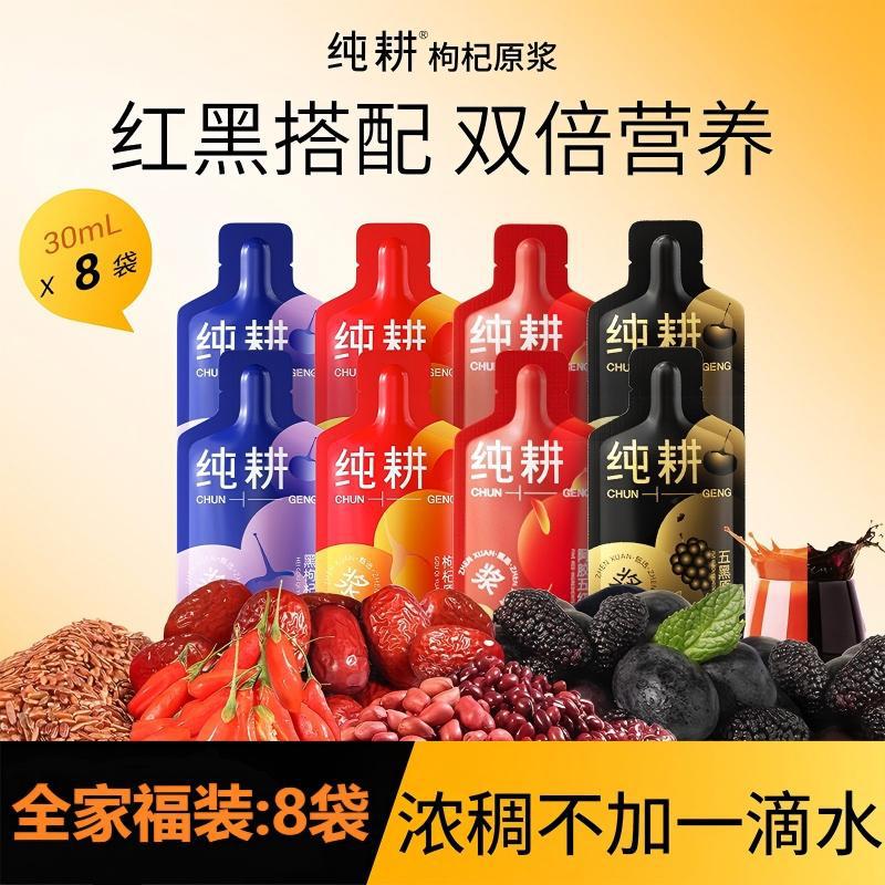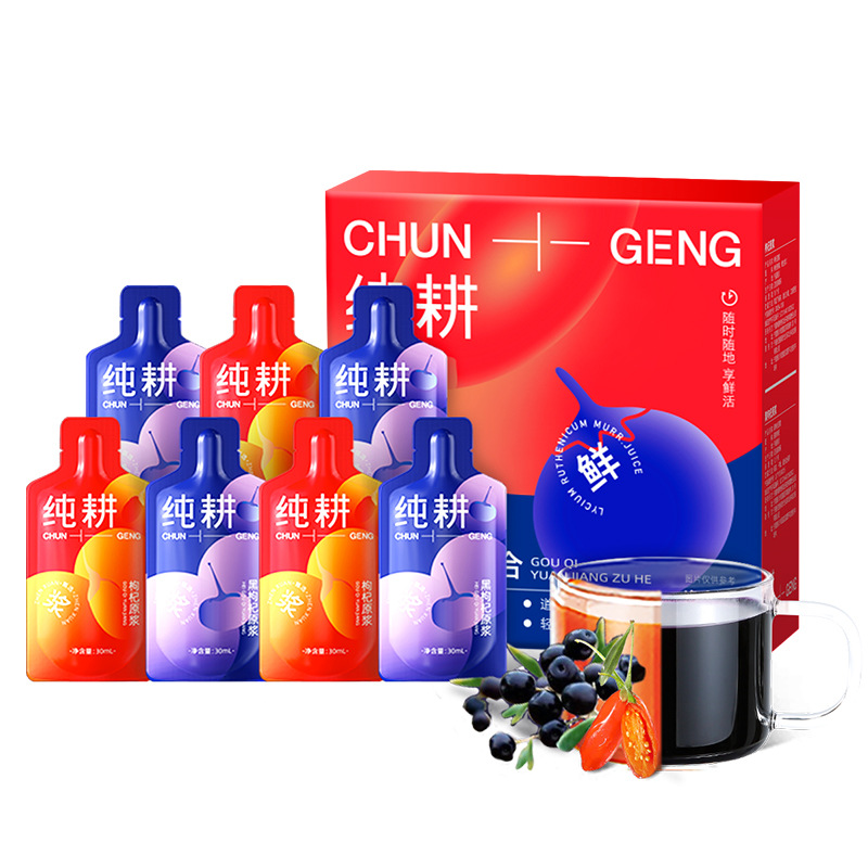 Пюре из красной волчьей ягоды чисто выращенной 300мл (10 пакетиков); Комбинация пюре из чистой культивированной красной и черной волчьей ягоды 300 мл (красный*5+черный*5); Чисто выращенное пюре из черной годины 300мл (10 пакетиков); Пюре из чисто выращенного женьшеня и волчьего ягоды 300 мл (10 пакетиков); Напиток из чисто выращенного лонгана и американского женьшеня 300м (10 пакетиков); Чистое выращивание 300 мл (10 пакетиков) в коробке из ослиной кожи, желатина, пять красных напитков; Чистый культивированный напиток Wuhei в банке, 300 мл (10 пакетиков); Чисто выращенный пятипальцевый персик и бобы Адзуки, напиток 300м (10 пакетиков); Пюре из шести вкусов дихуаня и ягод годжи, упаковка 30 мл * 8 пакетов; Чистый культивированный пюре из красной ягоды годжи, 30 мл, упаковка из 8 пакетов; Чистый культивированный пюре из женьшеня и ягод годжи, 30 мл, упаковка из 8 штук*; Пробный набор «Семейный портрет» 8 пакетиков: красная волчья ягода*2+черная волчья ягода*2+пять красных*2+пять черных*2; (Пять красных и пять черных комбинаций) Желатин из ослиной кожи: пять красных напитков*4 + пять черных пюре напитков*4; (Красно-черное сочетание) пюре из красной ягоды годжи*4 + пюре из черной ягоды годжи*4; Пробный пакет «Благосостояние»: 2 пакетика* пюре из волчьей ягоды + 2 пакетика* пюре из черной волчьей ягоды.; Попробуйте: 1 пакетик пюре из красной годжи + 1 пакетик пюре из черной годжи