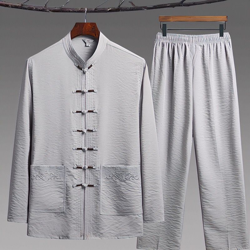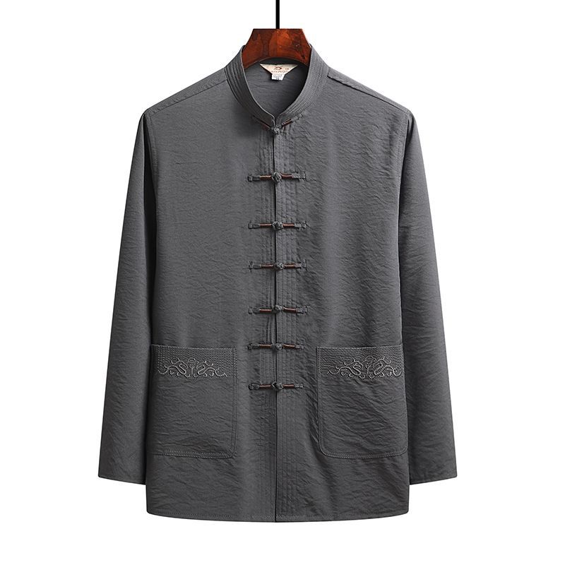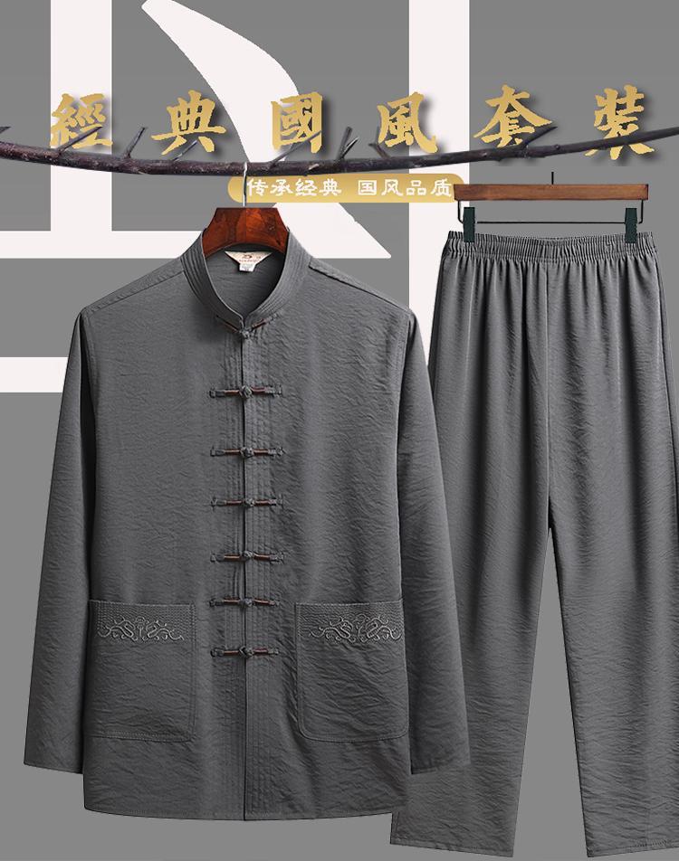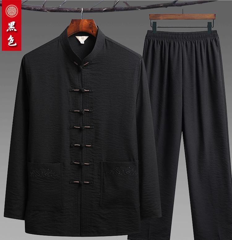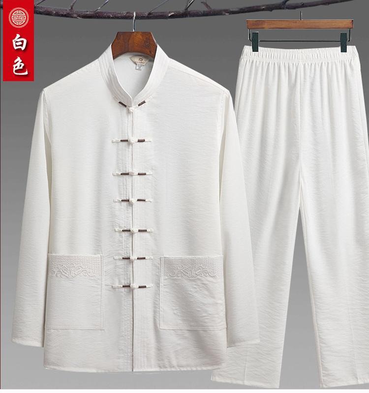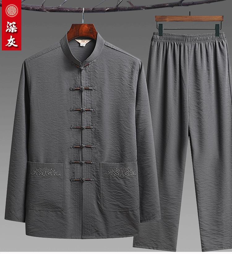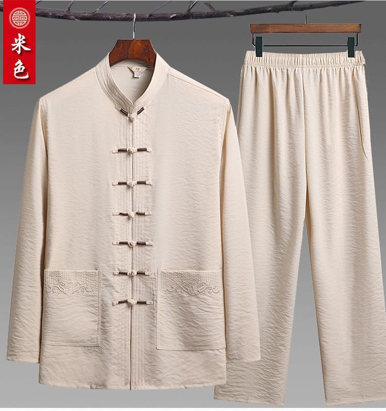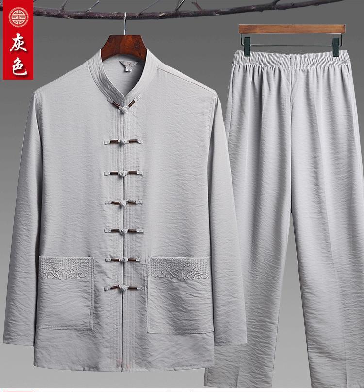 Люди среднего и пожилого возраста костюм для мужчин с длинными рукавами из хлопка и льна